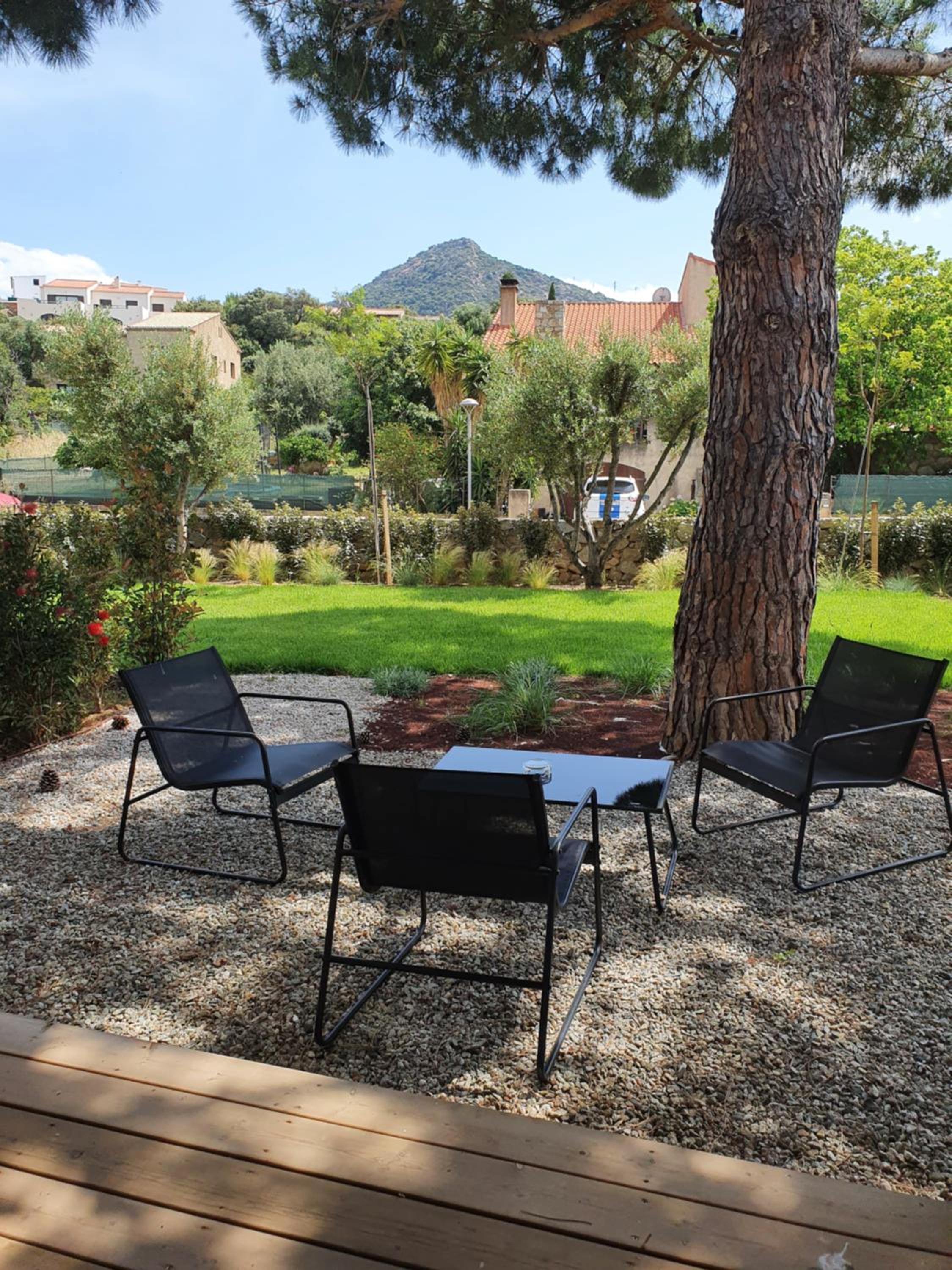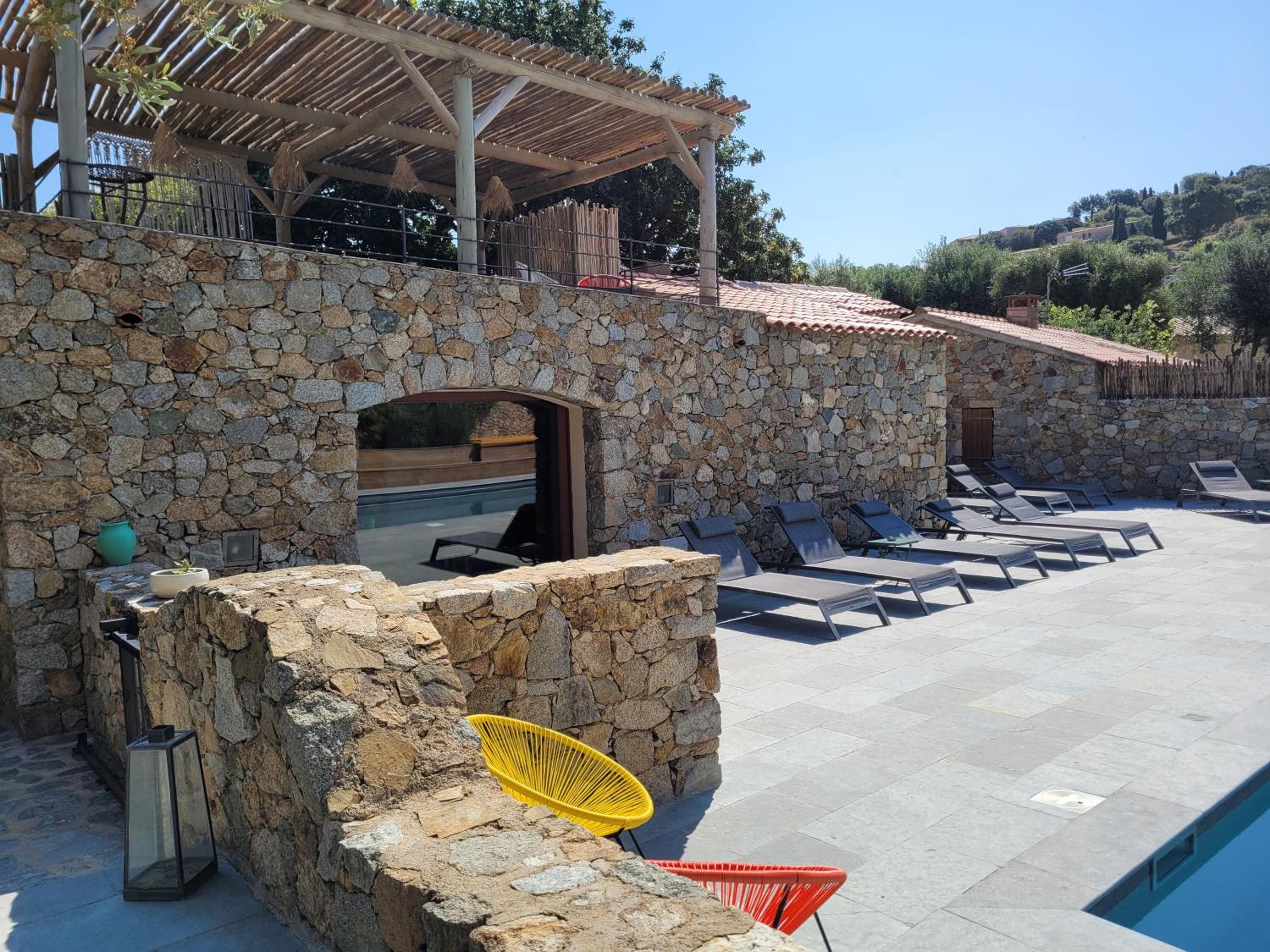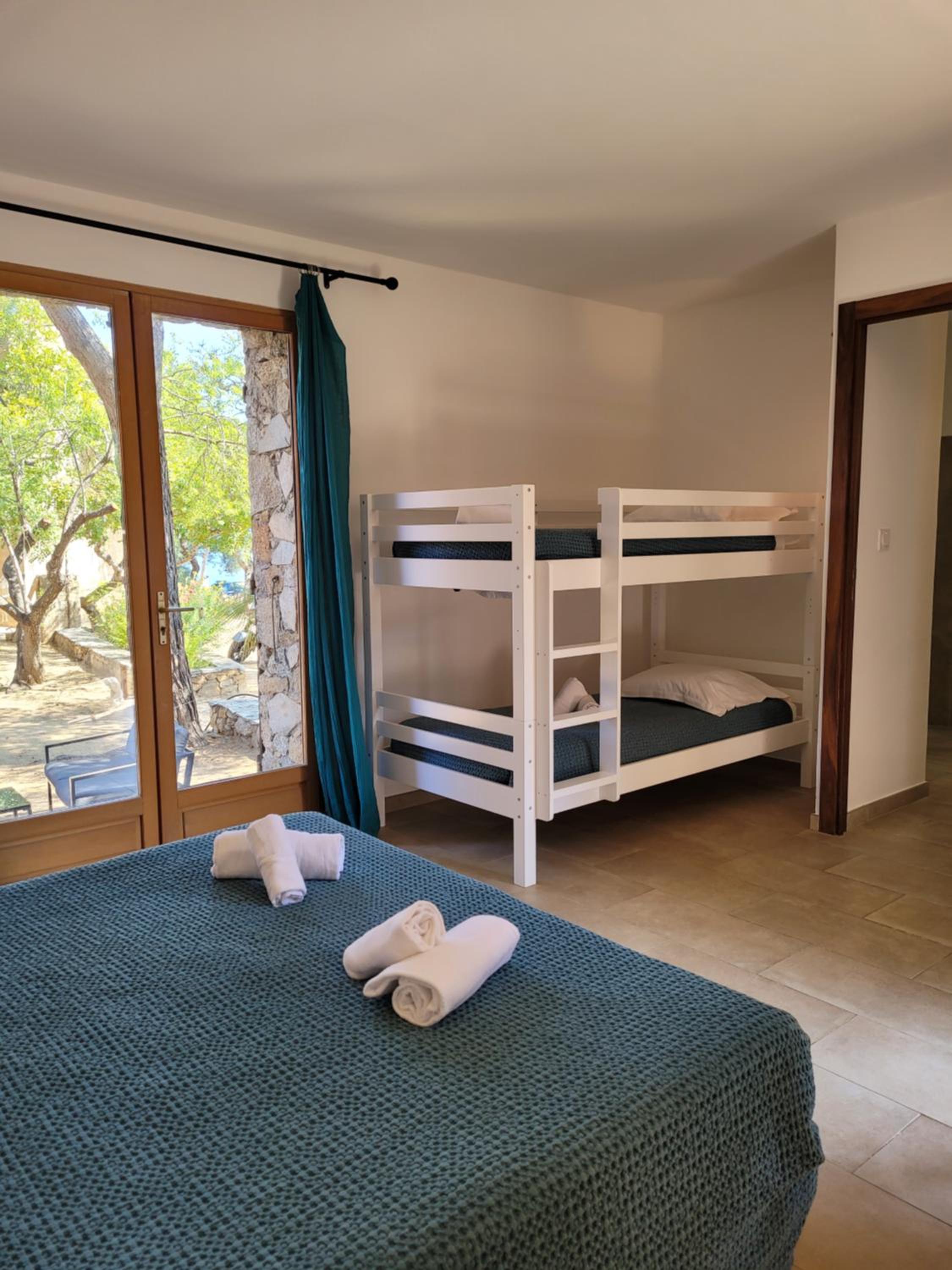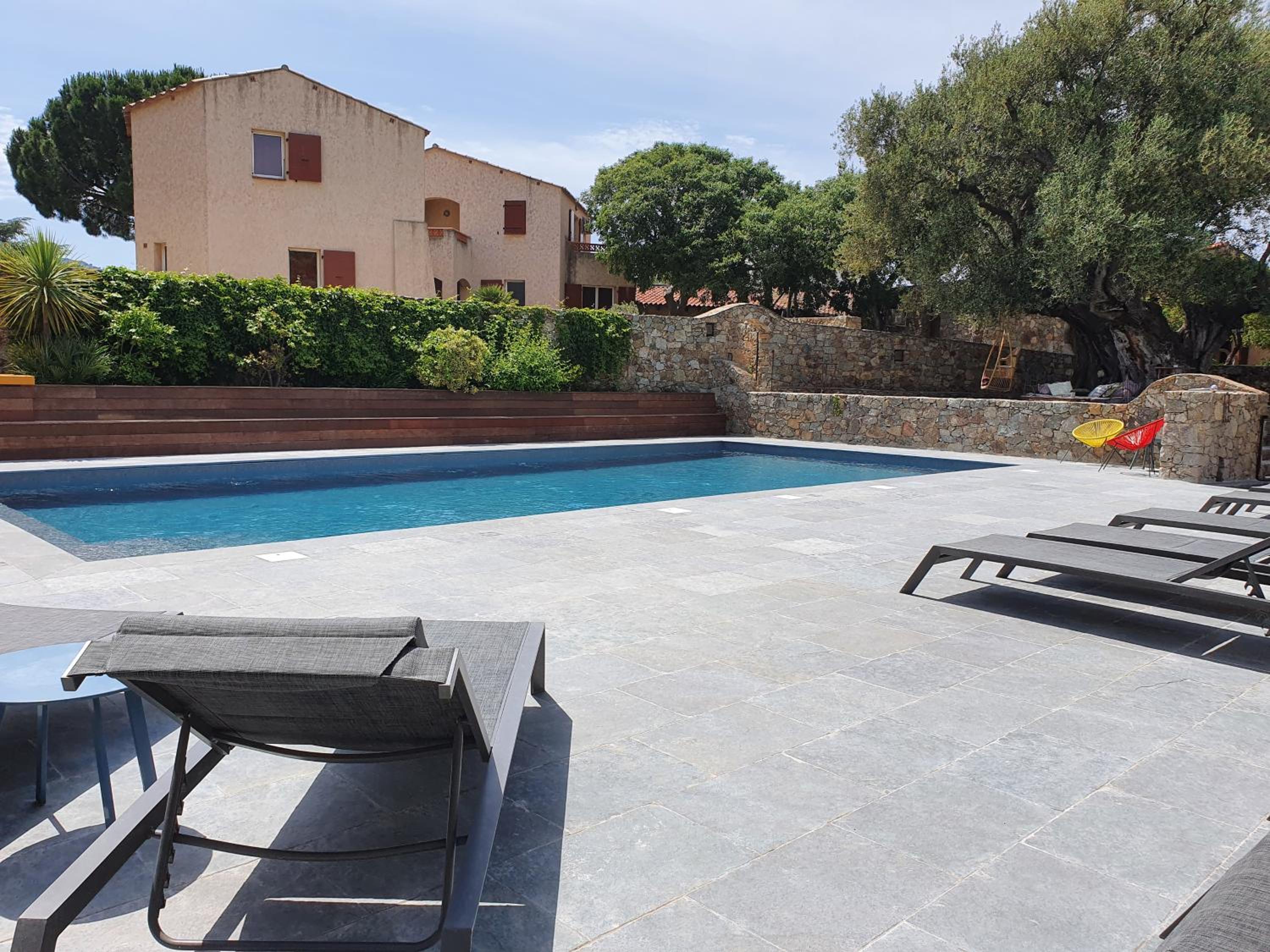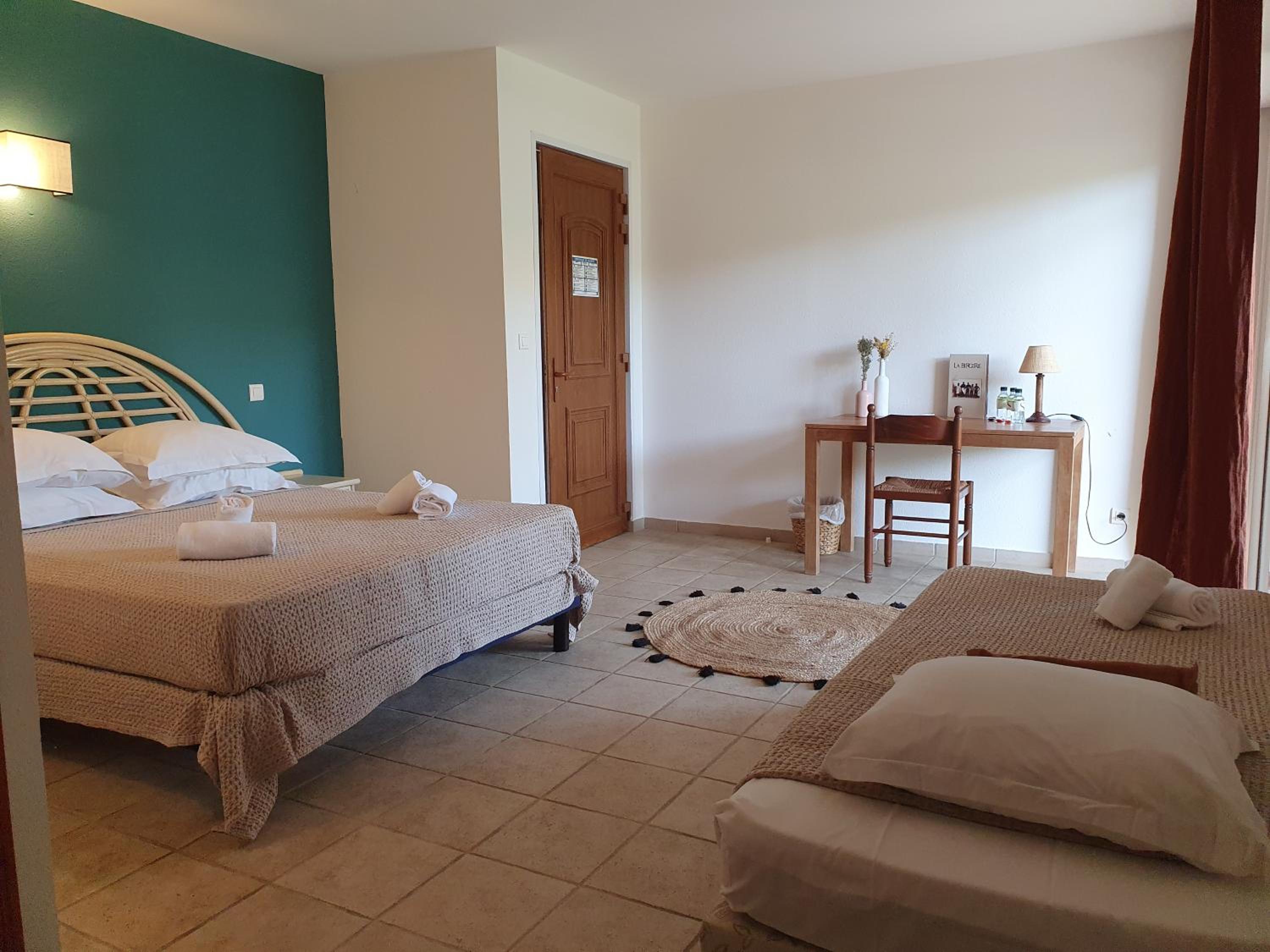 Scenic Views and Relaxation: Enjoy breathtaking views of Ile-Rousse from our outdoor swimming pool and various room options overlooking the garden, pool, or mountains. Unwind with a TV in our shared lounge or take a stroll to the nearby beach just 800m away.