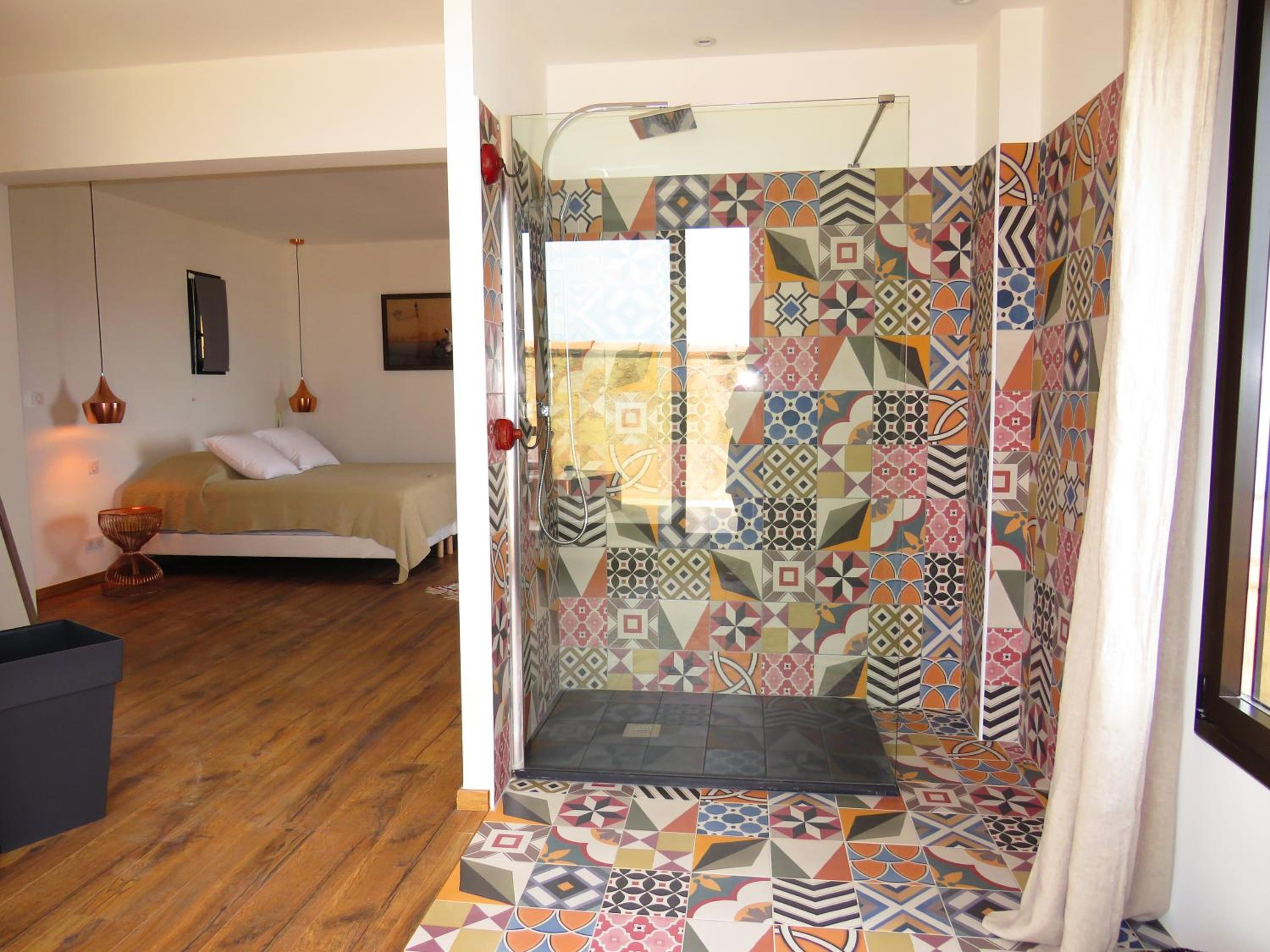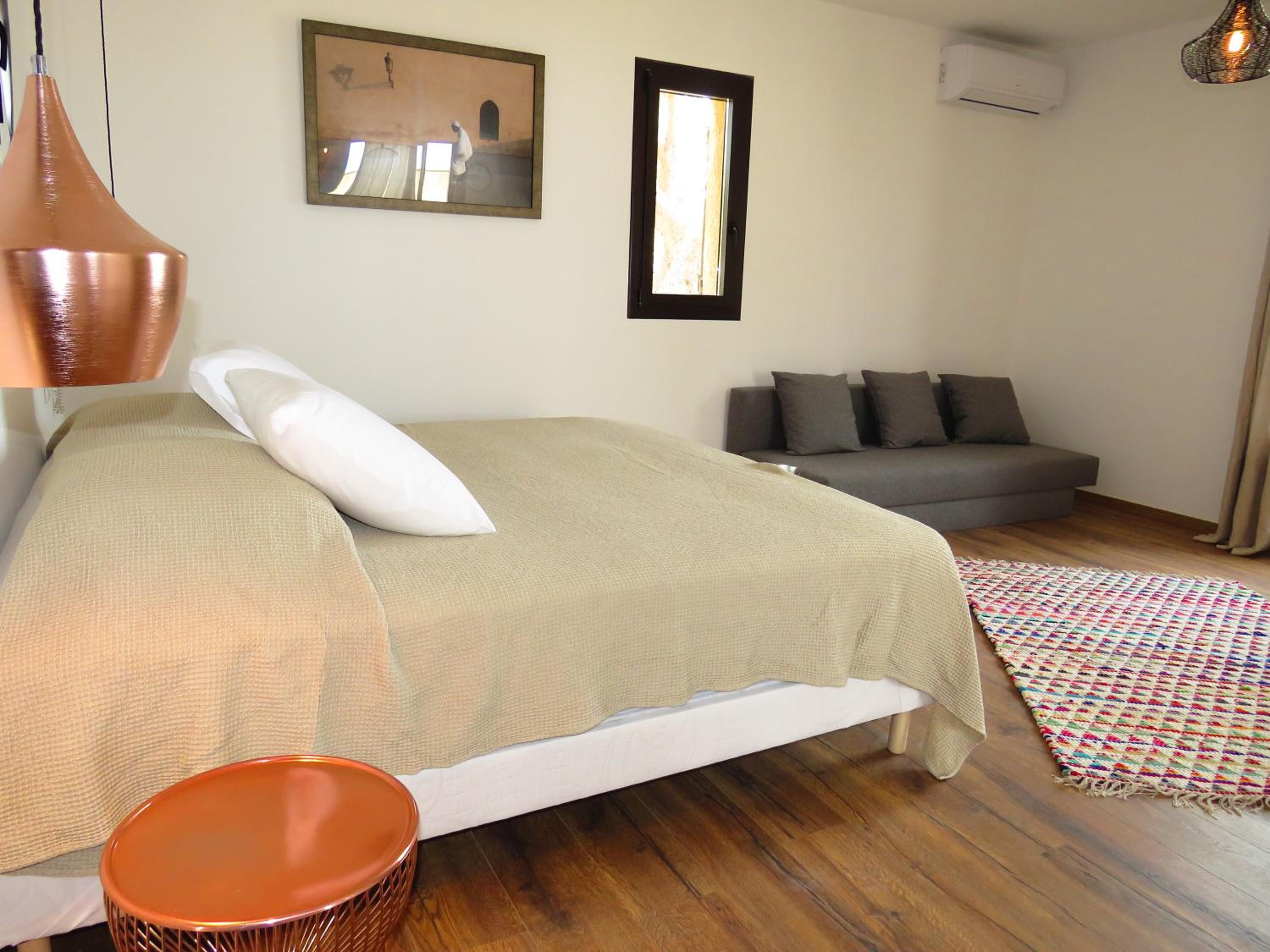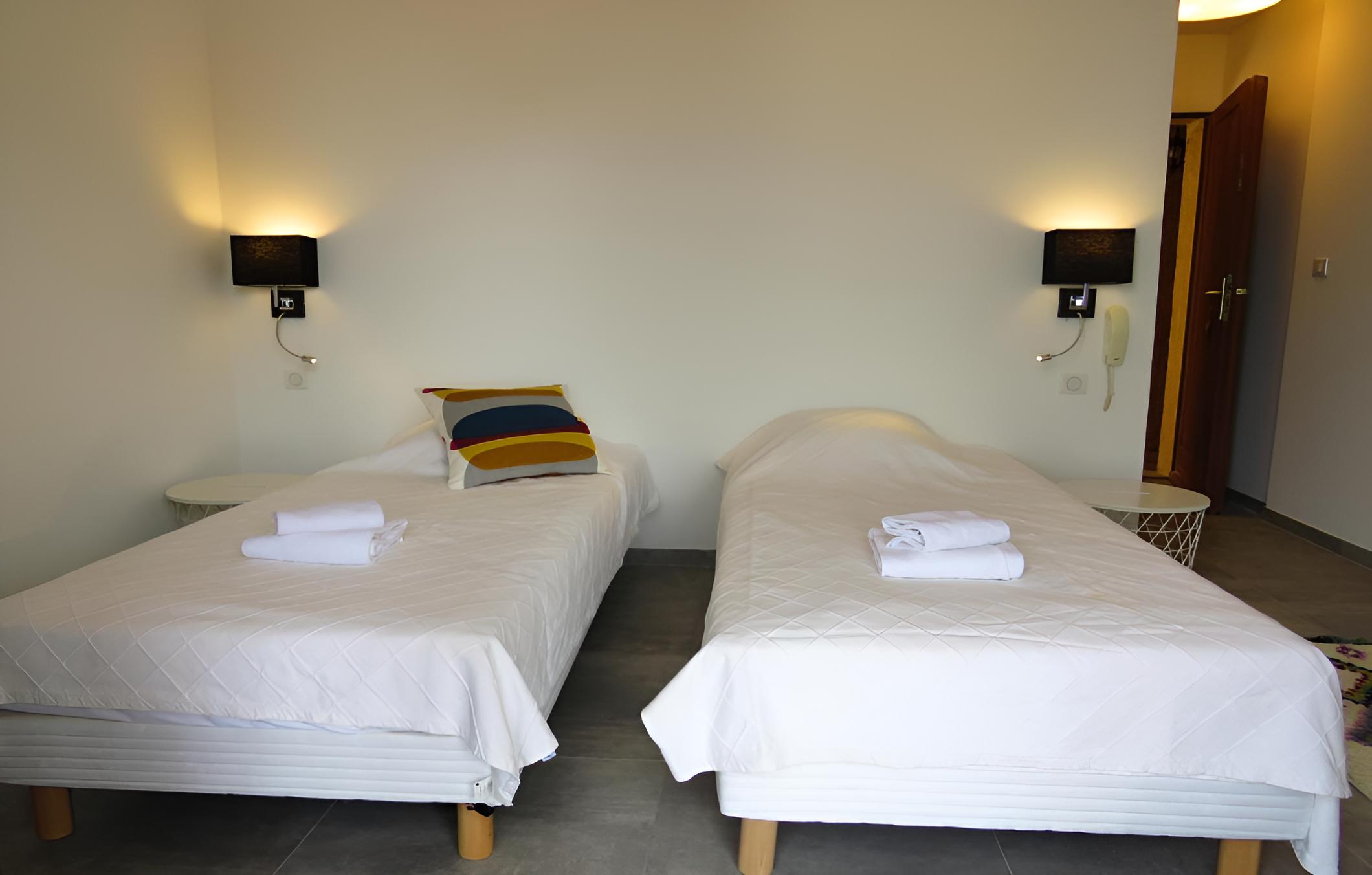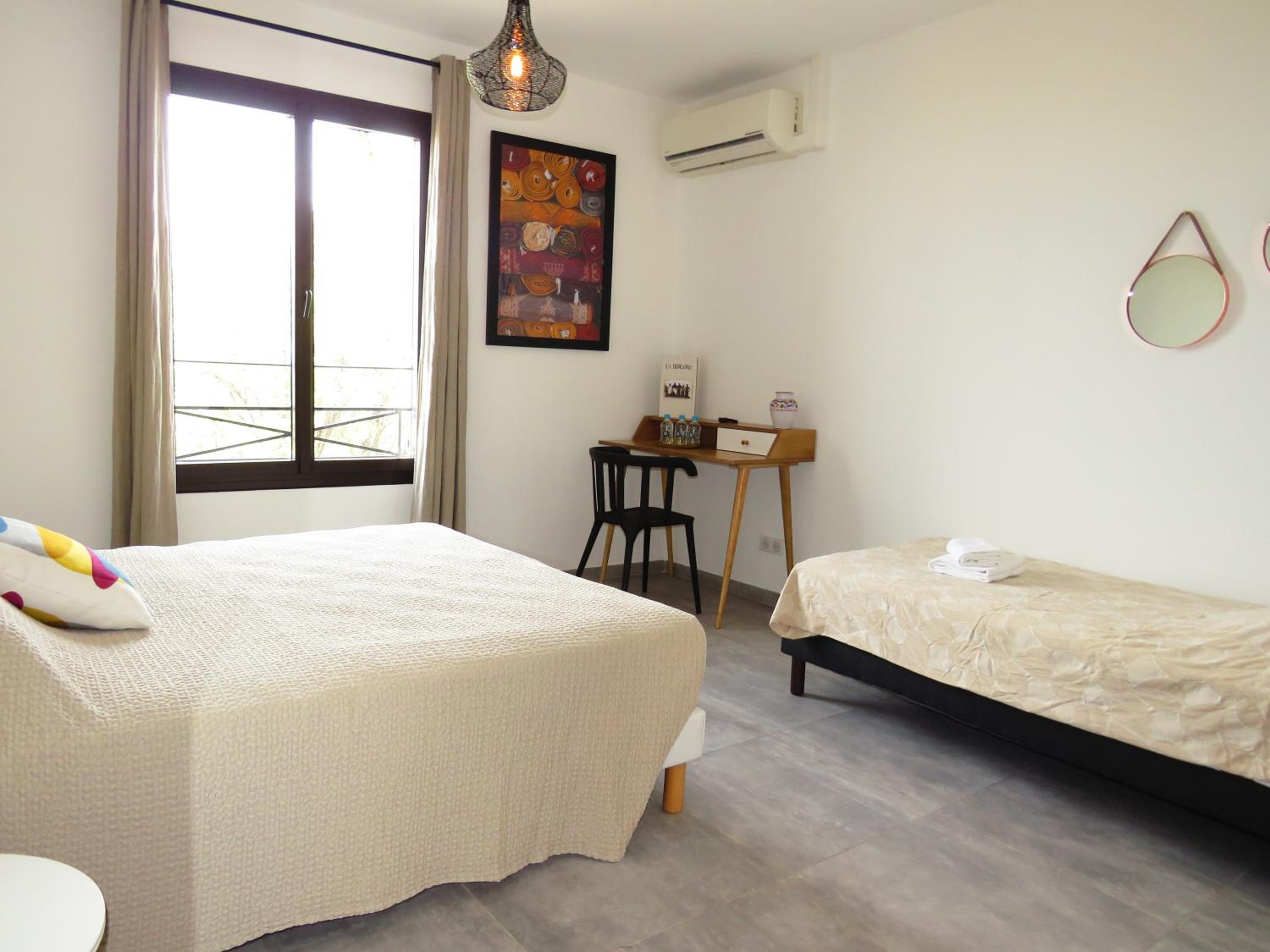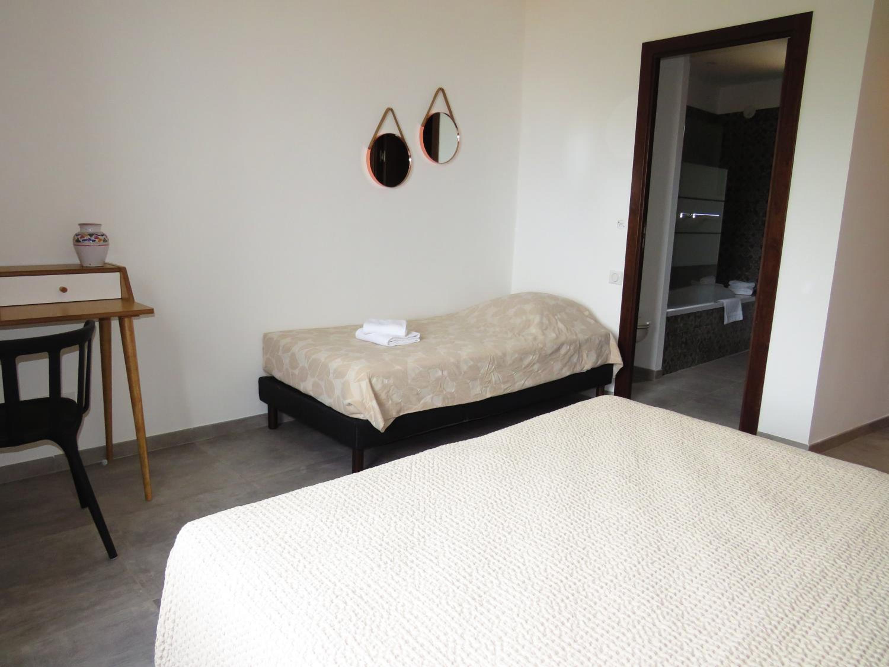 Scenic Views and Relaxation: Enjoy breathtaking views of Ile-Rousse from our outdoor swimming pool and various room options overlooking the garden, pool, or mountains. Unwind with a TV in our shared lounge or take a stroll to the nearby beach just 800m away.