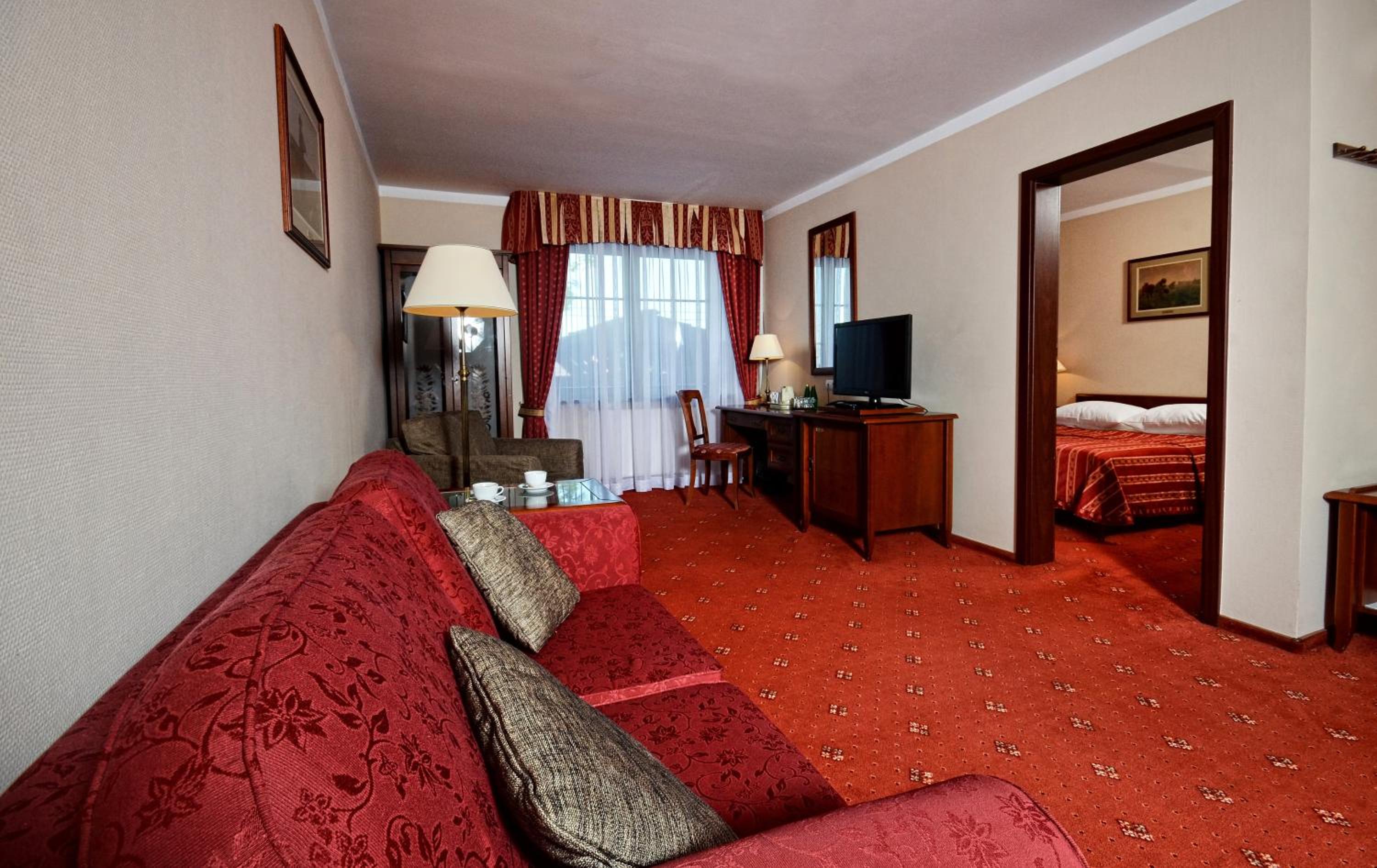 Hotel Żubrówka Białowieża offers air-conditioned, non-smoking rooms with modern amenities including a minibar, LCD TV, and free Wi-Fi. The private bathrooms are equipped with premium toiletries for a comfortable stay.