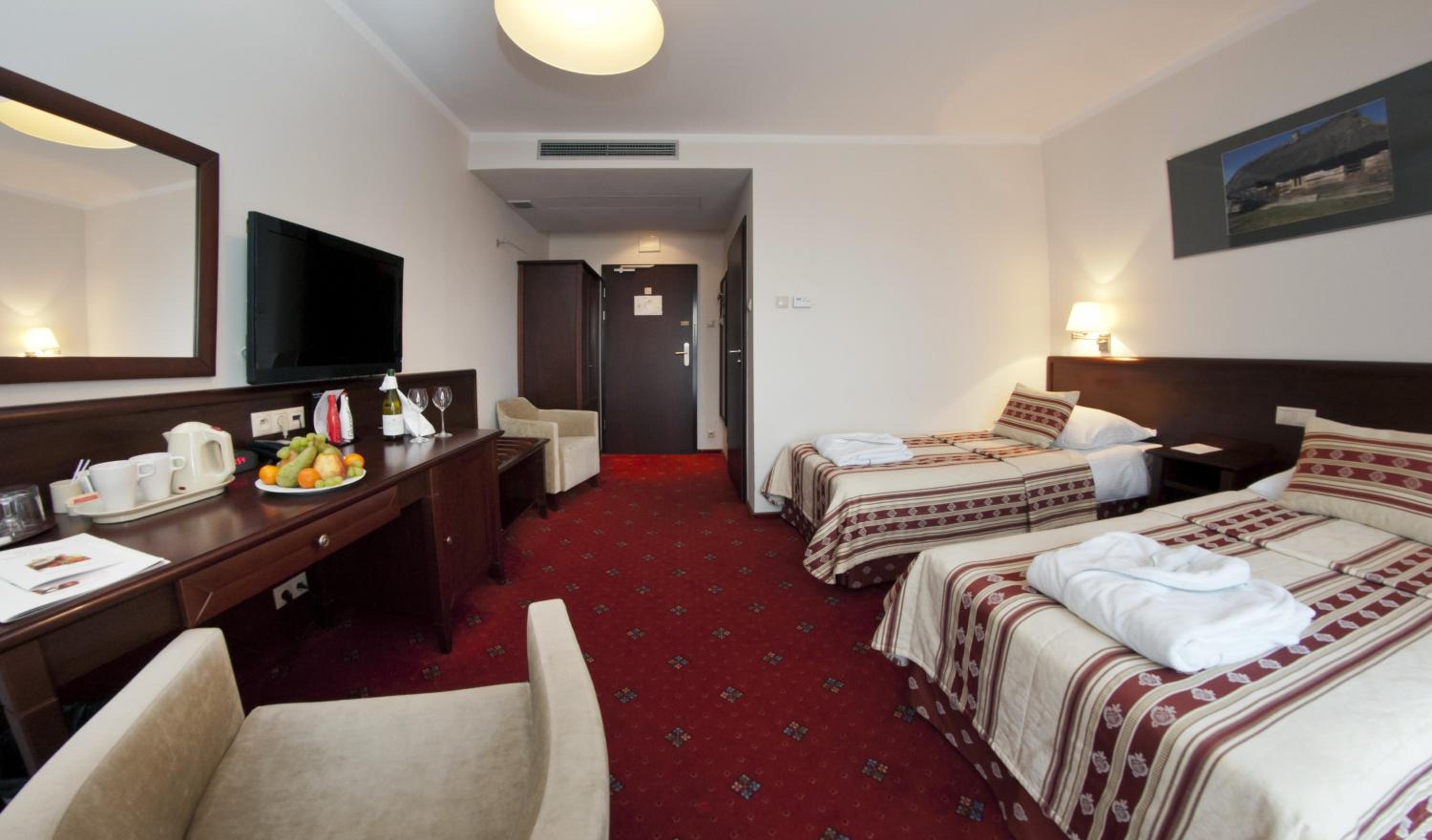 Obsługa bardzo profesjonalna oraz pomocna. Pokoje czyste, przestrzenne, niczego nie brakowało w wyposażeniu. Jeśli chodzi o posiłki przy bufecie śniadaniowym ogromny wybór, wszystko było na bieżąco przez Panie uzupełniane i podawane świeże ciepłe jedzenie.