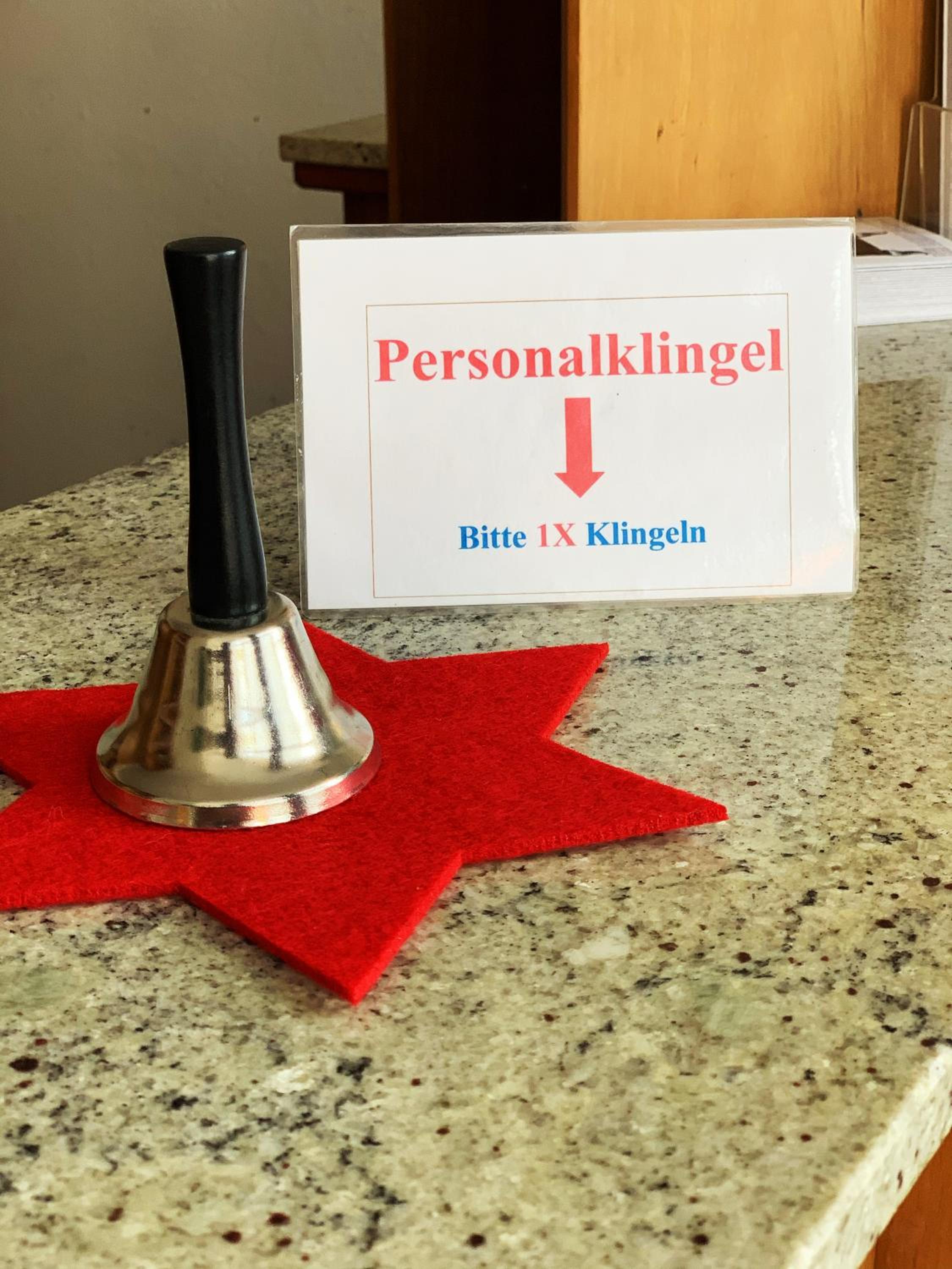 Schlecht Deutsch sprechende Rezeption.