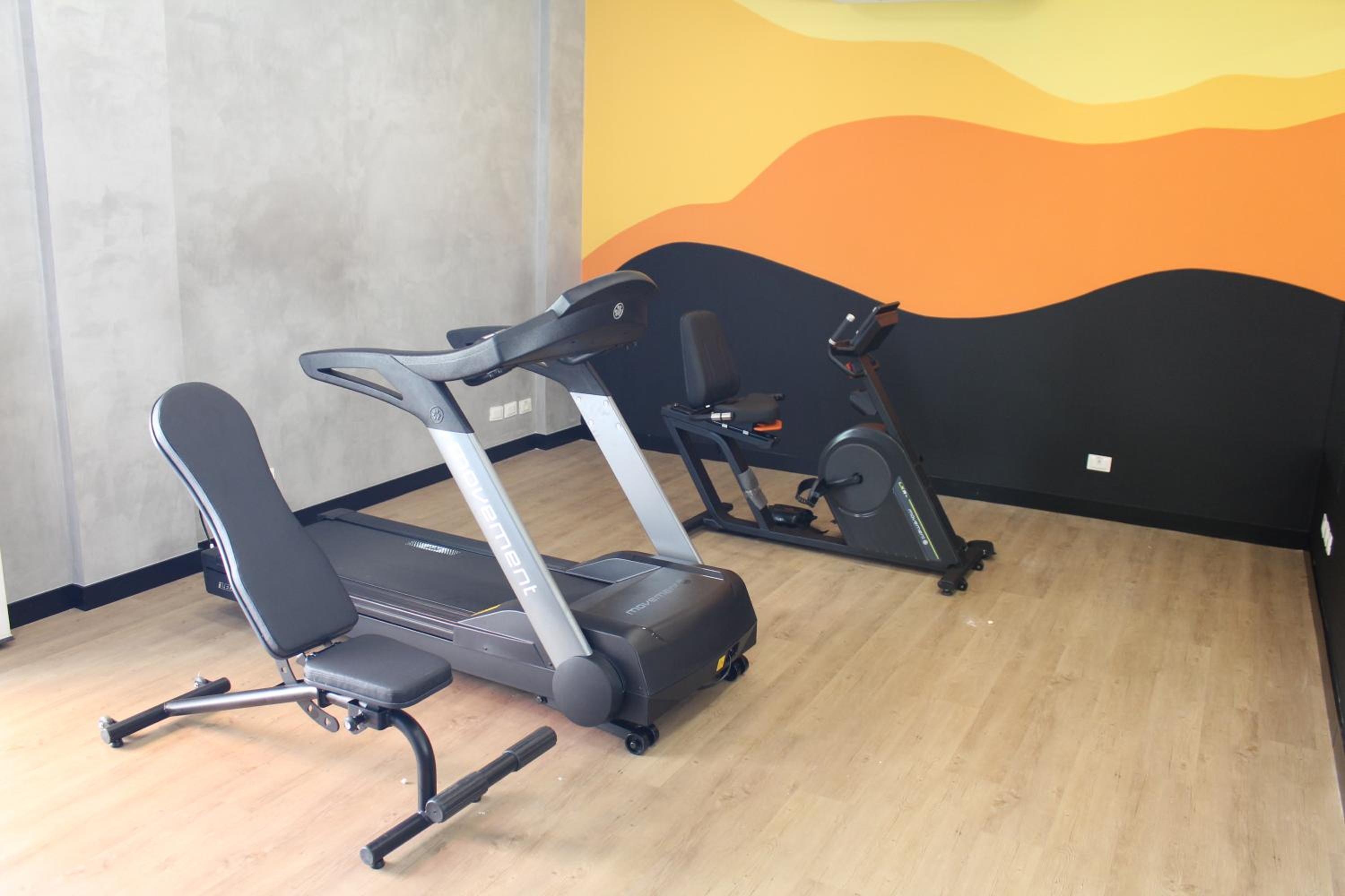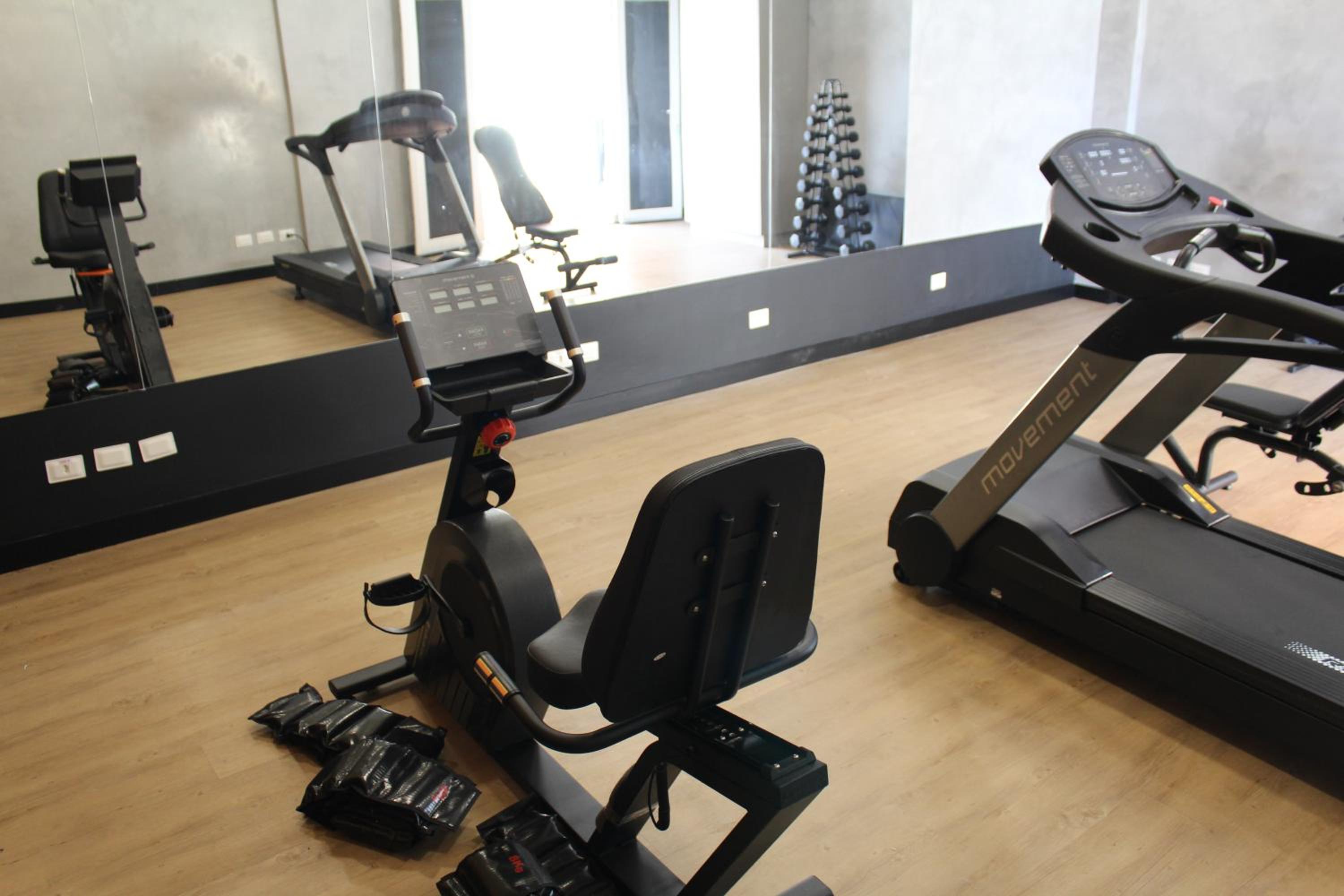 Piscina e academia.