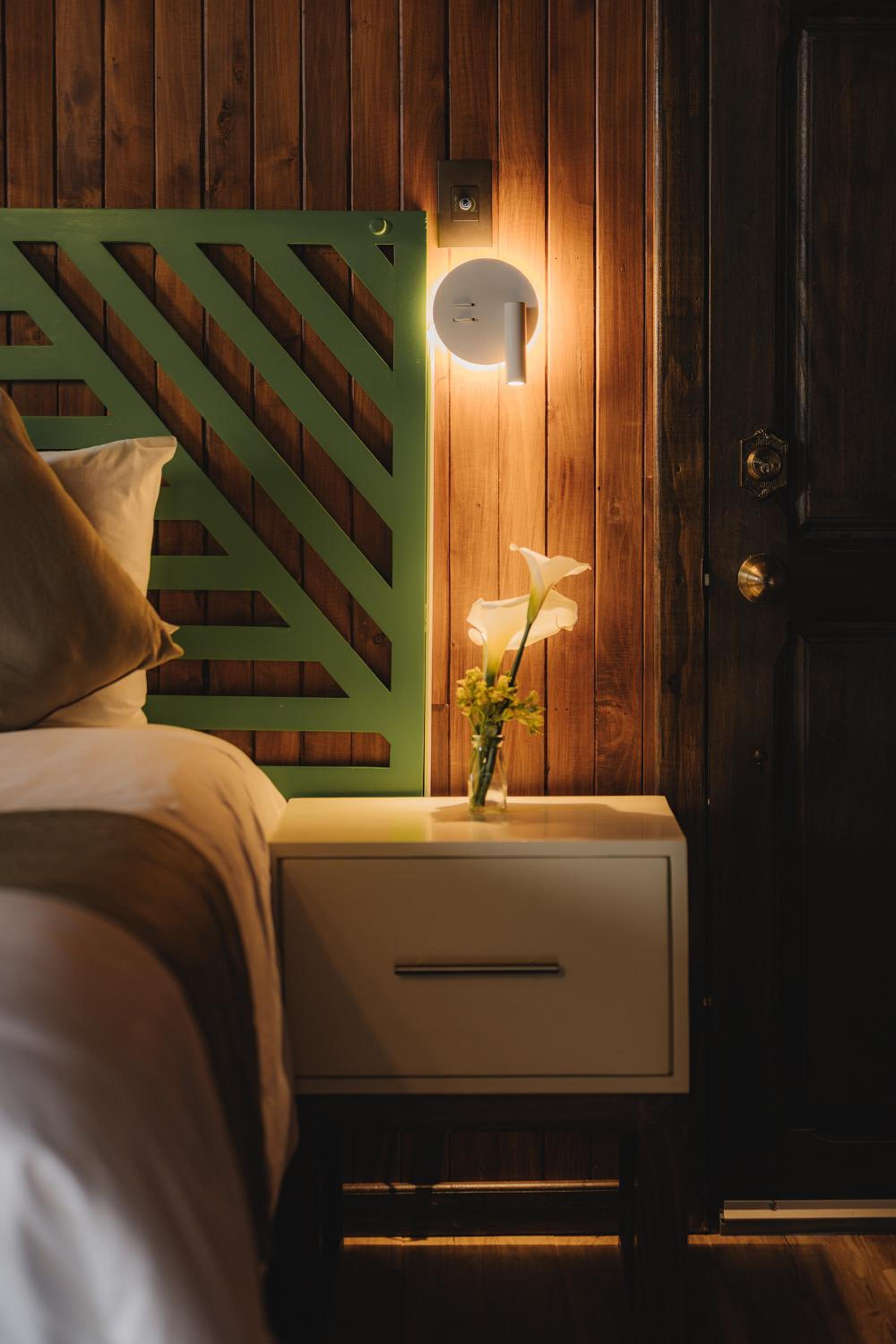 The location on the Avocado grove hillside in very modern passive heated large room and nice bathroom. The meals and staff at the modern restaurant are excellent. Trout entrees are great and the salads to die-for!