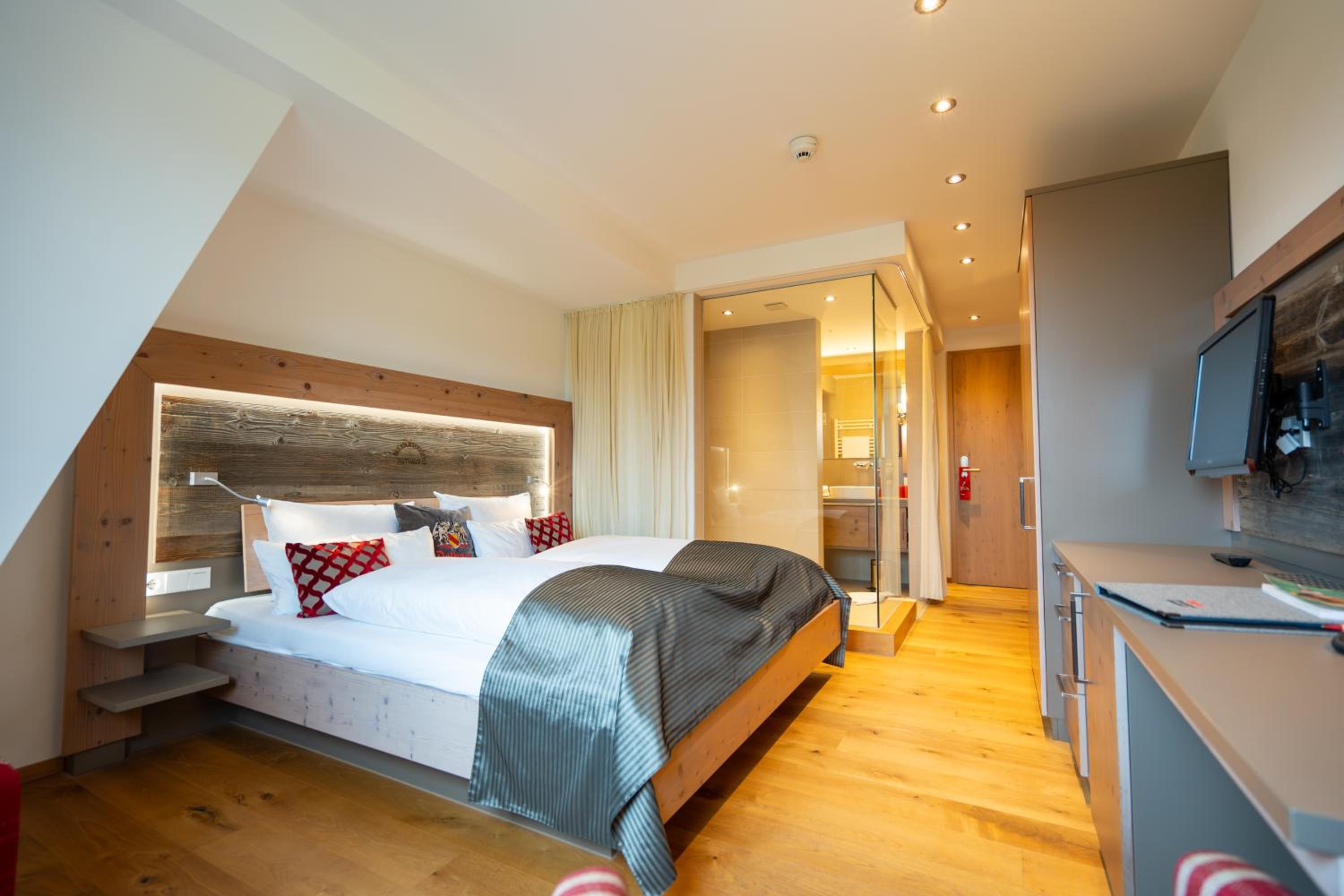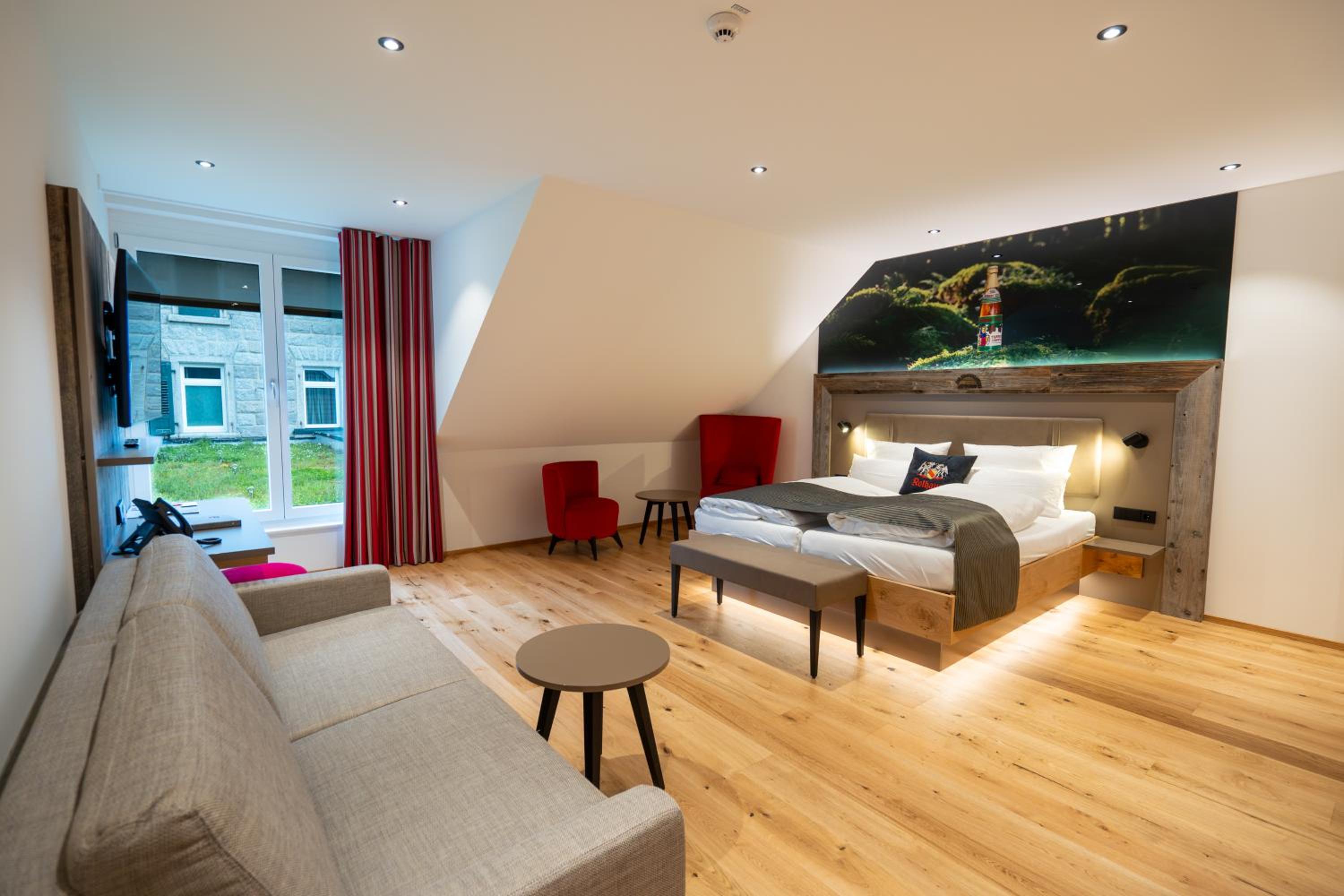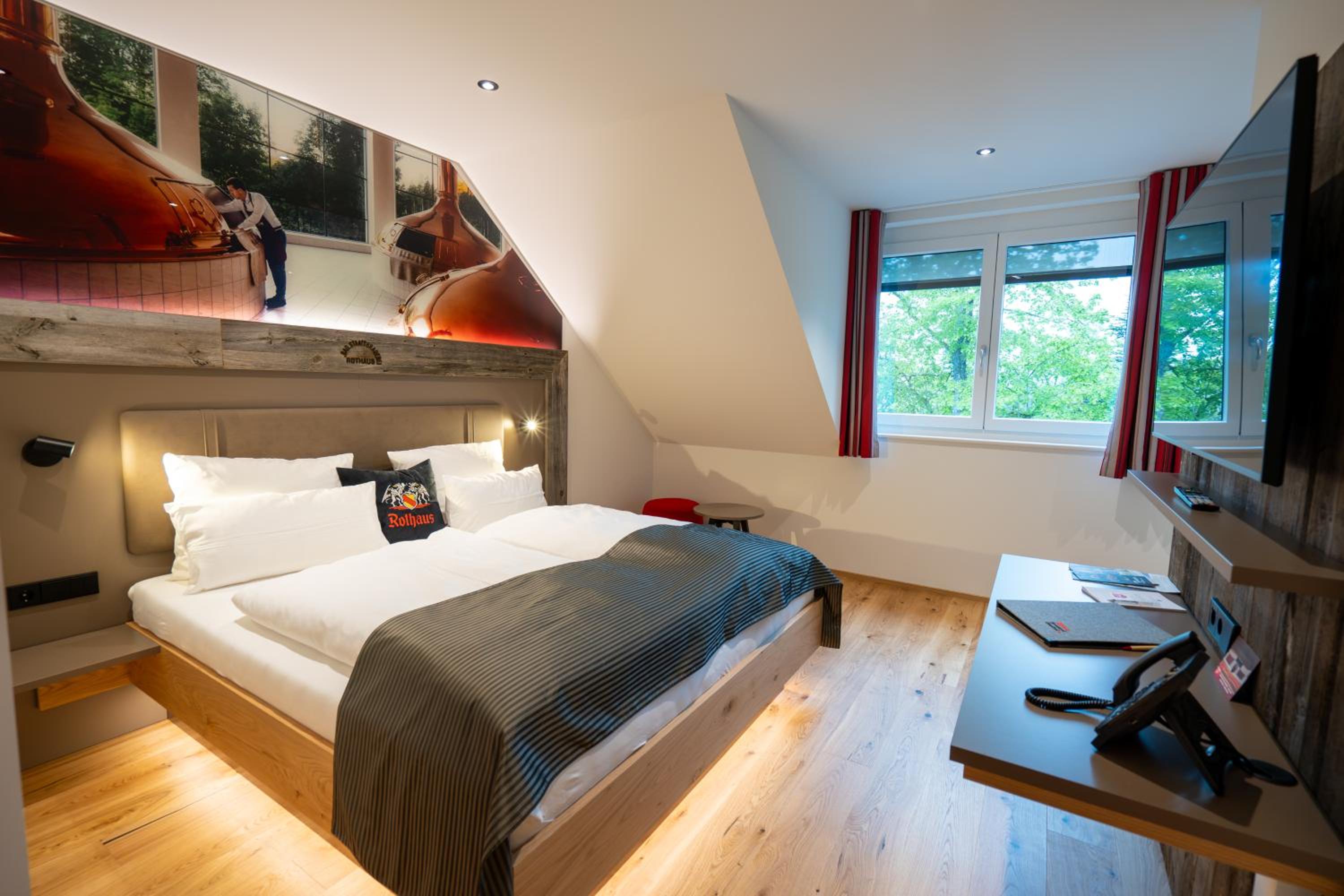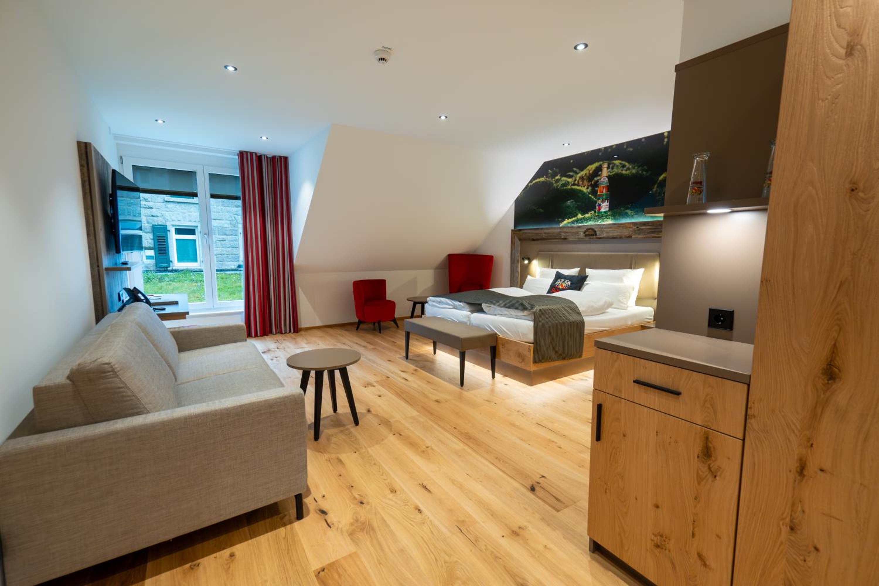 Das Hotel der Rothaus Brauerei liegt ruhig. Die Ausstattung ist sehr ansprechend, die Zimmer sind geräumig, der TV hat eine ordentliche Grösse, das Bad hat eine gute Grösse und ist modern.