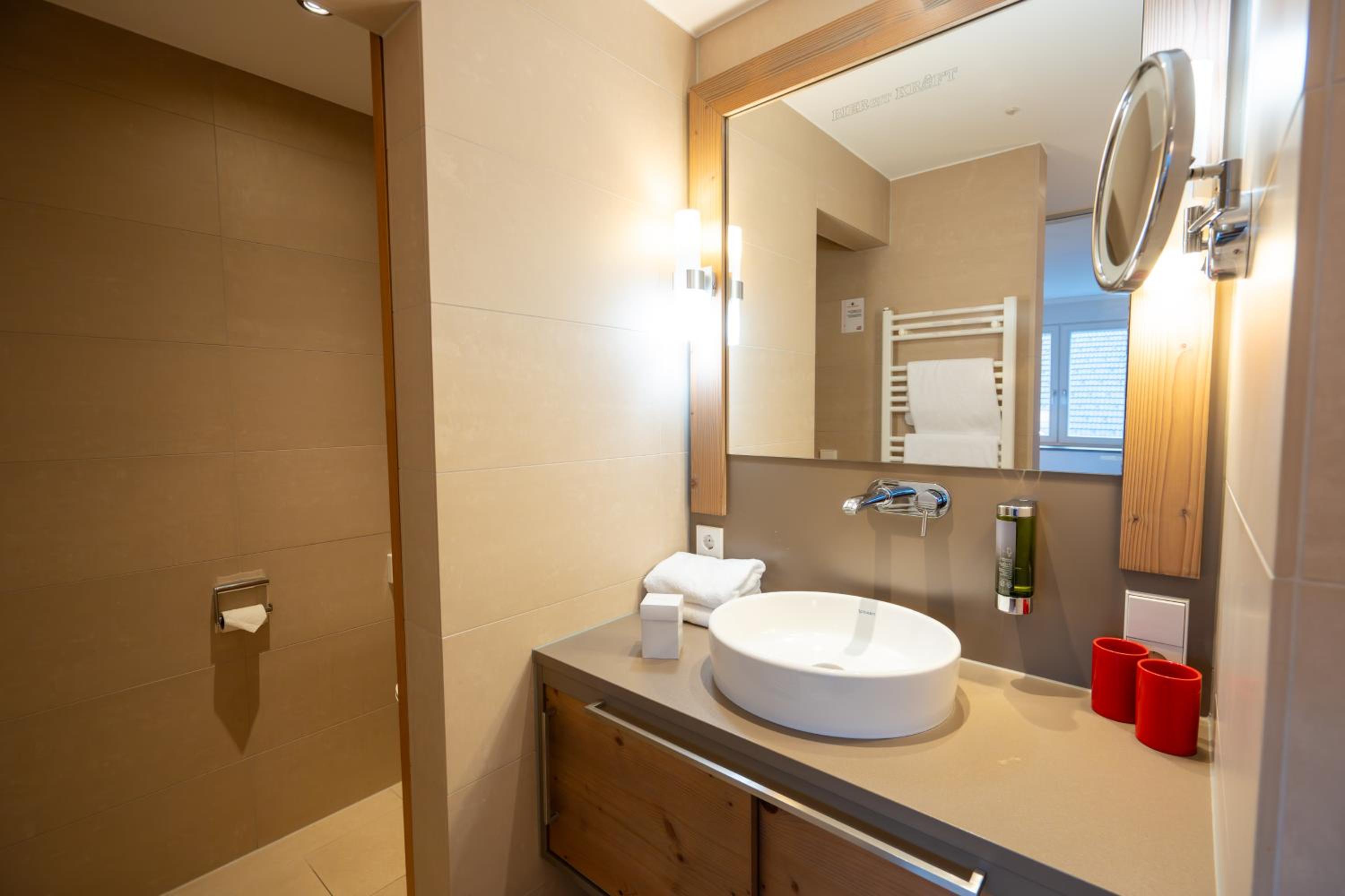 Wundervolles grosszügiges neues Zimmer mit schönen Farben geschmackvoll im Schwarzwaldstil eingerichtet. Speziell ist die tolle stimmungsvolle Beleuchtung im Zimmer und die grosse Dusche mit Glaswänden. Hübsche Geranien am Fenstergeländer. Sympathische war, dass Minibar eiskaltes Bier inklusive war. Das Frühstück war sehr gut, herzhaft und sehr vielfältig . Für jeden Geschmack etwas. Von frischen Brezeln bis Früchte und wunderbaren Tee. Es hat an nichts gefehlt. Der Frückstücksaal hübsch und gemütlich. Wir kommen gerne wieder .