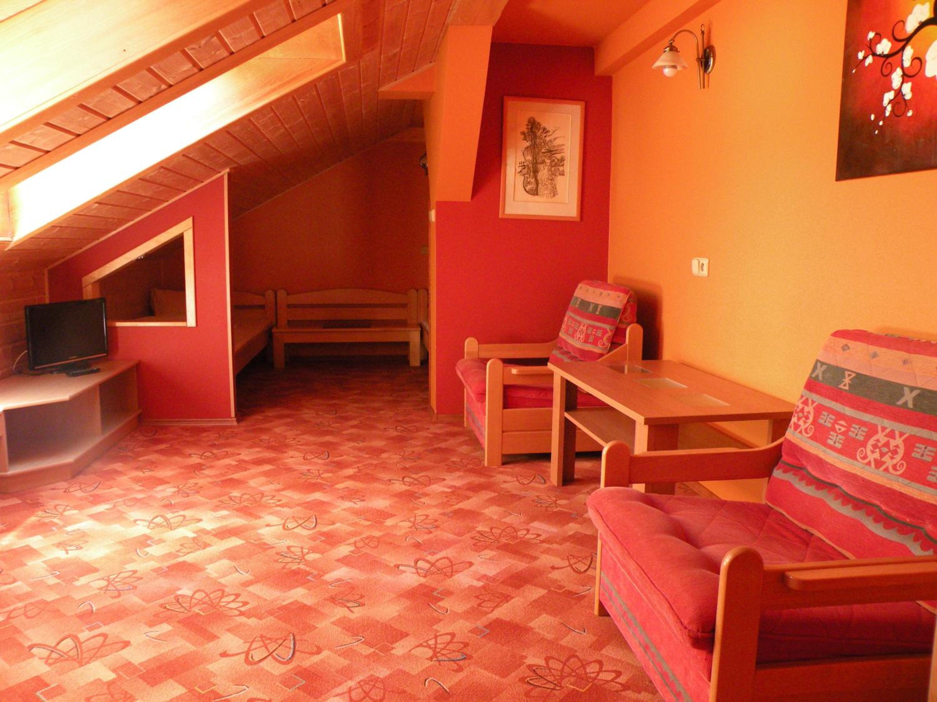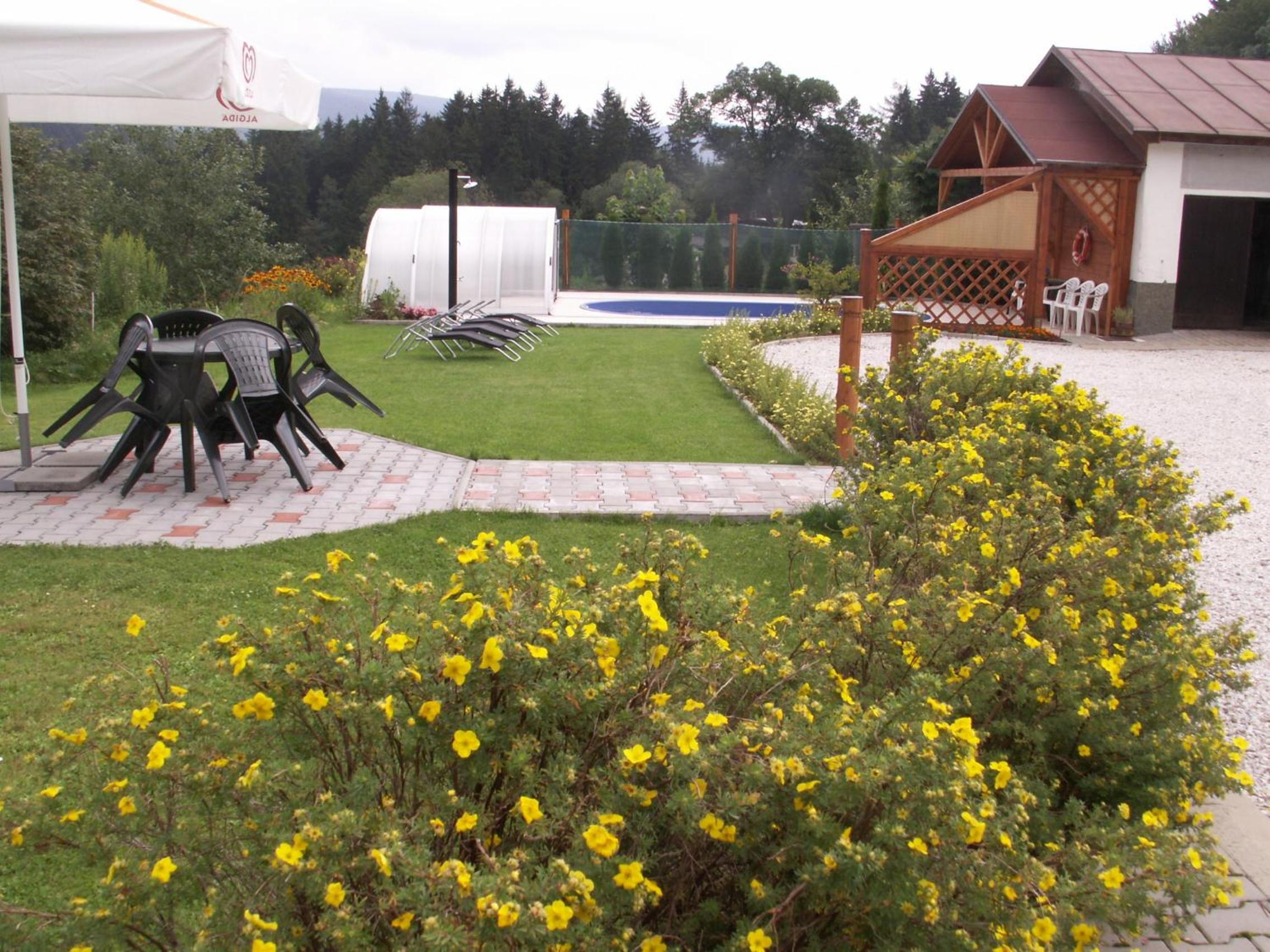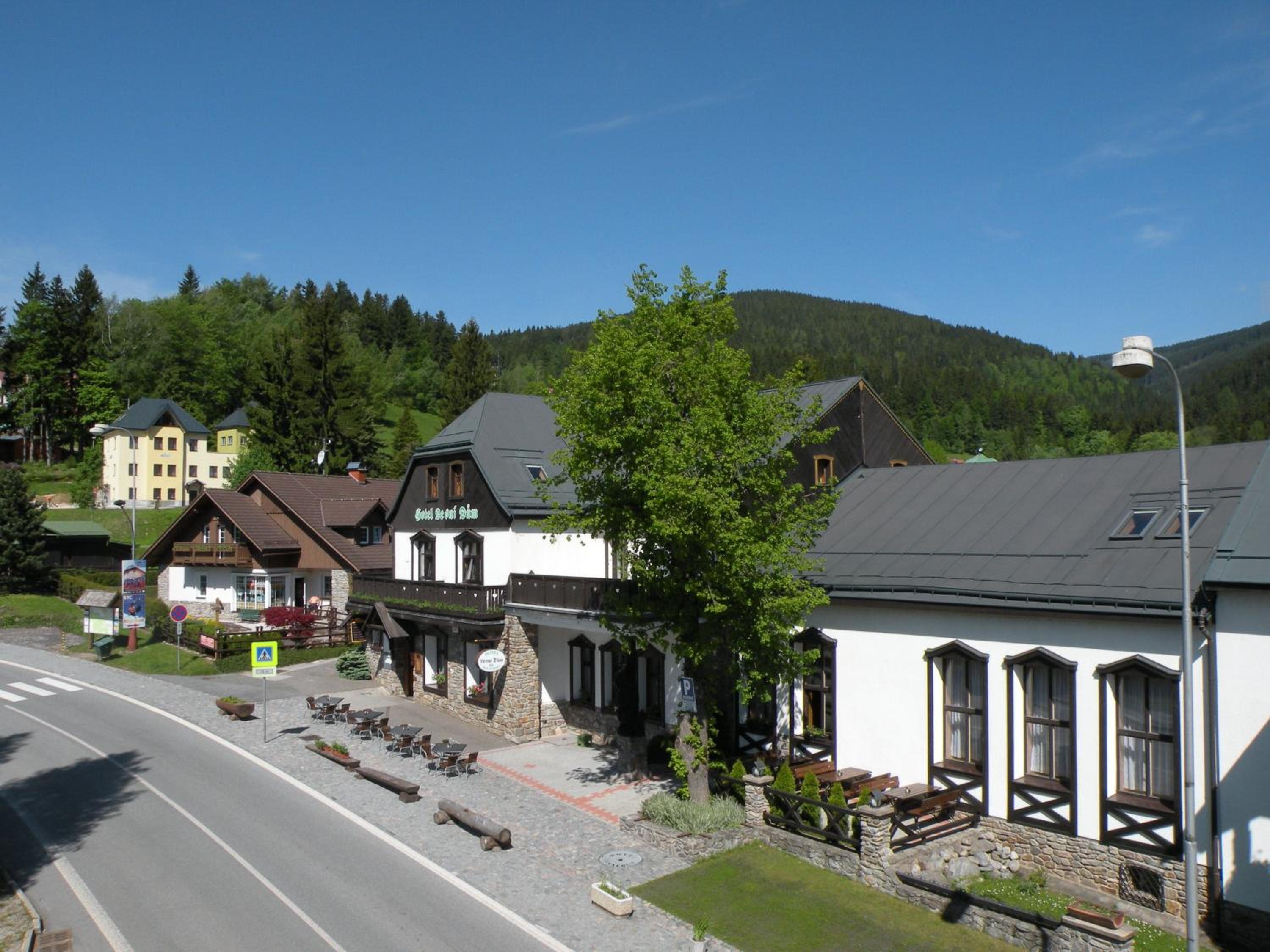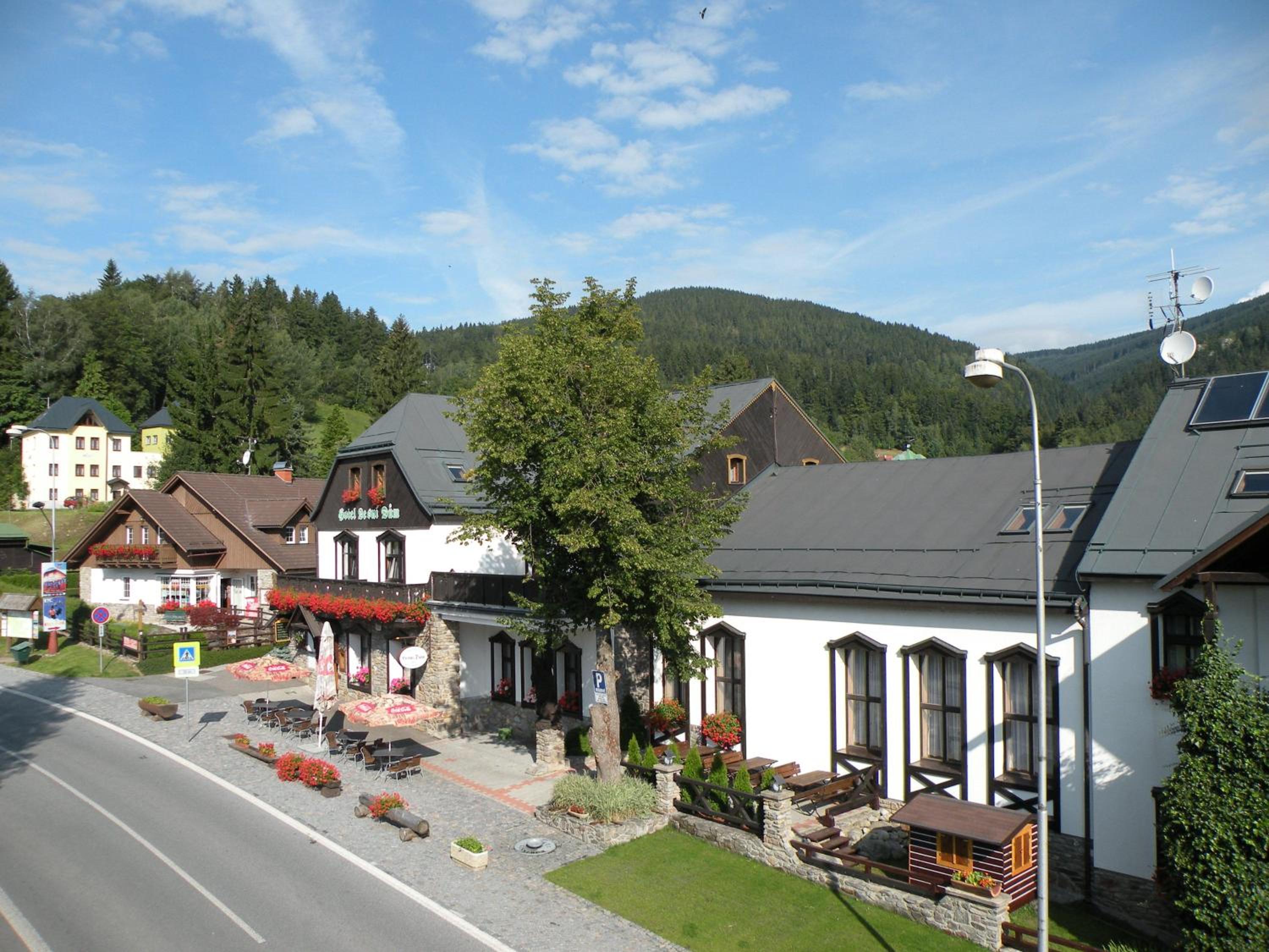 Hotel Lesní dům, nestled in the picturesque Krkonoše National Park, offers a range of cozy units equipped with modern amenities like flat-screen TVs and kitchenettes. Some units even feature balconies for stunning views of the surrounding nature.
