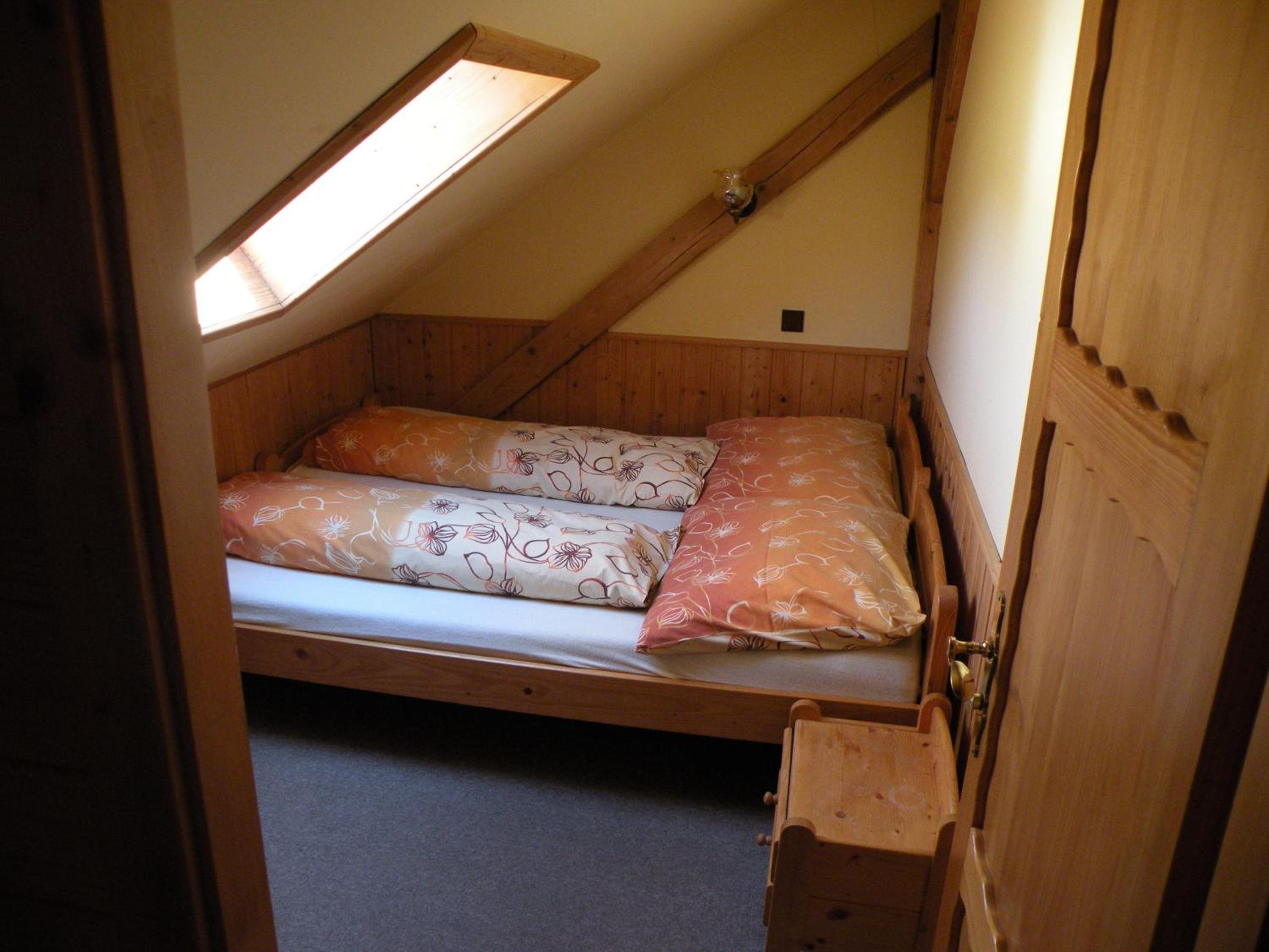 Drewniane okno starego typu nad łóżkiem nie było szczelne, więc komfort termiczny w nocy był ograniczony.