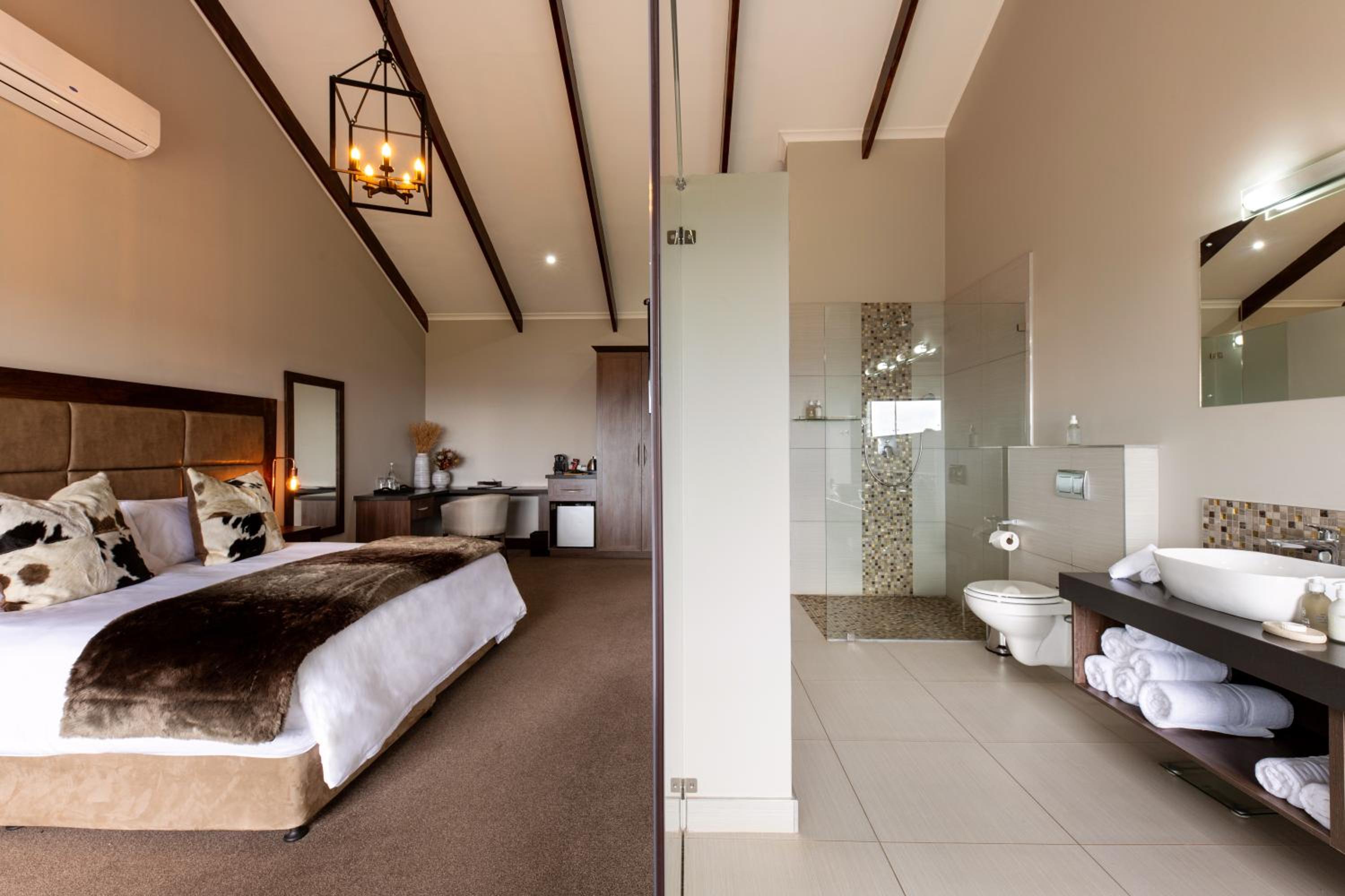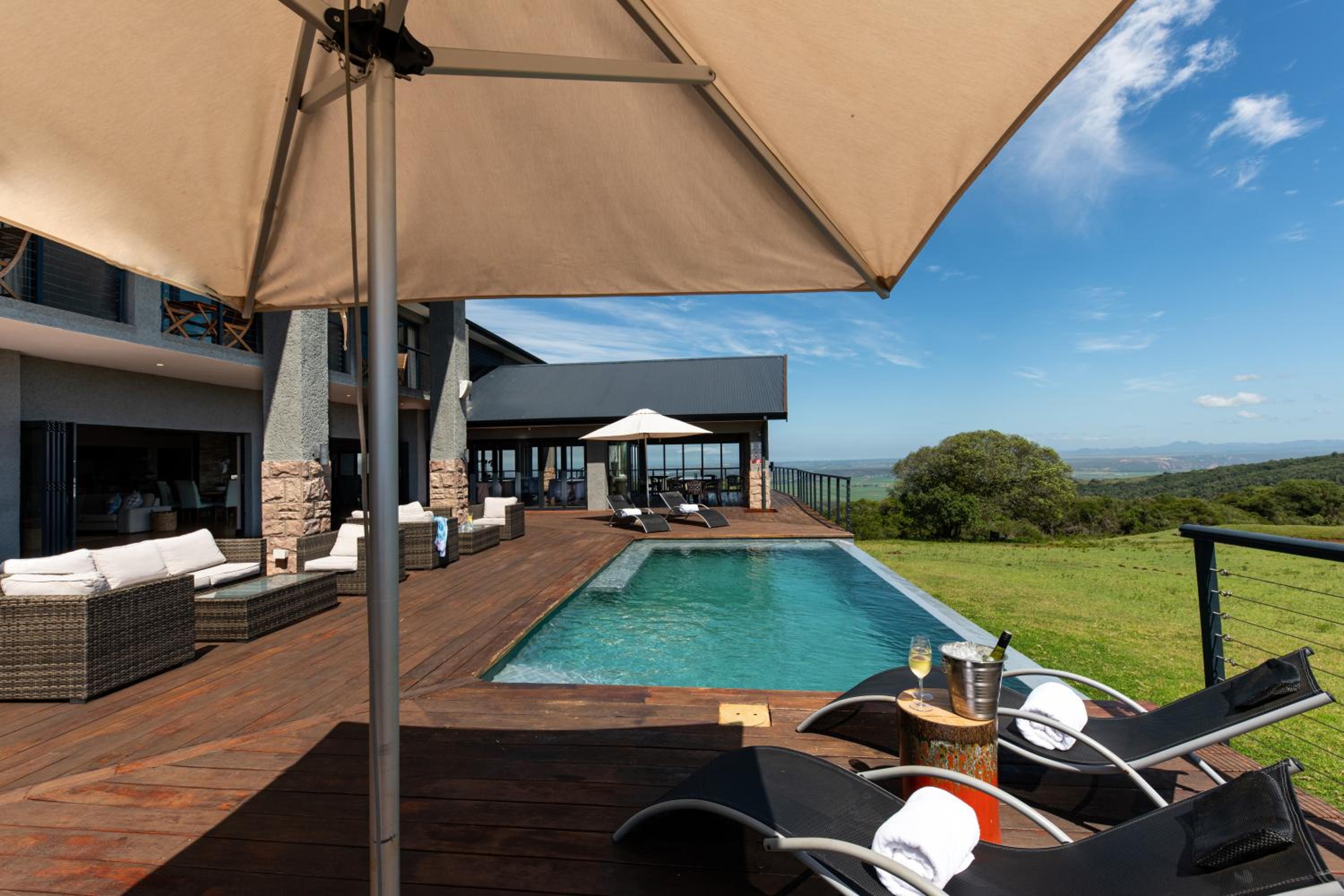 Guests can unwind at the seasonal outdoor pool, sun terrace, and on-site bar. For adventure seekers, the lodge offers activities like horse riding, game drives, and cycling trails. The fully-serviced dining room ensures a delightful culinary experience.