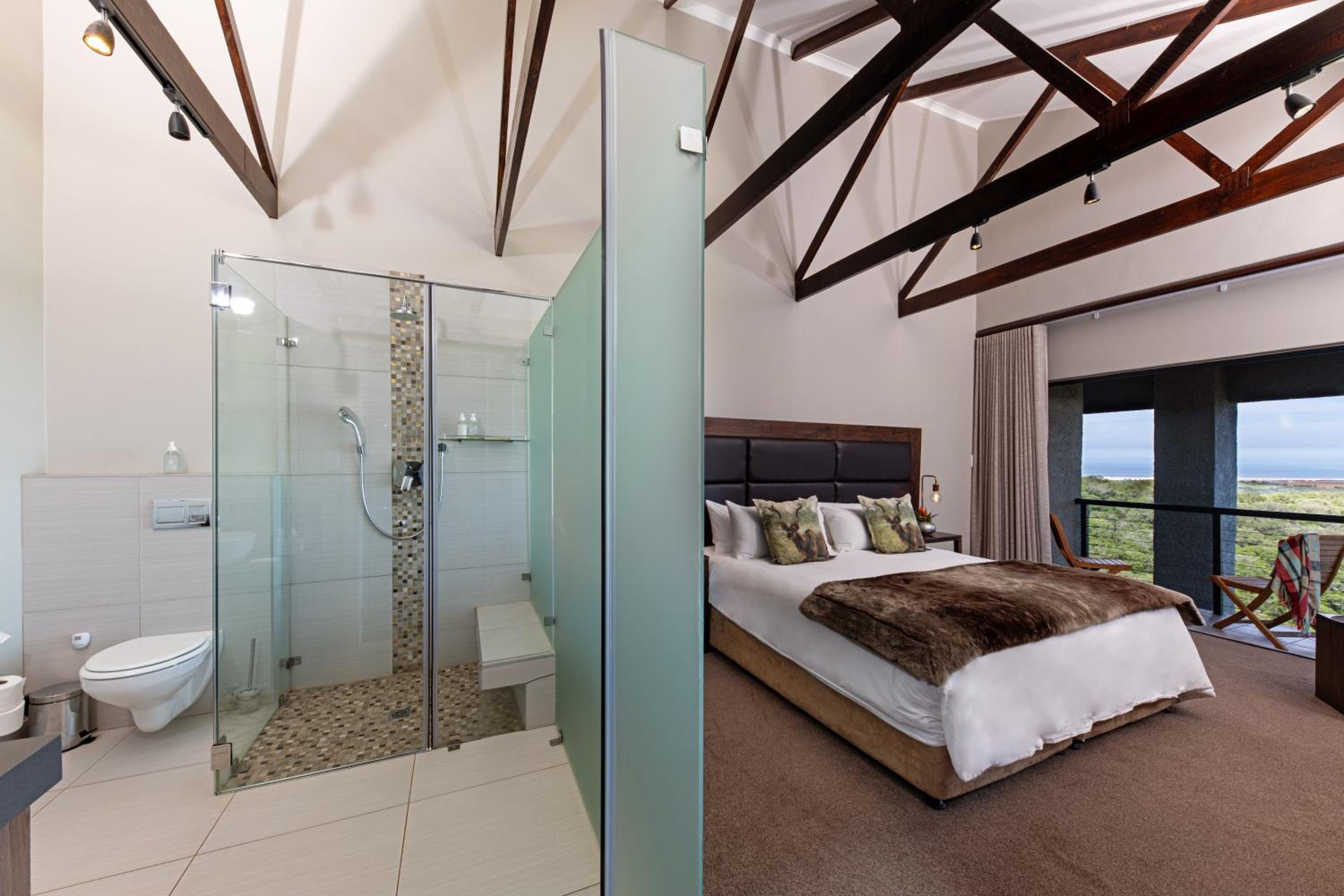 Intle Game Lodge in Loerie offers a luxurious stay with breathtaking sea views. The well-equipped rooms feature flat-screen TVs, minibars, and balconies for a comfortable and relaxing experience.