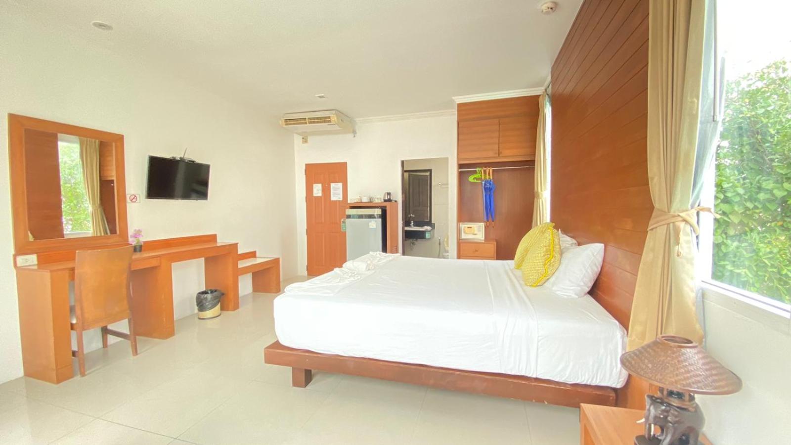 Each air-conditioned room at Sukcheewa Residence Phuket is thoughtfully equipped with a flat-screen cable TV, fridge, safe, and en suite bathroom with hot shower facilities. Enjoy a comfortable stay with complimentary drinking water provided.