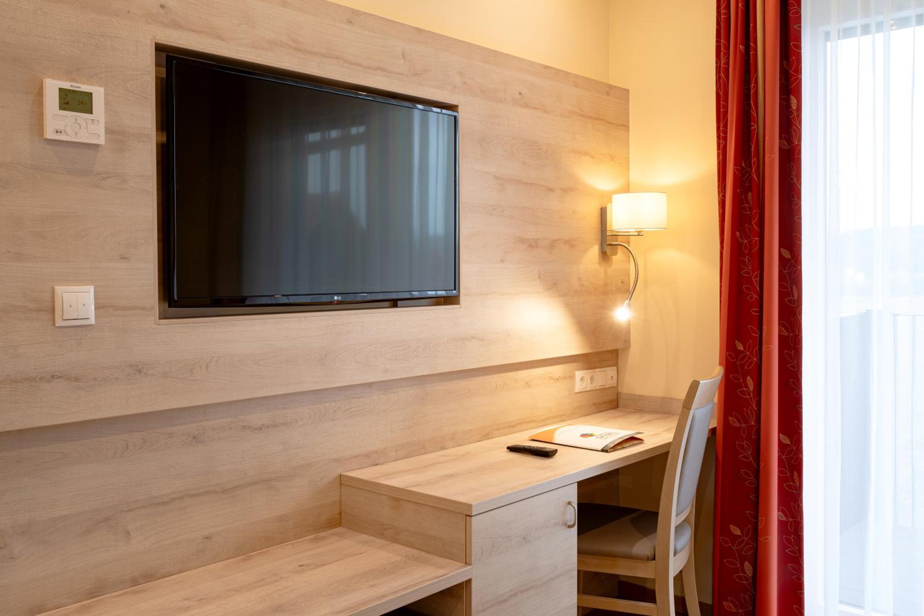 Hotel Schachenwald offers spacious and bright rooms with modern amenities, including flat-screen TVs and air conditioning. Many rooms also feature balconies for a relaxing stay.