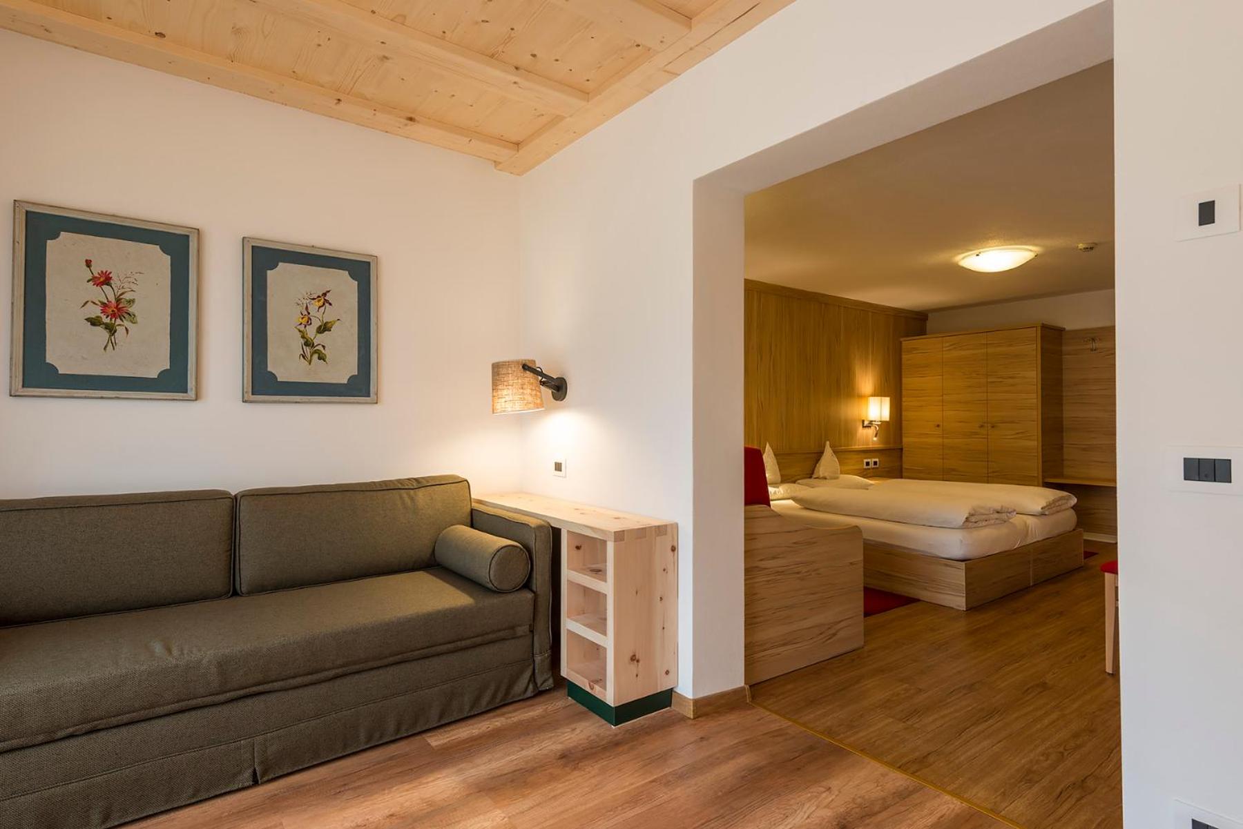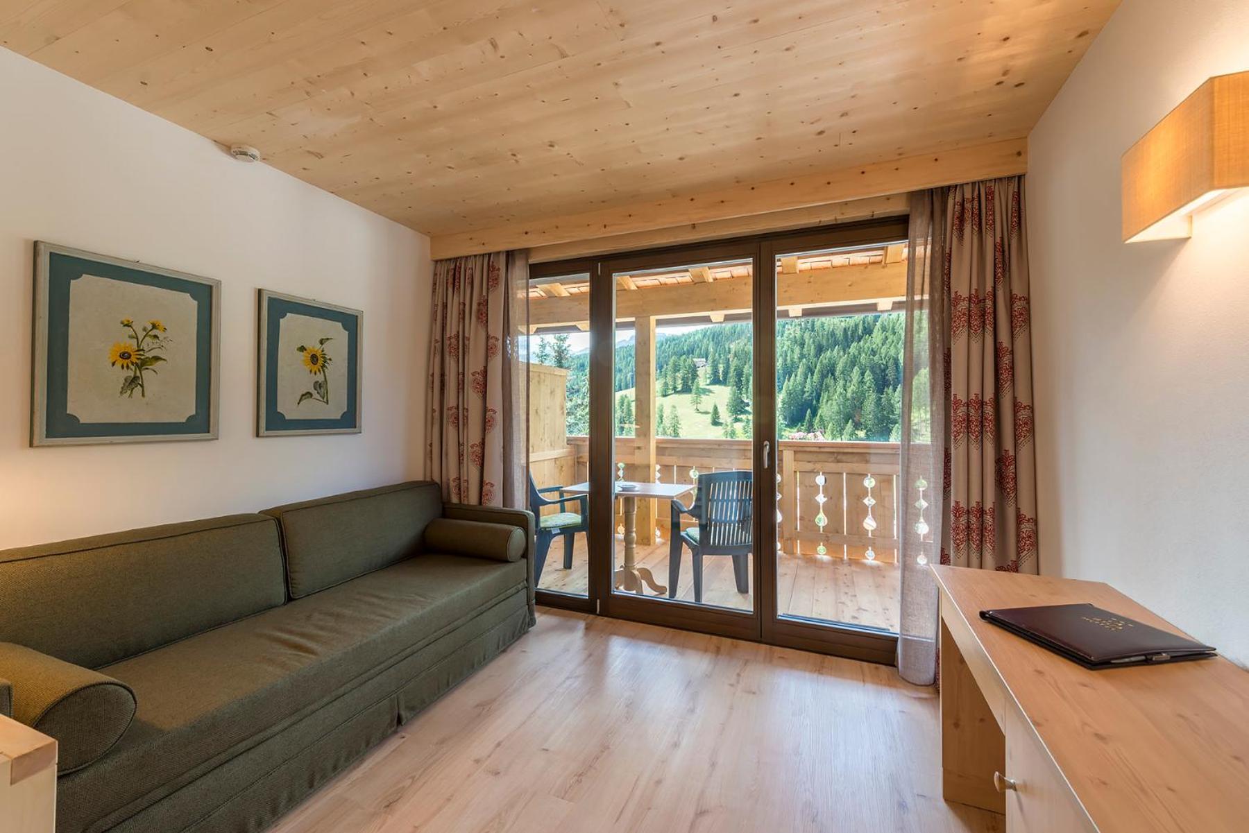 Indulge in spacious rooms and apartments designed in a classic mountain style with wood floors. Enjoy modern amenities like satellite TV, a safe, and a private bathroom. Step out onto a balcony in most rooms for stunning views.
