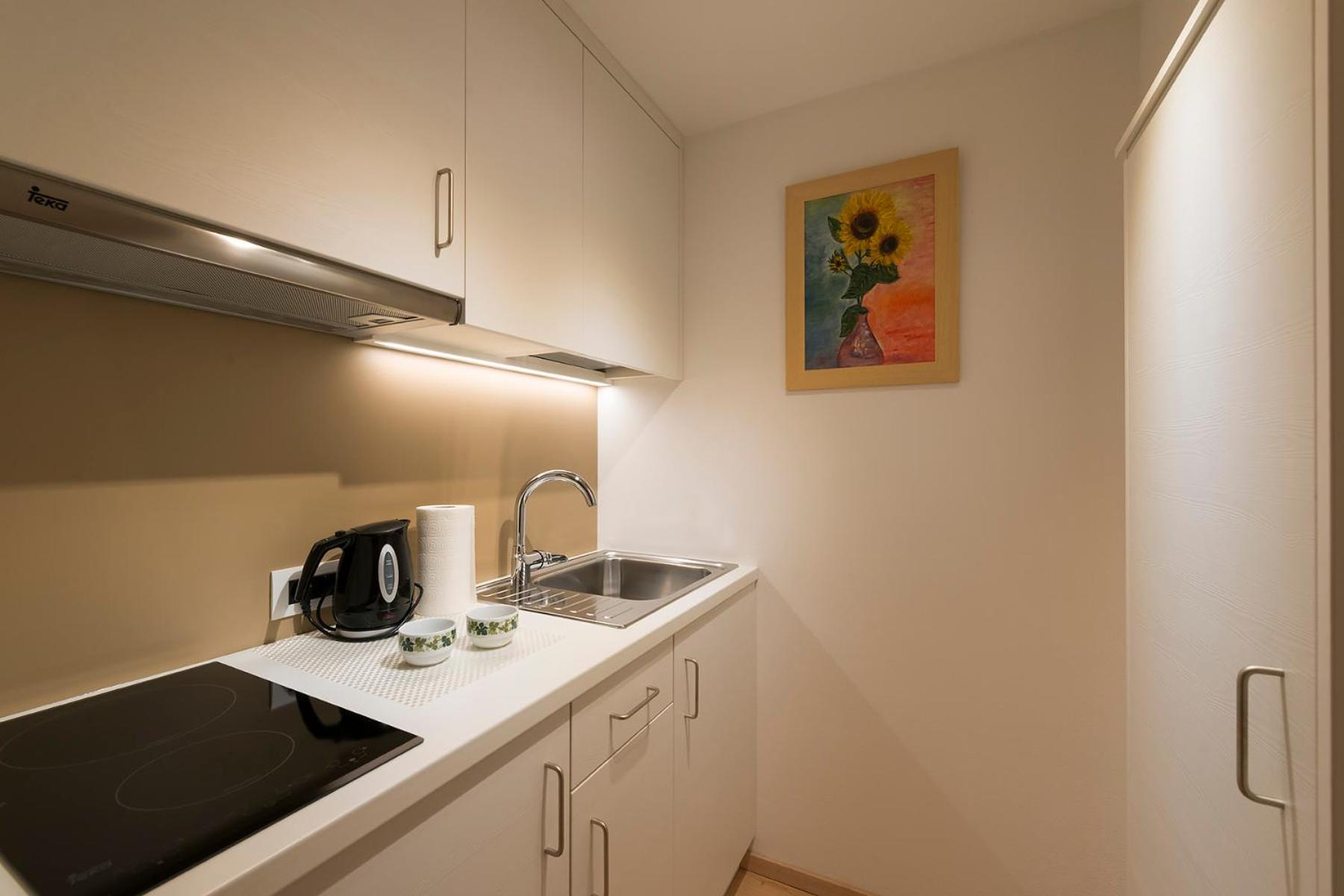 Nous avions réservé un appartement avec cuisine, le seul disponible sur booking.com, avec balcon . En fait ce grand appartement , situé à l'arrière du bâtiment a vue sur 2 autres immeubles (l'arriere du sauna et les cuisines d'un autre hôtel. Nous avons pu finalement changer pour un appartement plus petit, moins bien équipé, mais avec terrasse et vue sur la vallée.