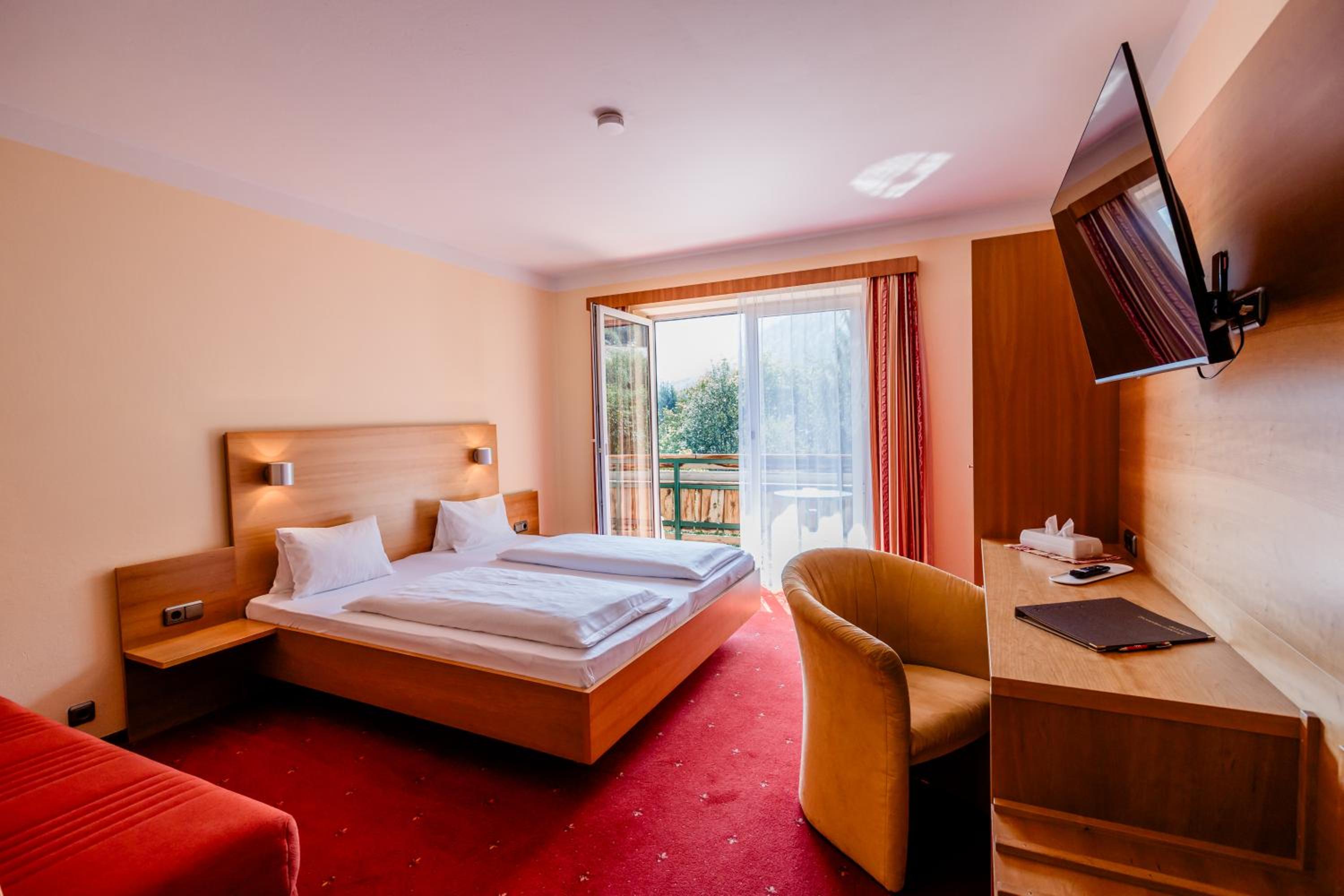 Wir hatten ein tolles und außergewöhnliches Zimmer mit rundem Bett ;-). Das Personal war super-freundlich und zuvorkommend. Das Essen war hervorragend (Frühstück und Abendessen). Schöner Wellnessbereich - wir haben den Innen-Pool gerne genutzt, um ein paar Runden zu schwimmen. Er ist zwar nicht groß, aber ein Schwimmen ist möglich. Das Wasser hätten wir uns ein bisschen wärmer gewünscht, aber für sportliche Betätigungen passts schon. Unsere e-bikes konnten wir in der e-bike-Garage laden (super Service).
