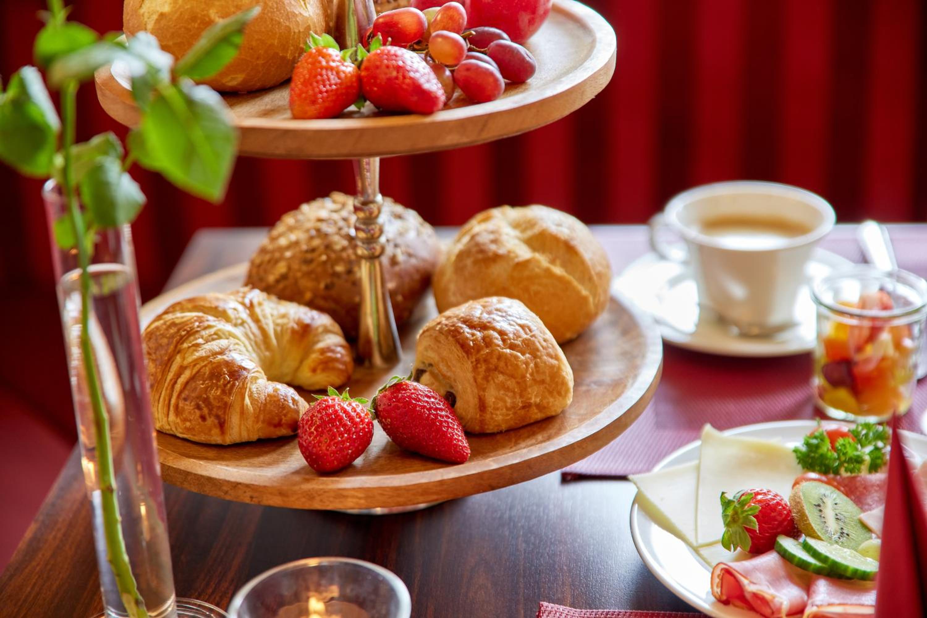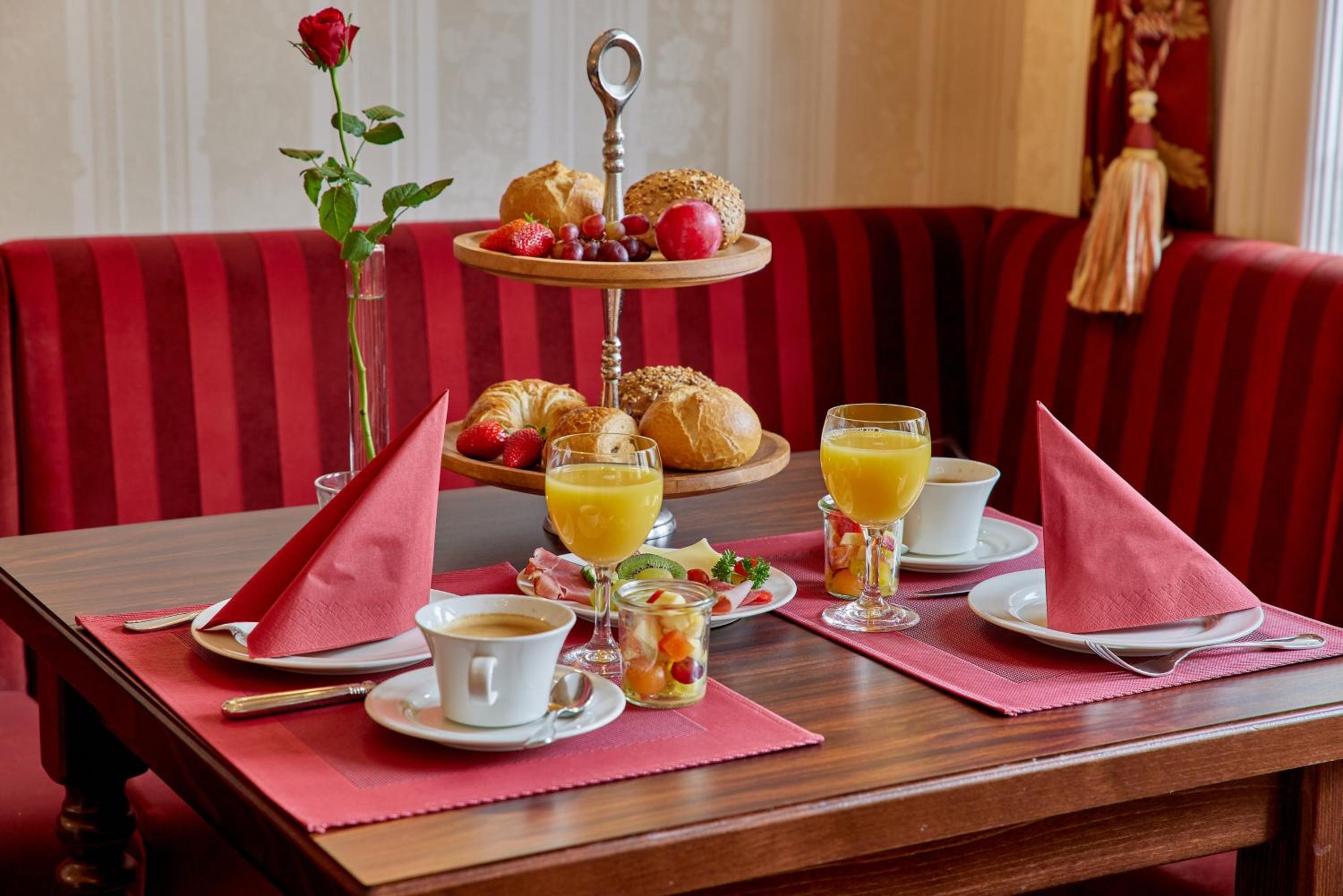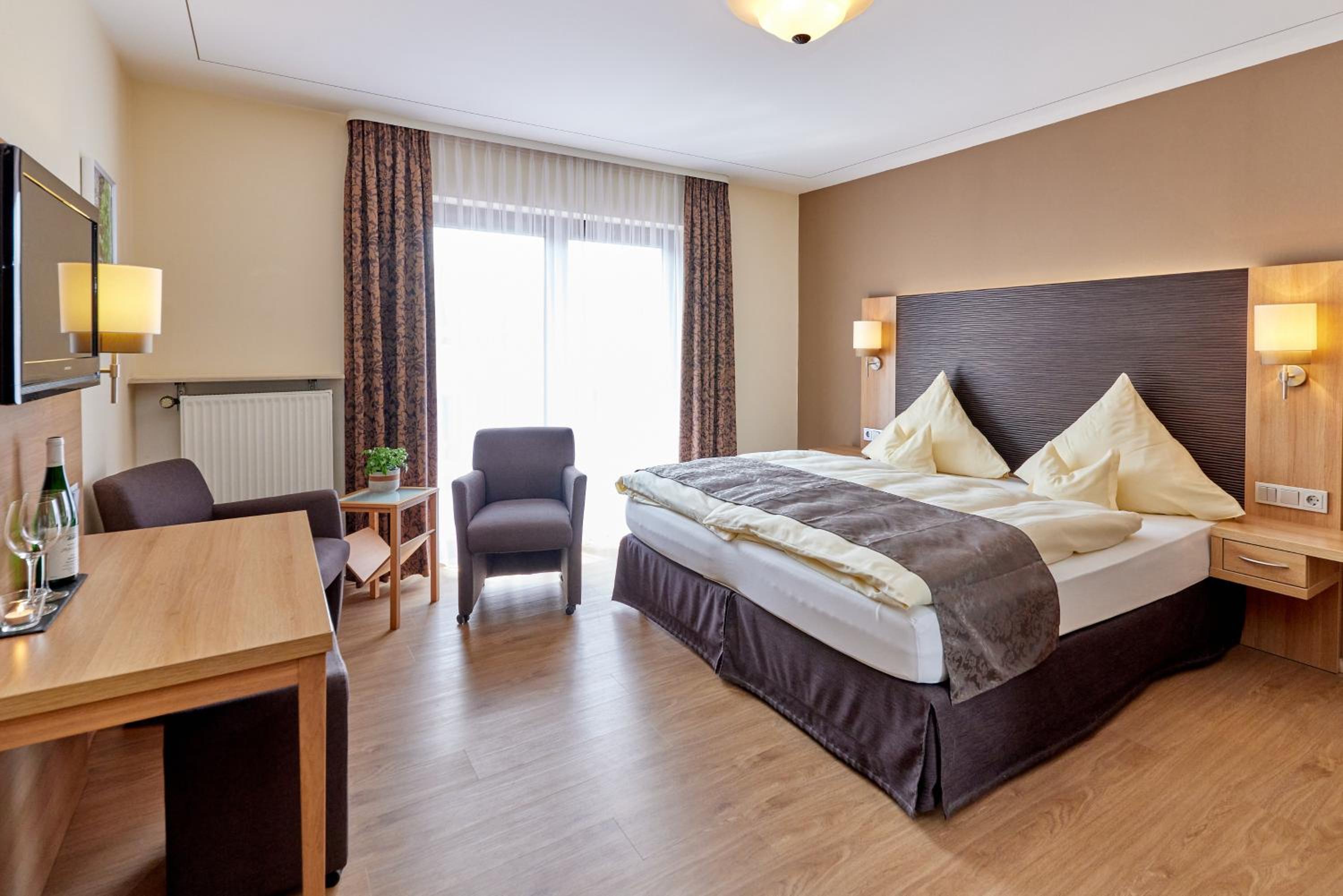 Start your day right with a complimentary and generous breakfast buffet included in your room rate. Enjoy a variety of delicious options to energize yourself before exploring the historic centre of Bernkastel-Kues. After a day of sightseeing, unwind on the hotel's scenic terrace surrounded by lush grapes and colorful flowers.