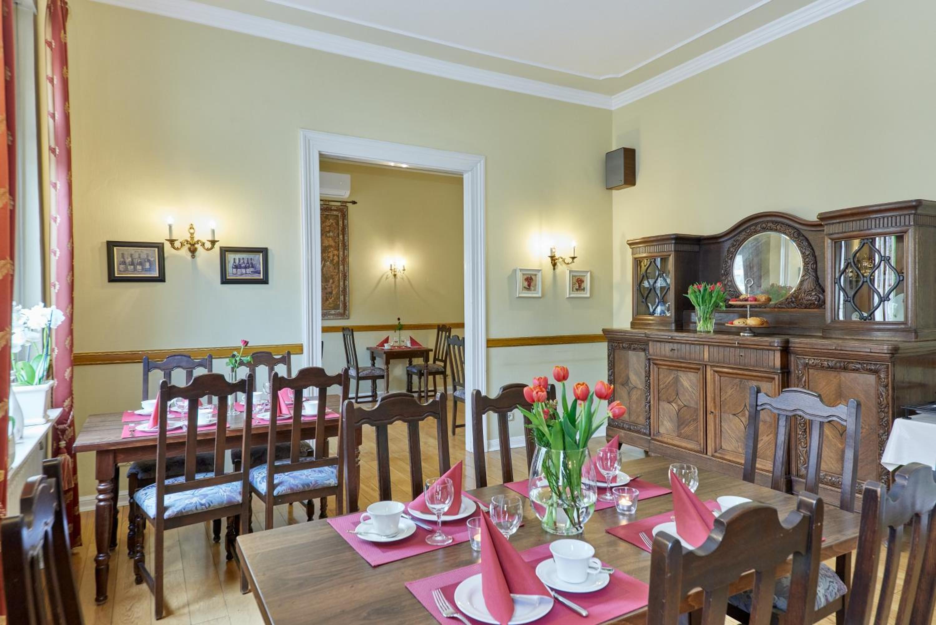 Aufgeschlossene Leute um guten Service bemüht. Nett, hilfsbereit. Betrufft Chefin und Tochter. Ansonsten absolut sauber, hochwertige Ausstattung. grosse und ruhige Zimmer, ordentliches, variantenreiches und ausreichendes Frühstück. Top Lage für den Stadtbesuch. Private Parkplätze und problemlose Anfahrt.
