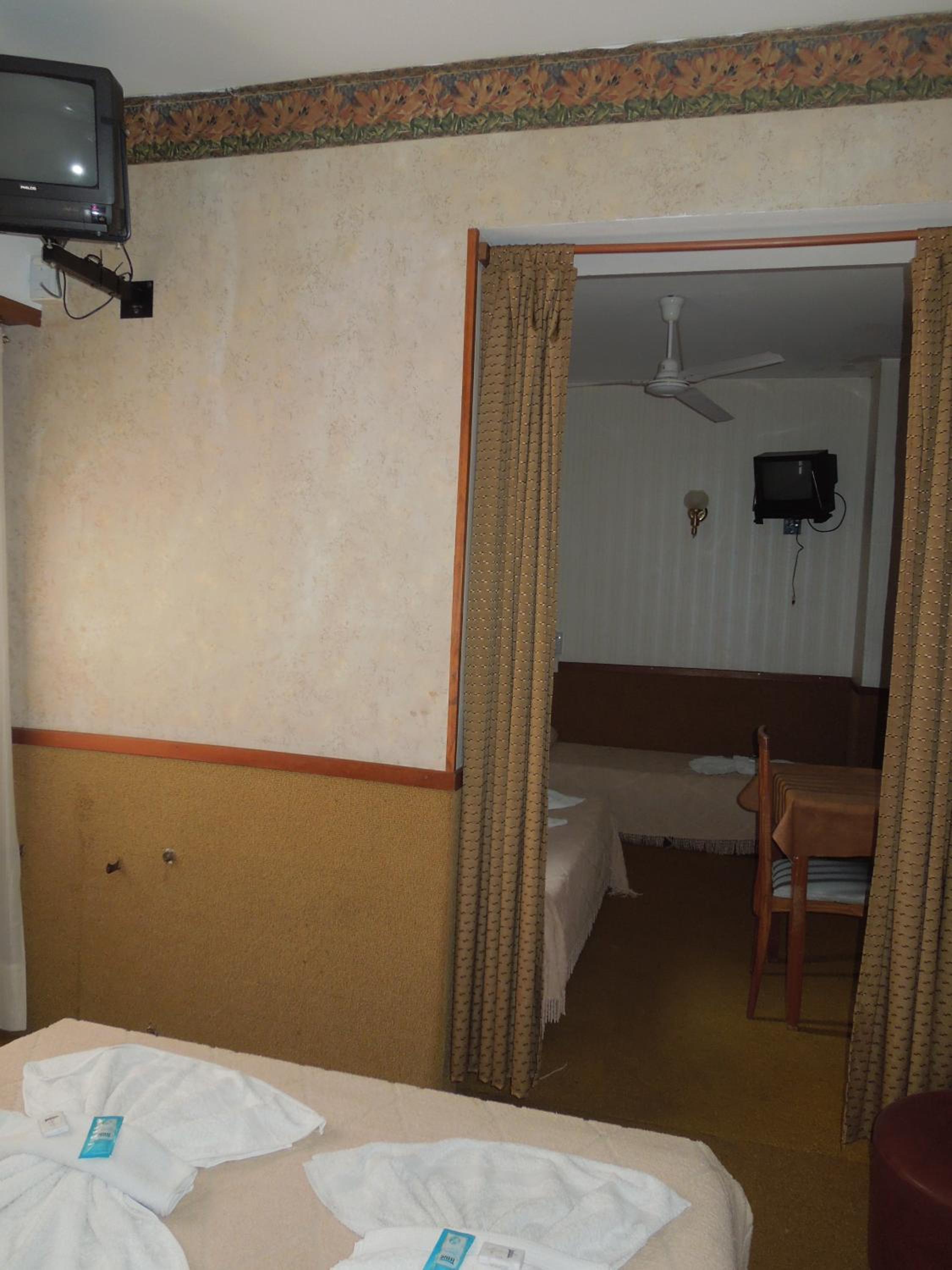 La habitación que nos dieron al llegar, desastrosa, el baño demasiado chico e incómodo, perdía, se inundaba, pegada al lavadero se transmitían todos los ruidos, el ventilador de techo hacía ruido al girar, tenía unicamente el foco sin una tulipa, deplorable. Por suerte el personal excelente y al día siguiente nos cambiaron de habitación. Mucho mejor. La cochera cubierta pero tenias que estar viendo adonde ubicar el coche ya que habia pedazos de techo desprendido que parecia que iba a caerse. Mucha falta de mantenimiento en habitaciones , cochera , y demás instalaciones. Una lástima.