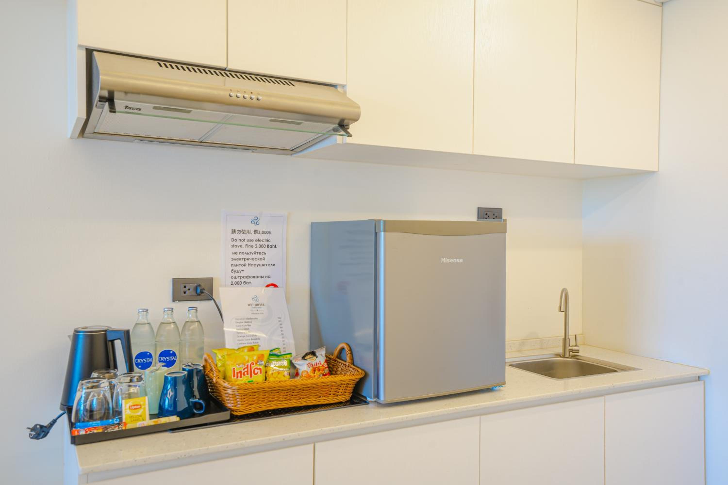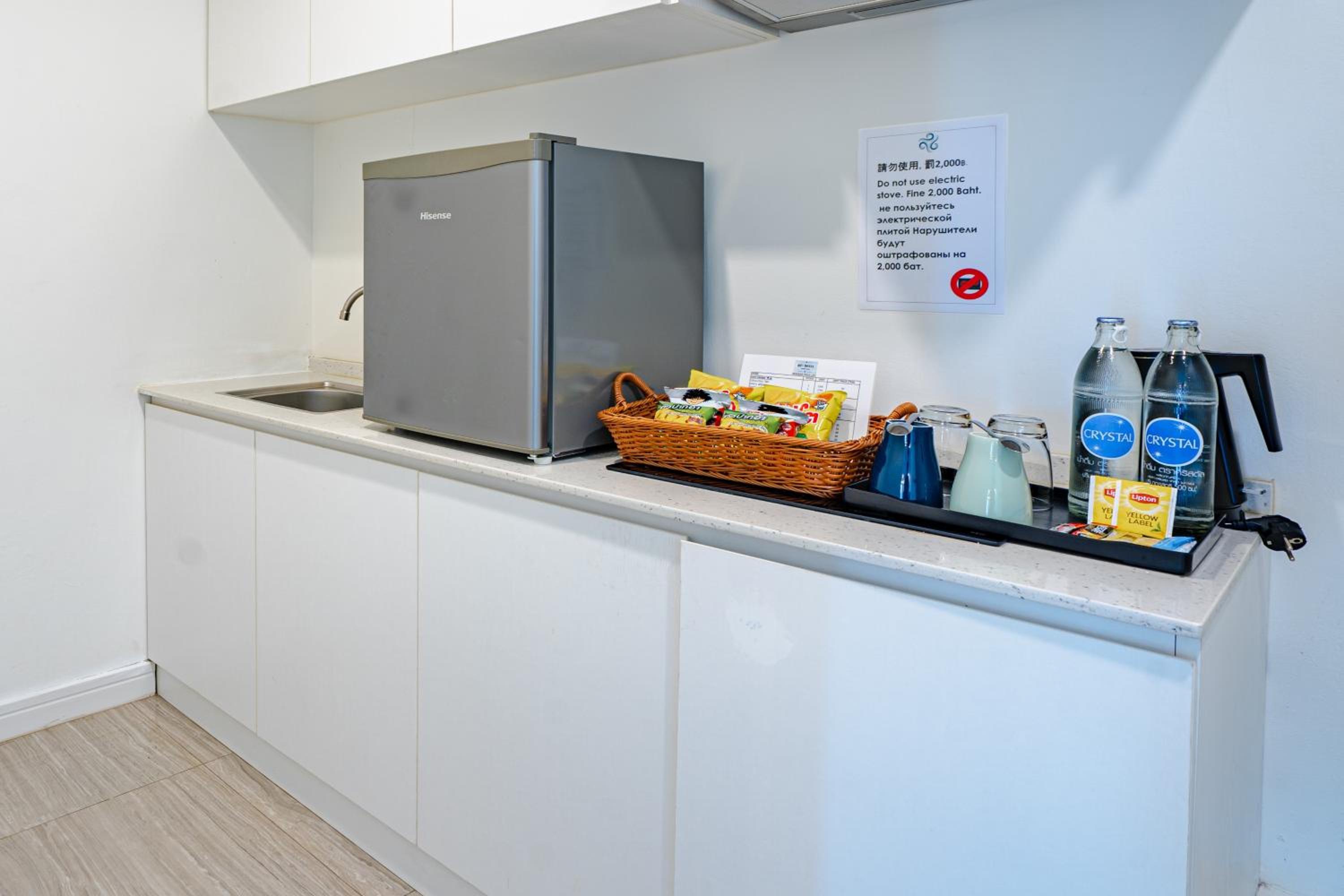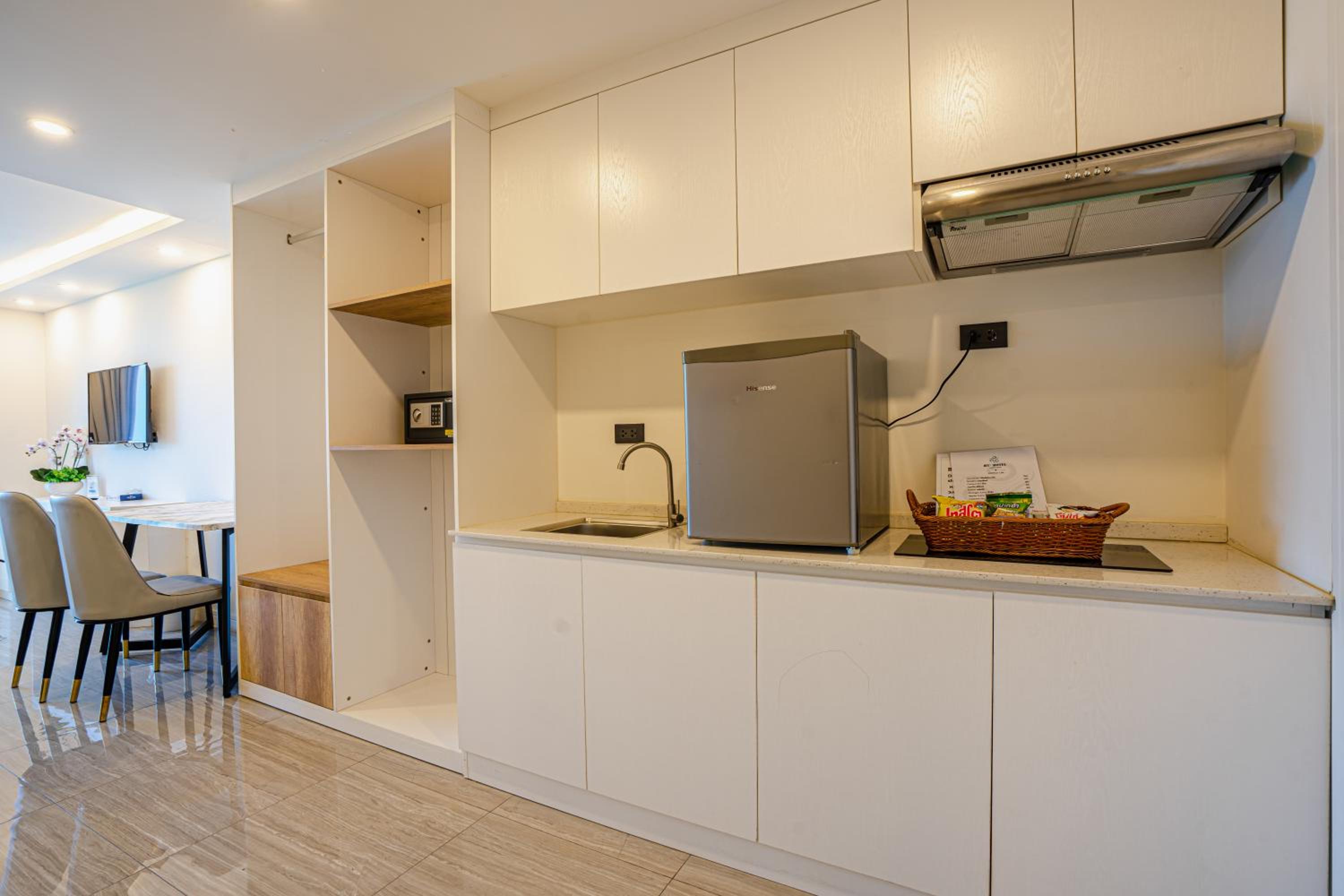 The kitchen could have been bigger and also allow guest to cook or at least have a microwave for those staying longer nights. Not sure if there was construction work happening but could not use the stairs to get to the front desk. They did not change the bed sheets for the 4-5 day we were there