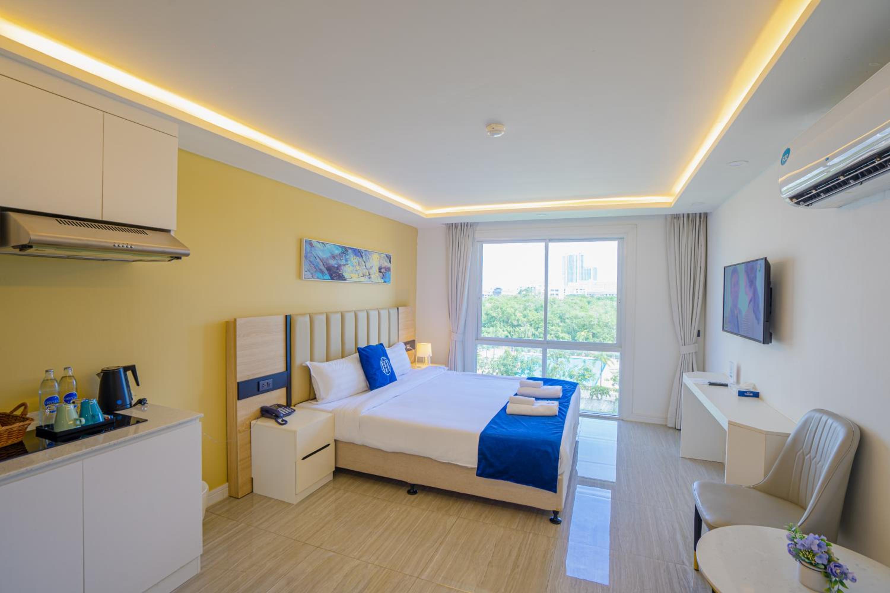 Store fine rom. Fikk bra med vann og snacks hver dag på rommet som var gratis. Kort vei til stranda, 200 m. Hyggelig personale