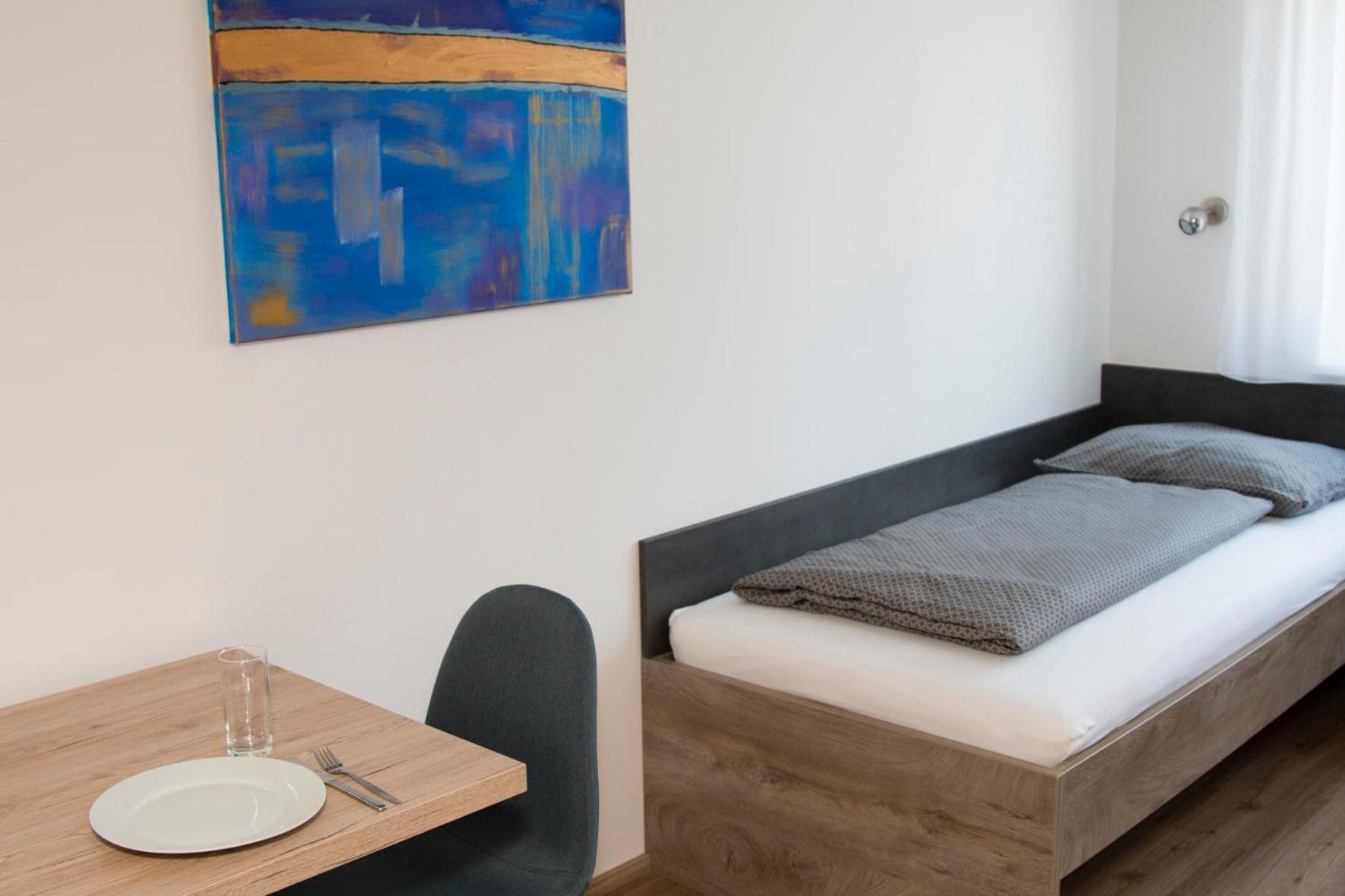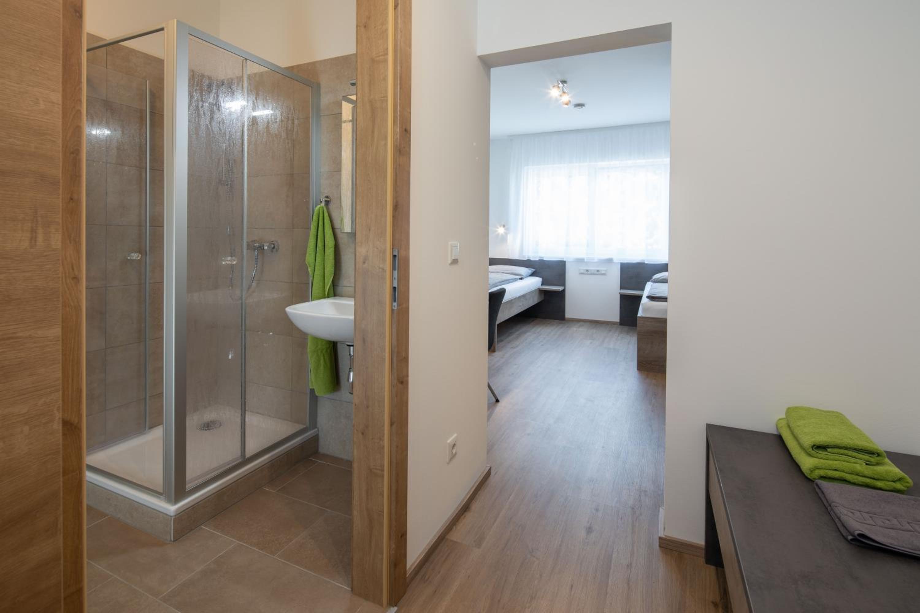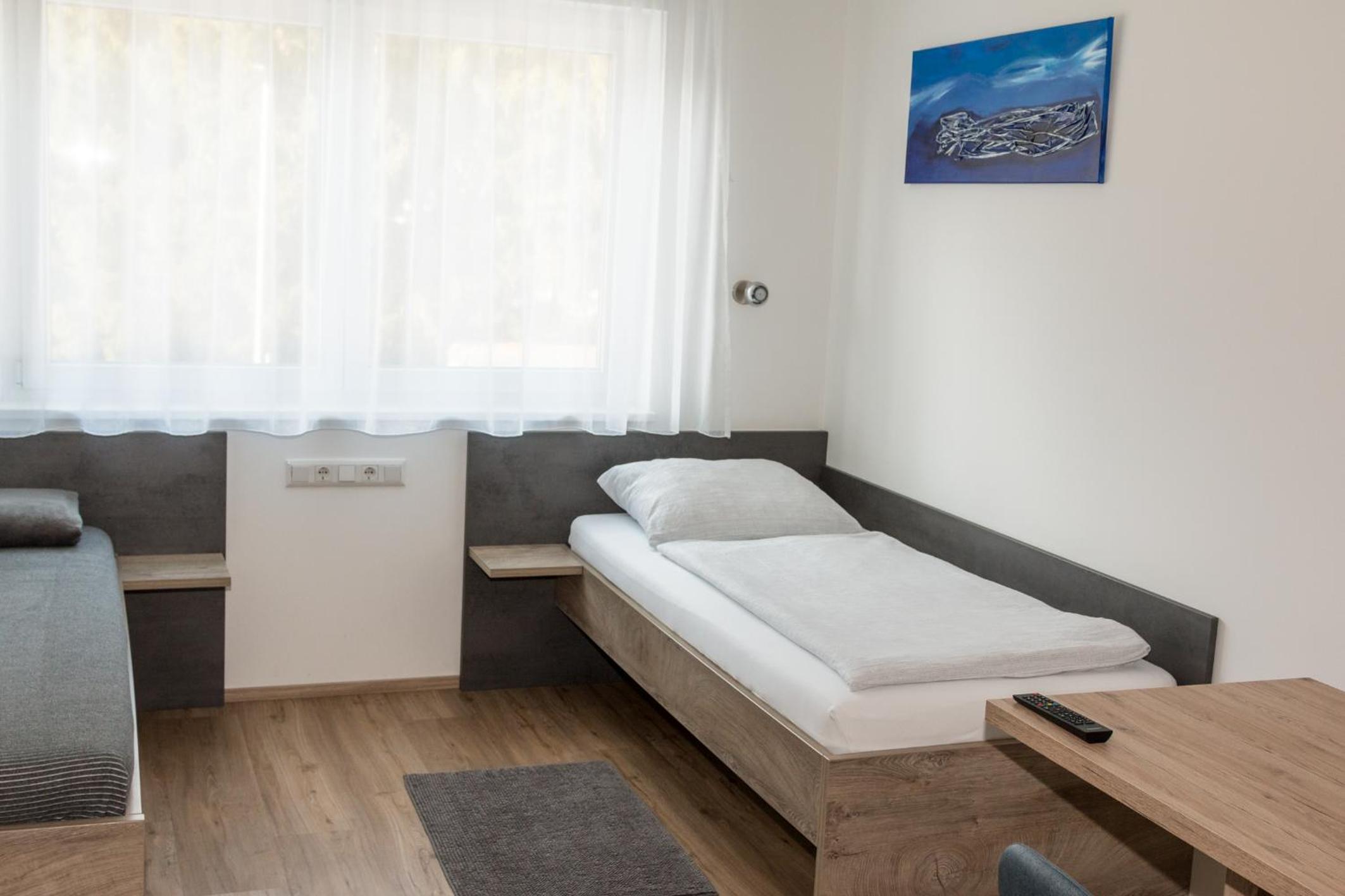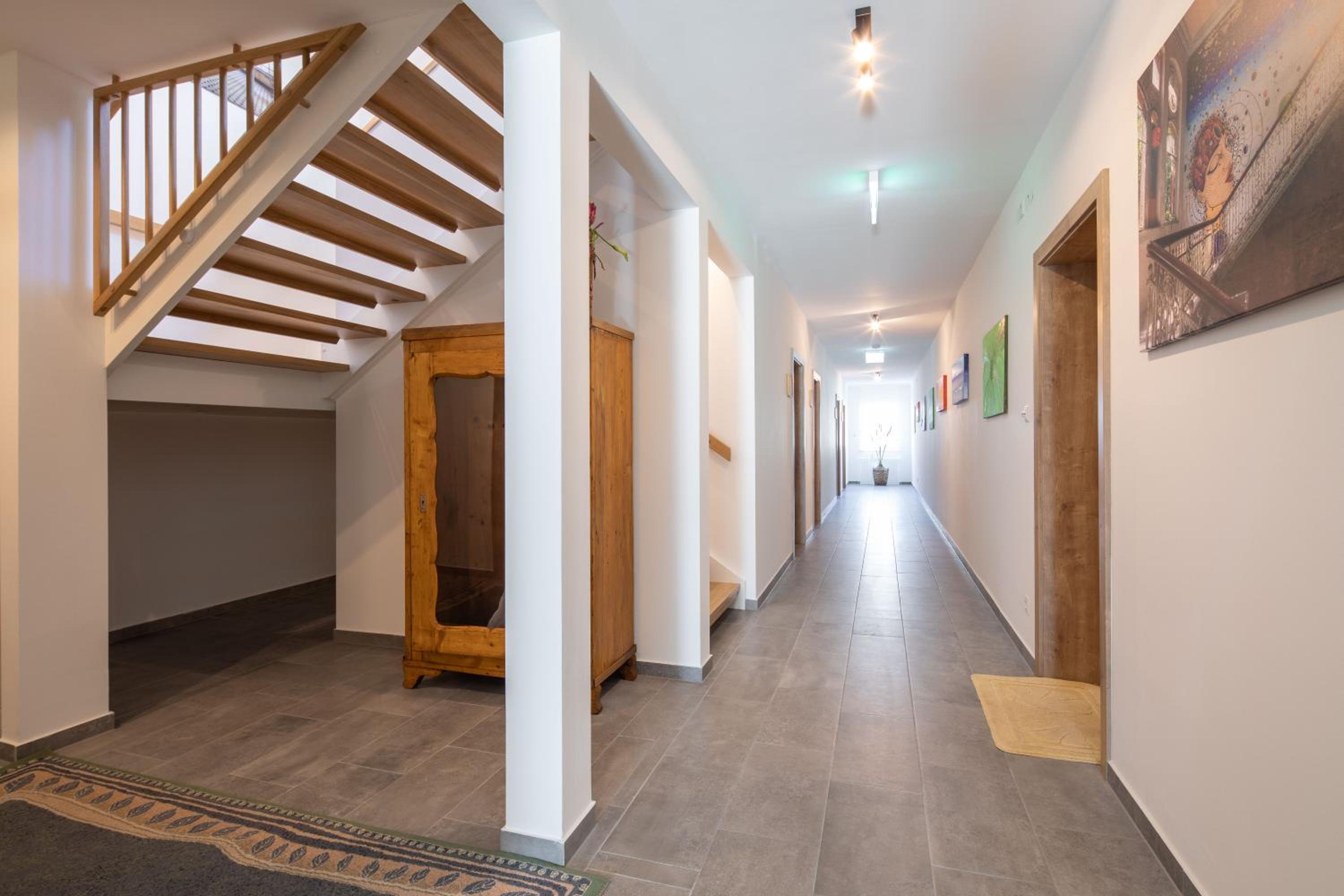 One of the rooms had view over the Kremsmünster Abbey. Silent place. The village centrum is 50 meters away. Not far from motorway, therefore suitable for transit travellers. We met the friendly owner family: at the checkin the friendly son of the owners helped us, at the checkout the husband, and the online communication by the wife, we felt comfortable. In the room was a sink, a fridge. At the common kitchen there is also a cofee automata and drink vending machine. On the walls decorations. Congratulation for making such a nice place!