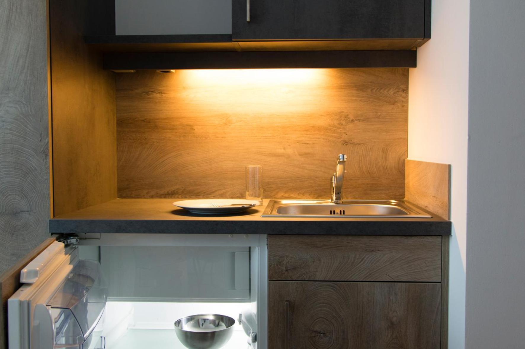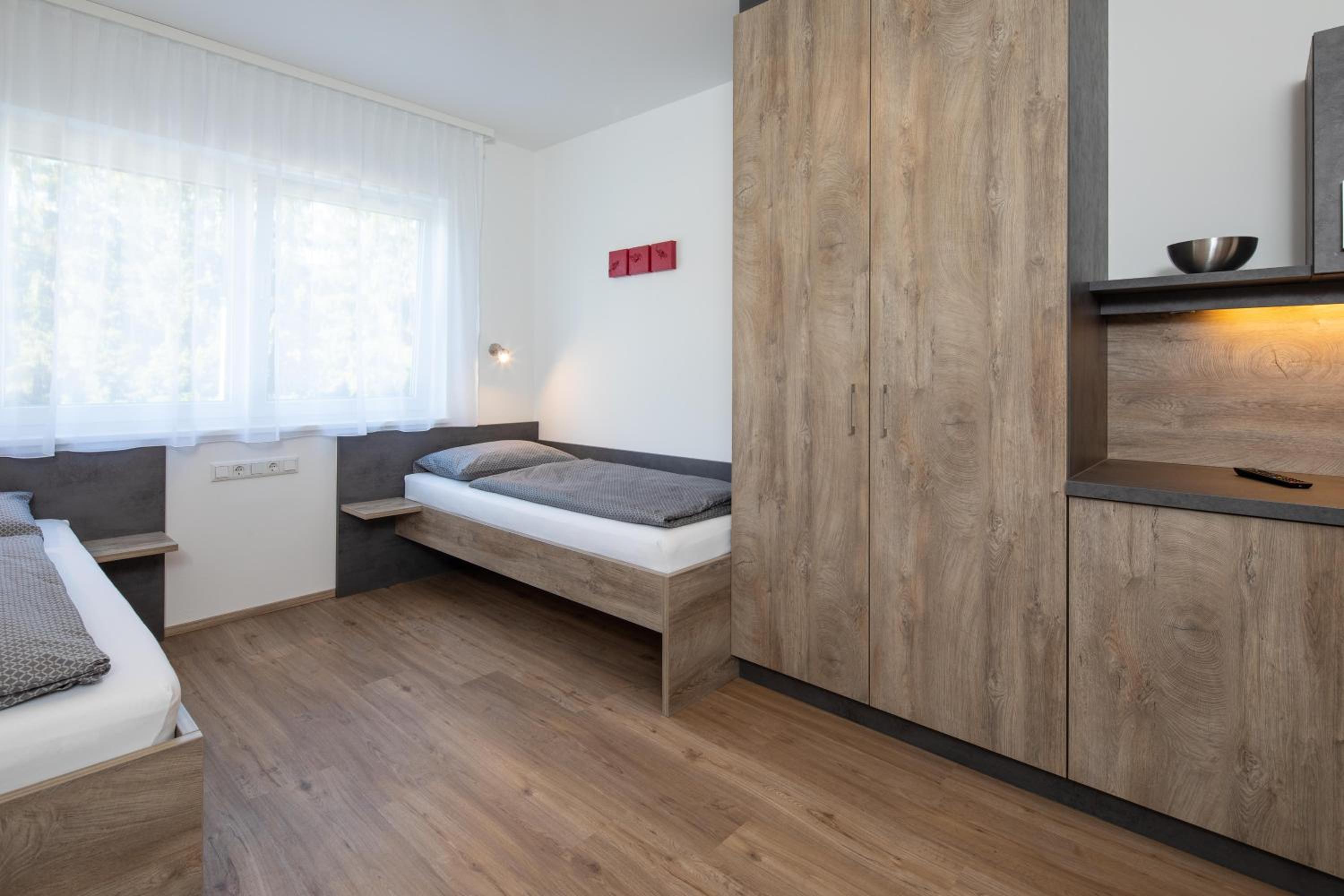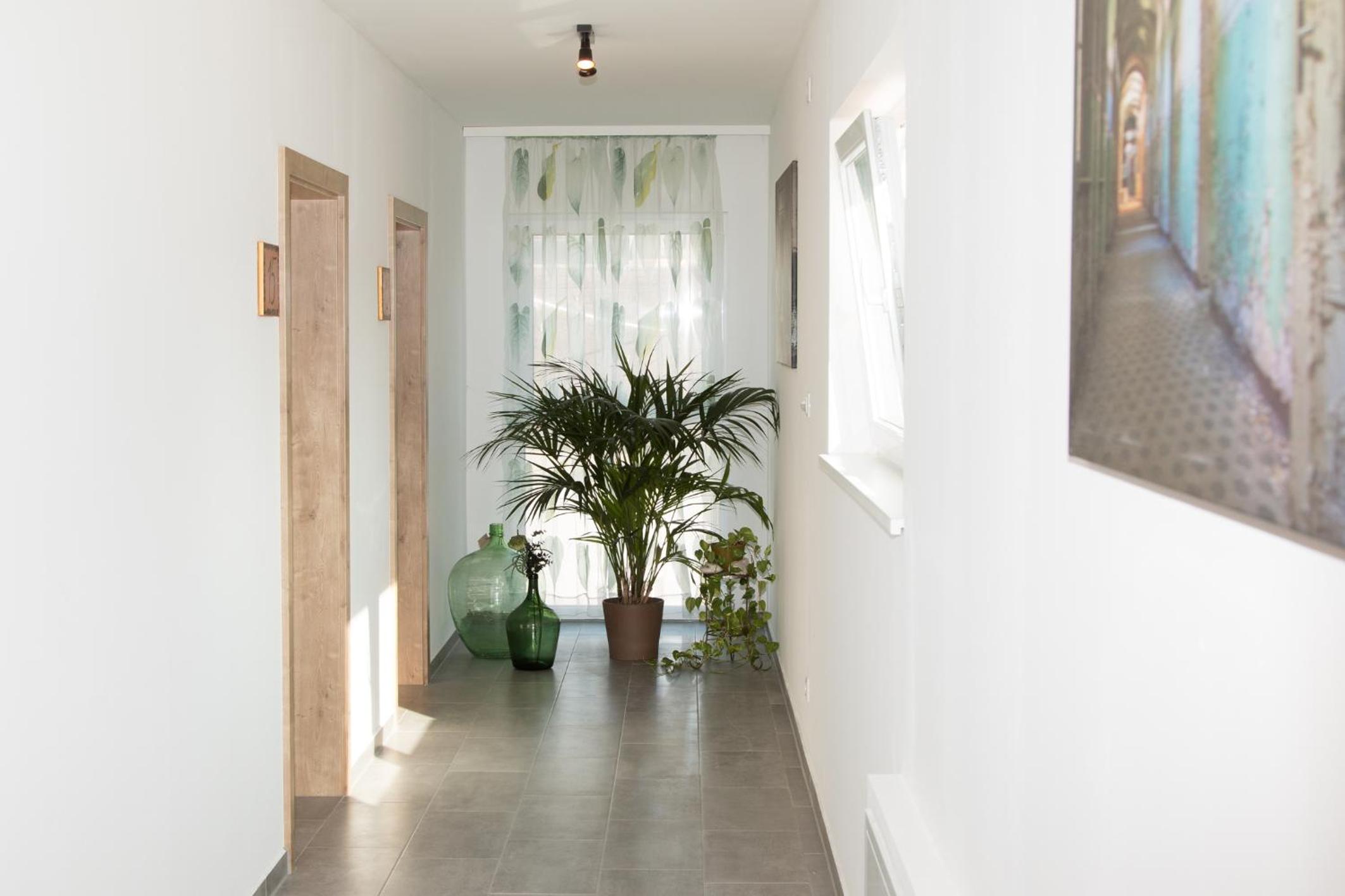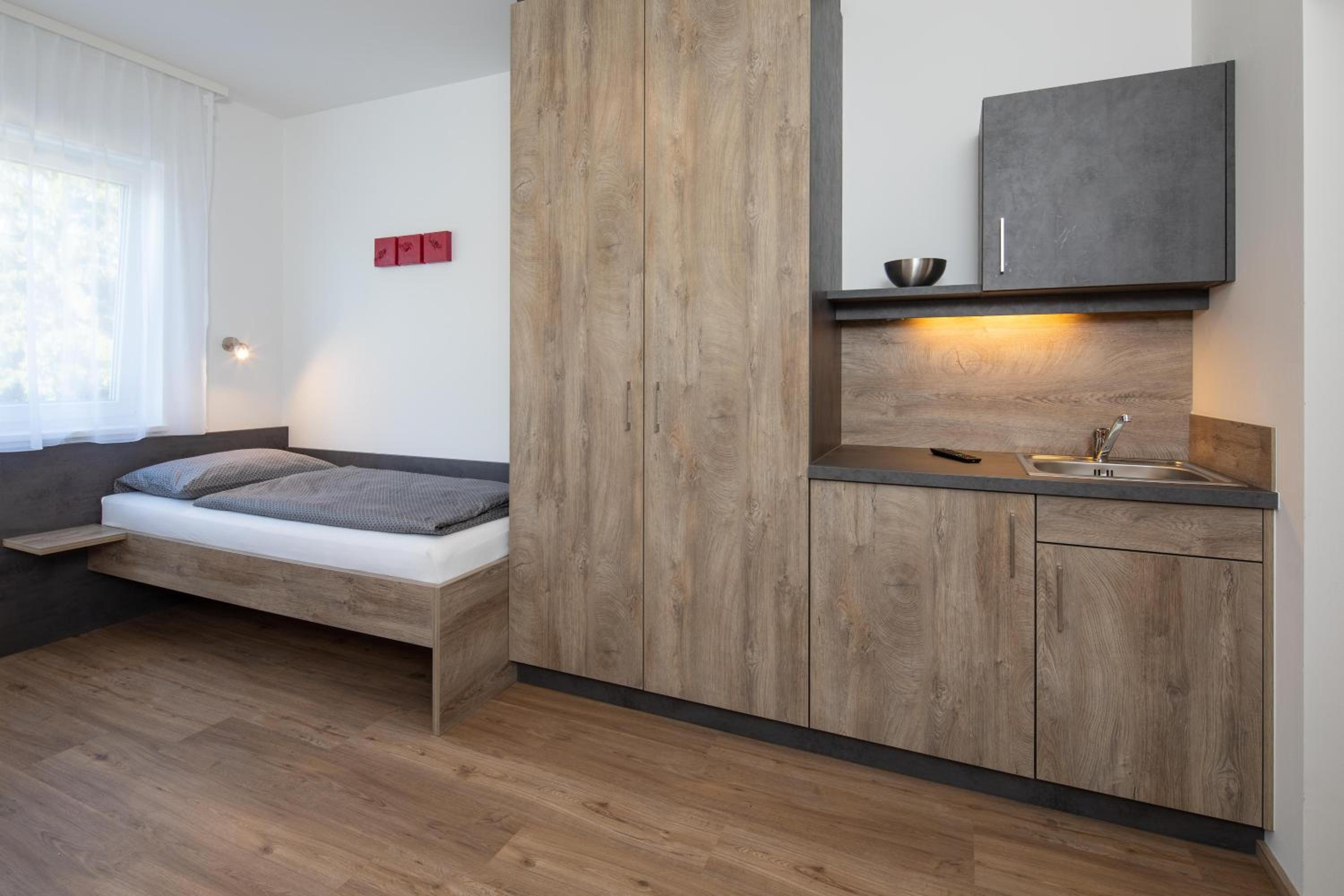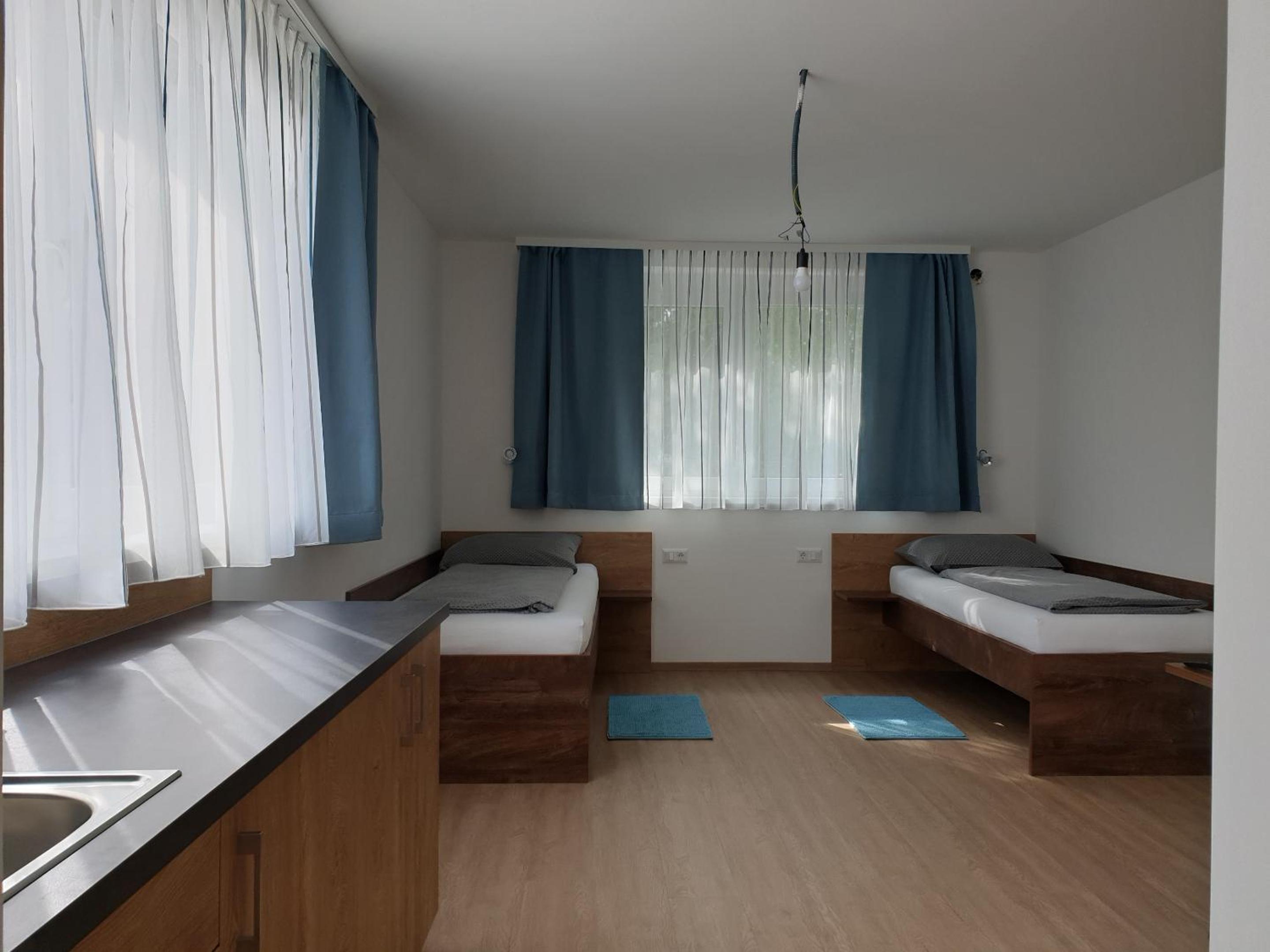 One of the rooms had view over the Kremsmünster Abbey. Silent place. The village centrum is 50 meters away. Not far from motorway, therefore suitable for transit travellers. We met the friendly owner family: at the checkin the friendly son of the owners helped us, at the checkout the husband, and the online communication by the wife, we felt comfortable. In the room was a sink, a fridge. At the common kitchen there is also a cofee automata and drink vending machine. On the walls decorations. Congratulation for making such a nice place!