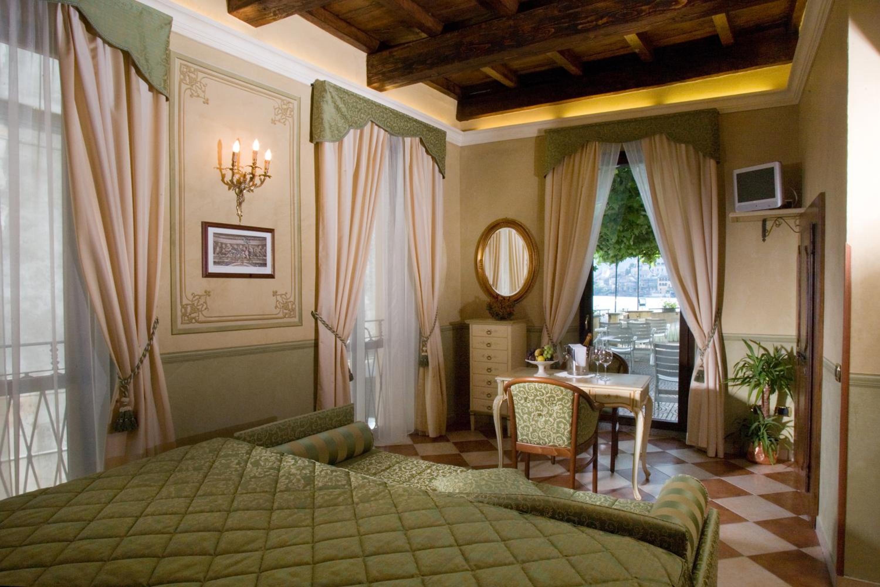 De liggen is magisch aan het Orta meer, aan een schilderachtig oud Marktpleintje, kort bij de veerbootjes die de oversteek maken naar het eilandje recht tegenover het hotel.