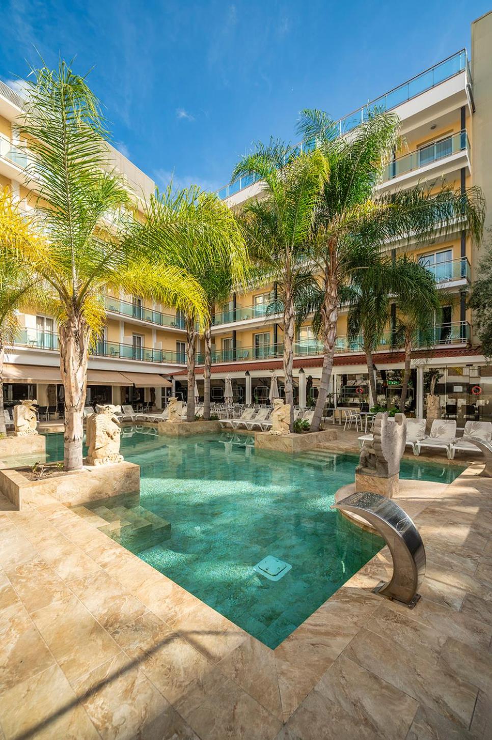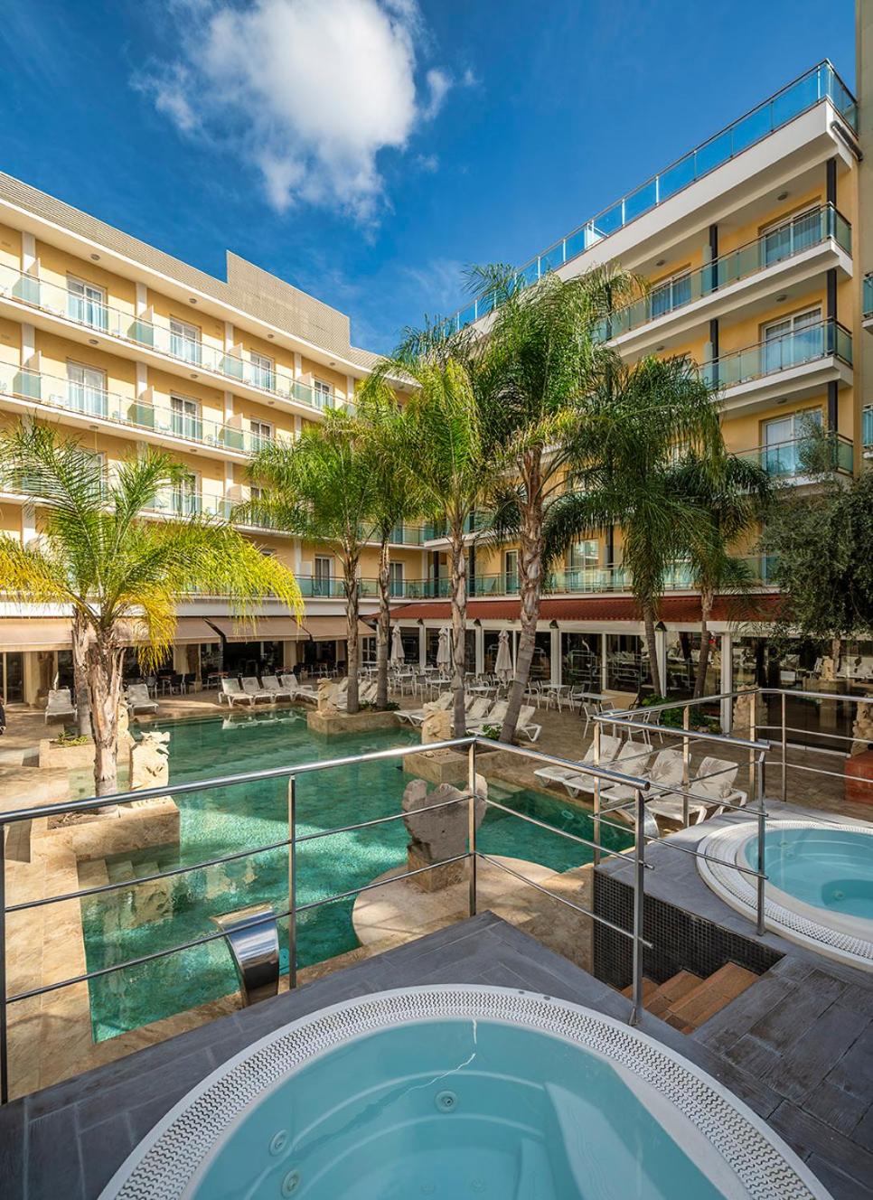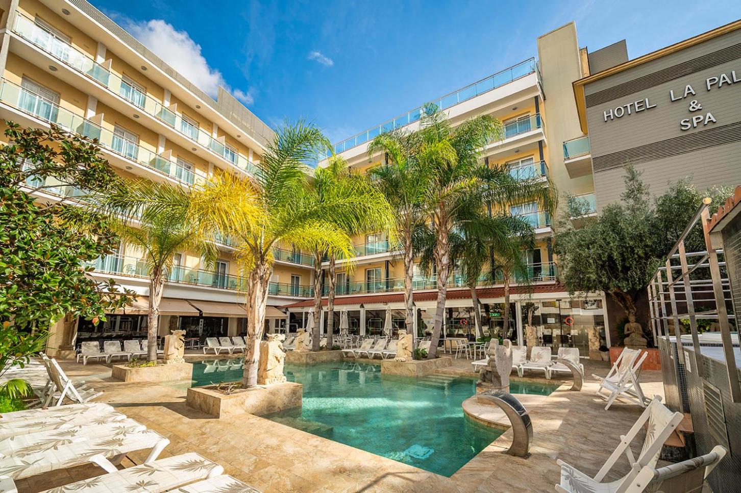 La Palmera boasts a Turkish bath, sauna, and an outdoor pool with hot tubs for ultimate relaxation.