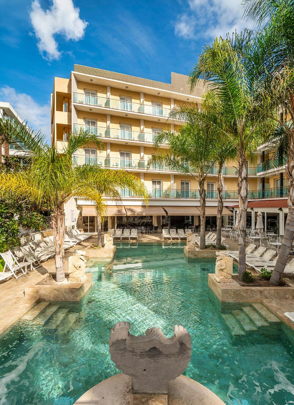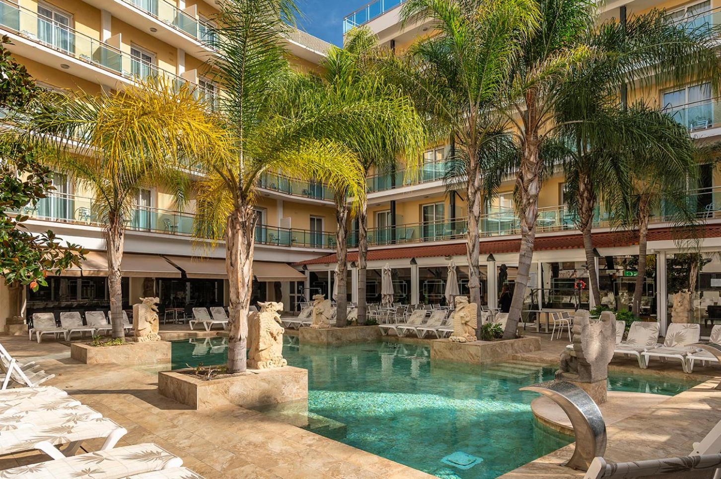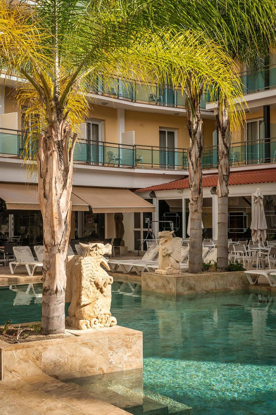 La Palmera boasts a Turkish bath, sauna, and an outdoor pool with hot tubs for ultimate relaxation.