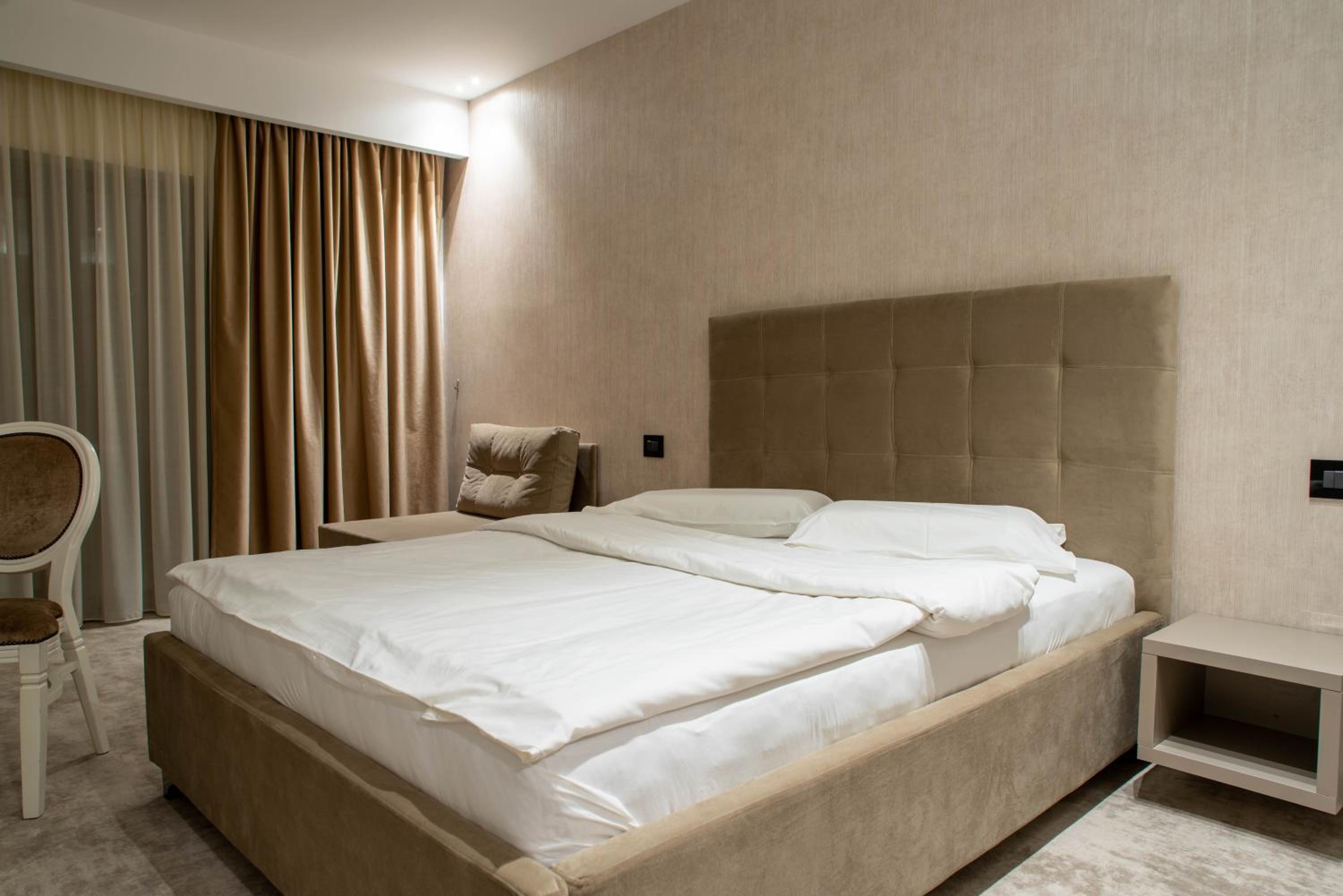 Desi am avut cazare 2 nopti, curatenia in camera nu s-a efectuat a 2-a zi, nu am primit gel de dus si prosoape pentru ziua 2. Am incercat sa sun la receptie de pe telefonul din camera, dar numerele salvate nu functioneaza (si nu puteam cobori in costum de baie ud la receptie...). Sa nu uitam ca e hotel de 4 stele.