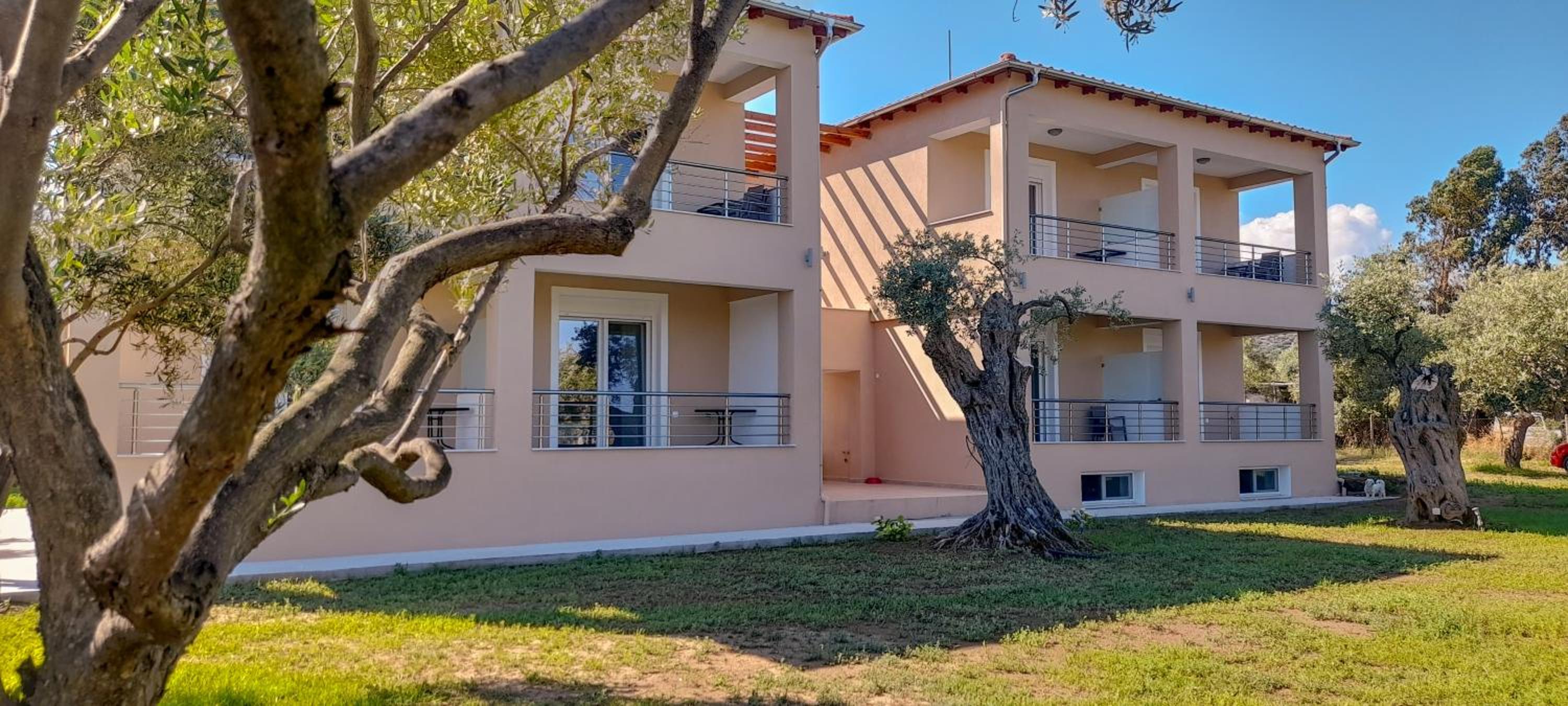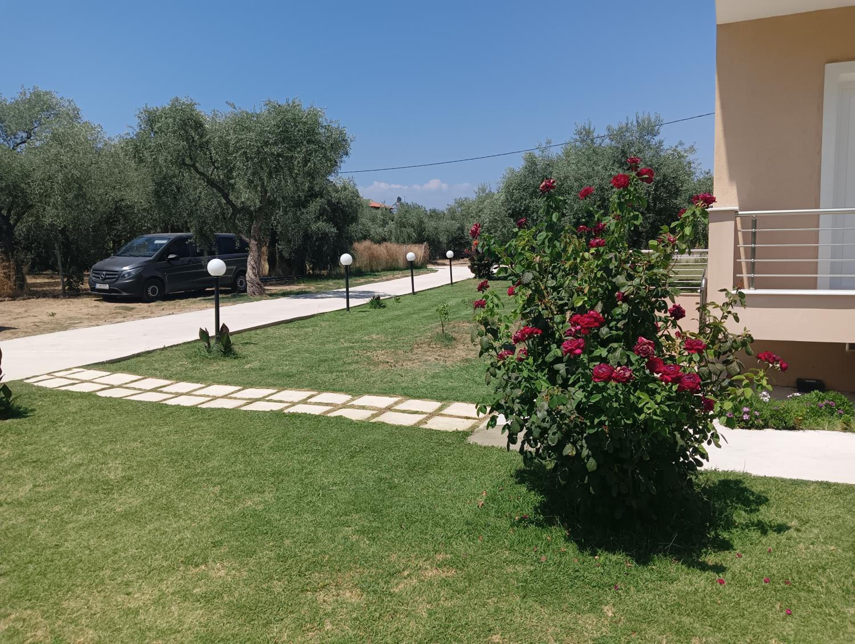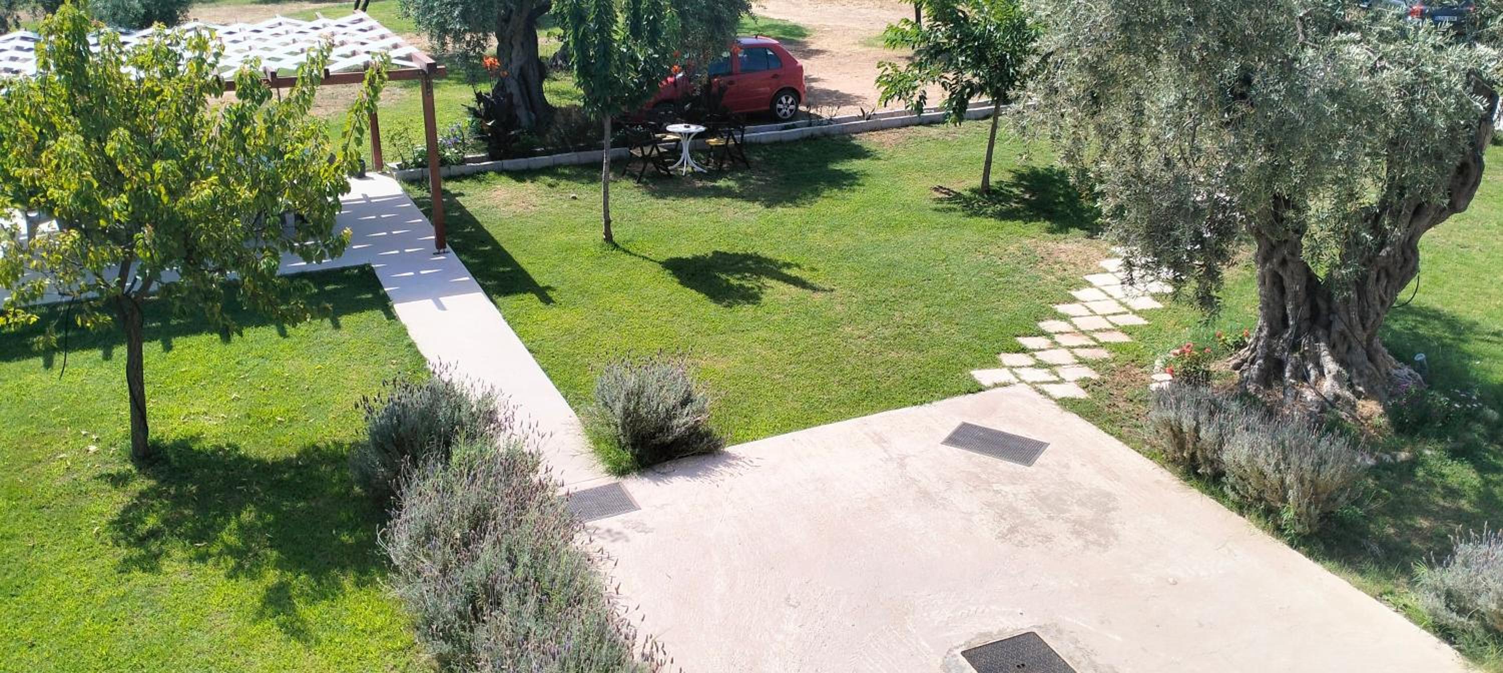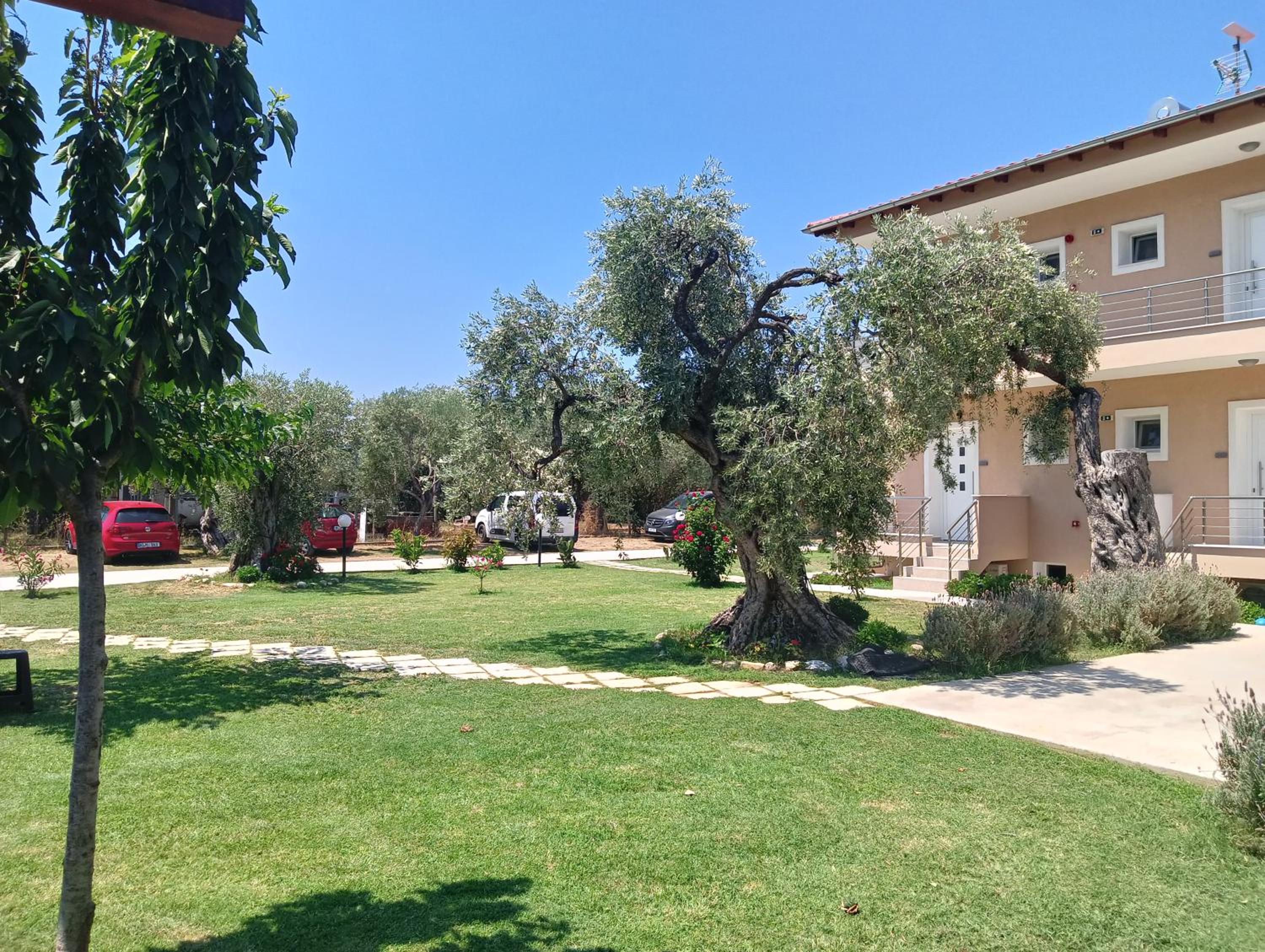 This amazing estate is located in the middle of the beautiful olive trees, 5 min walk to a nice beach, 5 min walk to a big market. The apartments are nice, big enough, big terrace, very clean. You can also use a nice patio for barbecue. It is peaceful in the nature, with lots of flowers as well. The hosts are kind and very helpful and they produce their own olive oil which is really delicious and you can buy it from them to take home. We had a great time here! Thanks to the host again!