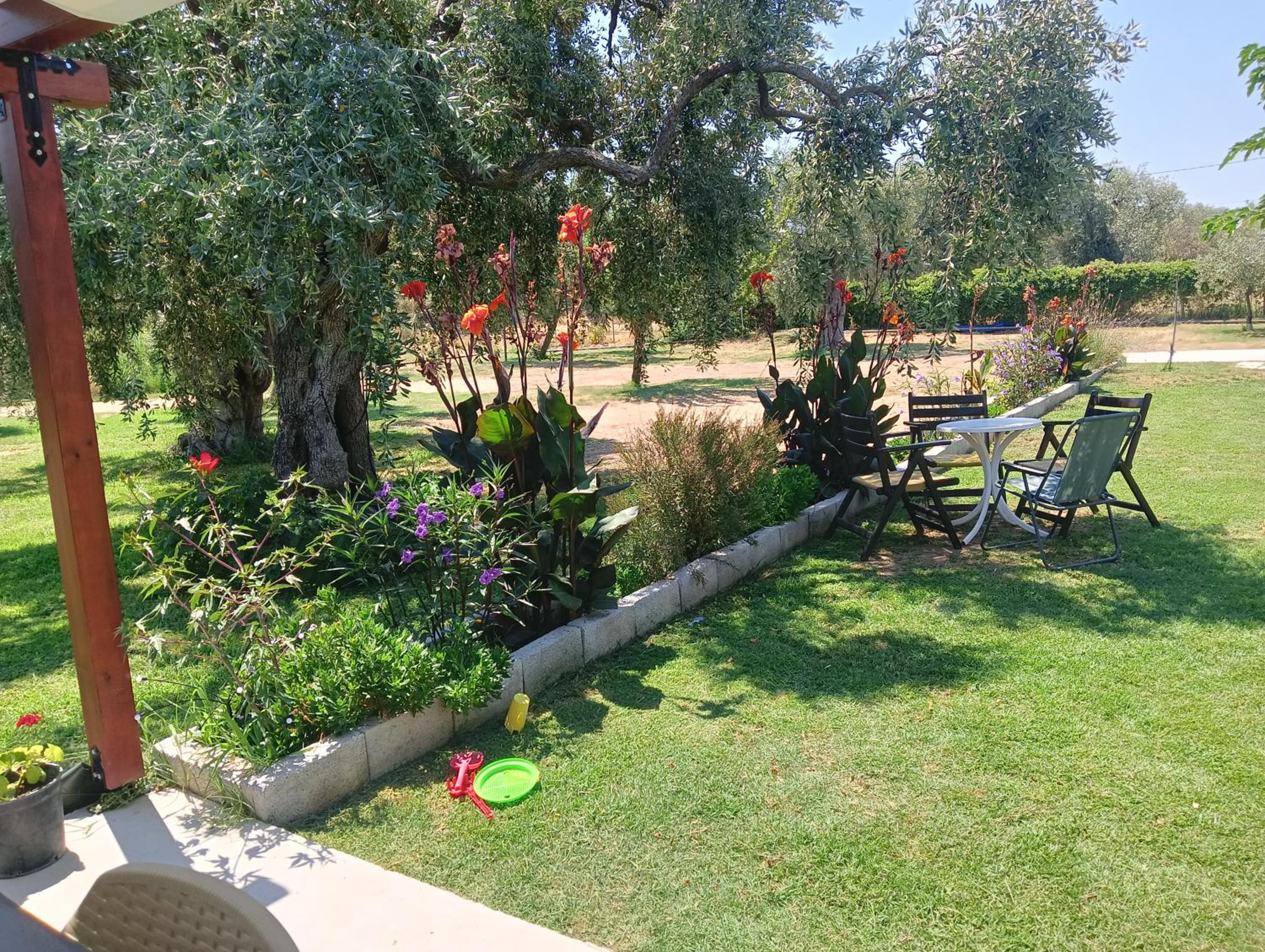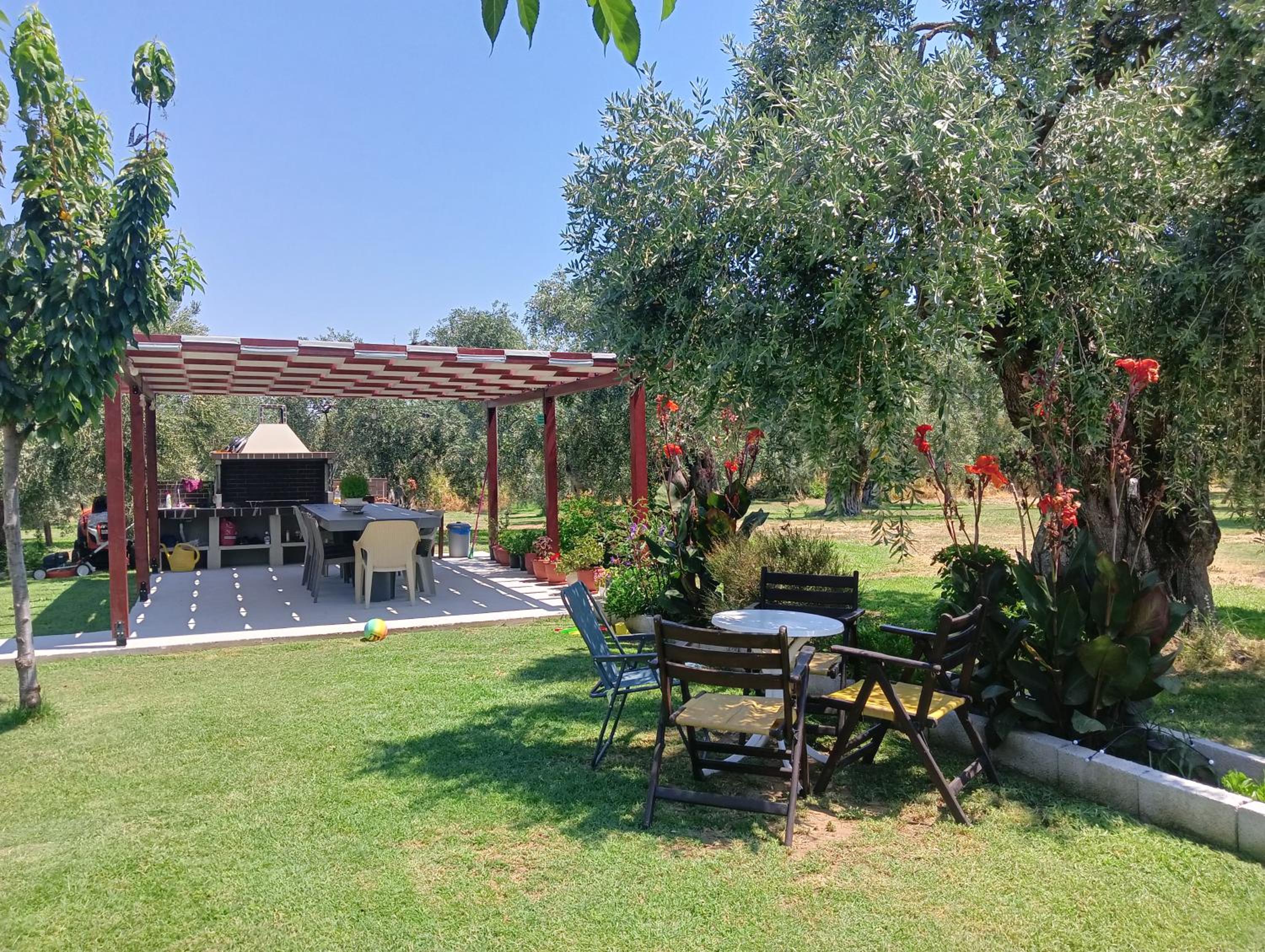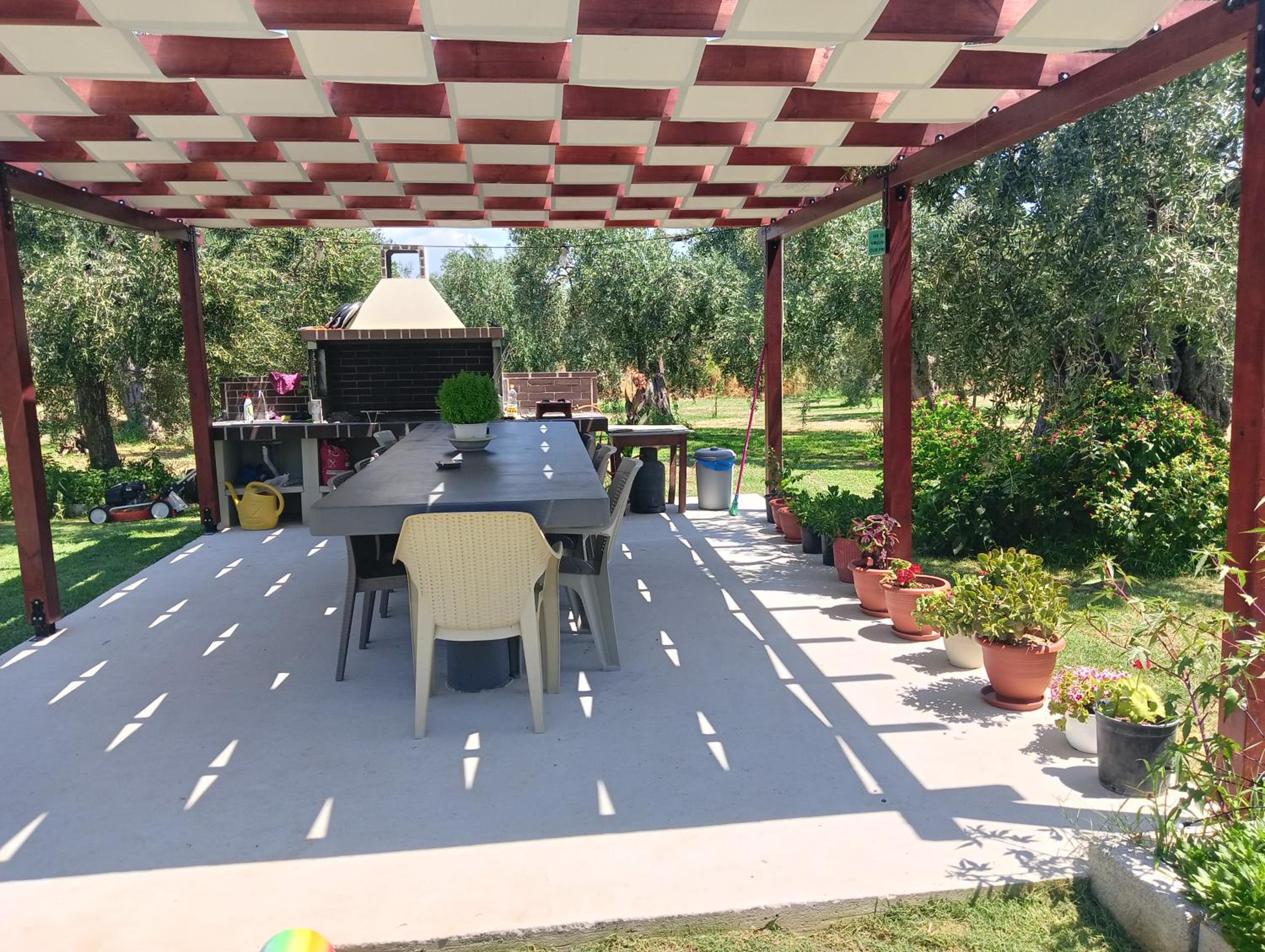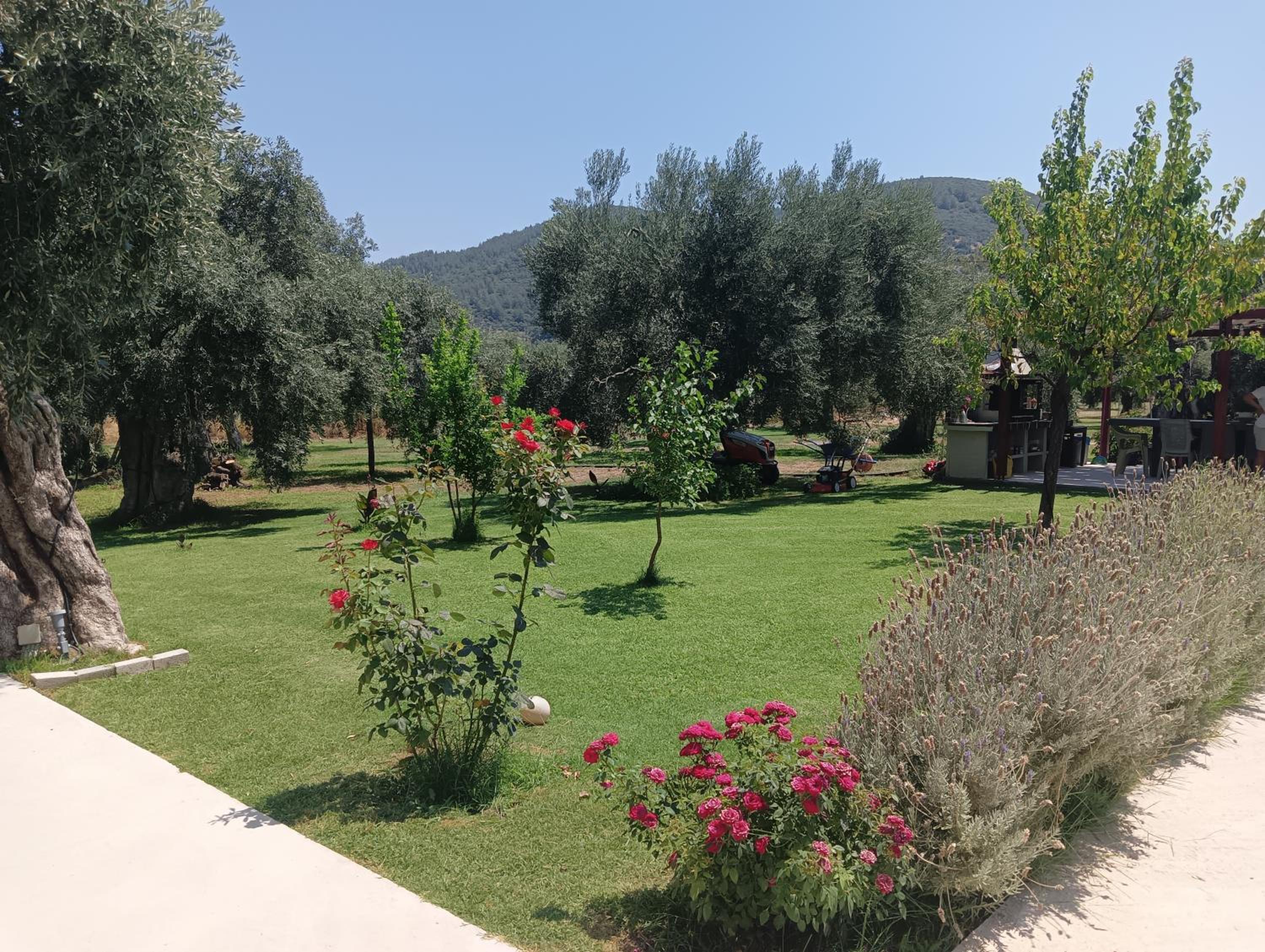 This amazing estate is located in the middle of the beautiful olive trees, 5 min walk to a nice beach, 5 min walk to a big market. The apartments are nice, big enough, big terrace, very clean. You can also use a nice patio for barbecue. It is peaceful in the nature, with lots of flowers as well. The hosts are kind and very helpful and they produce their own olive oil which is really delicious and you can buy it from them to take home. We had a great time here! Thanks to the host again!