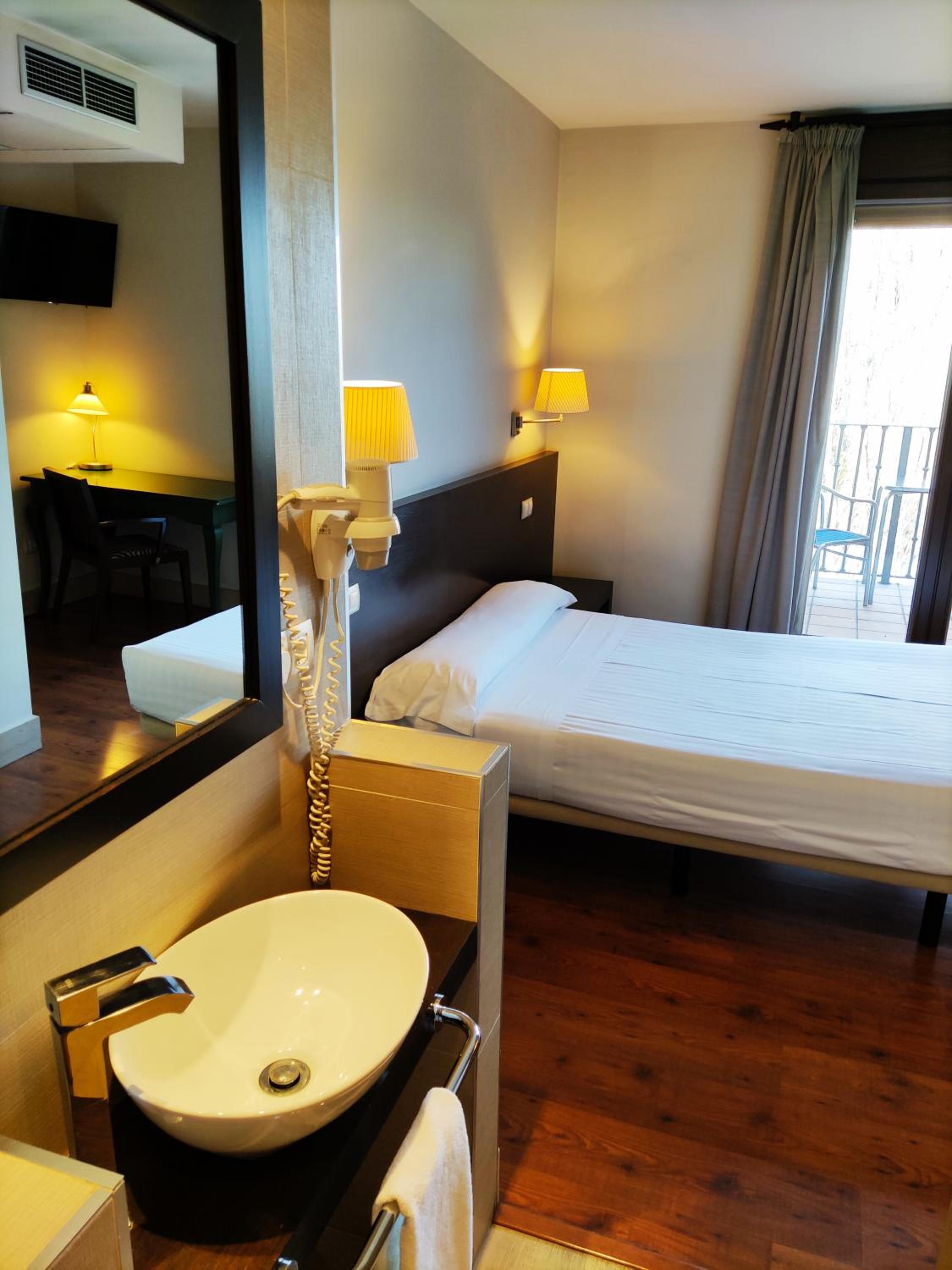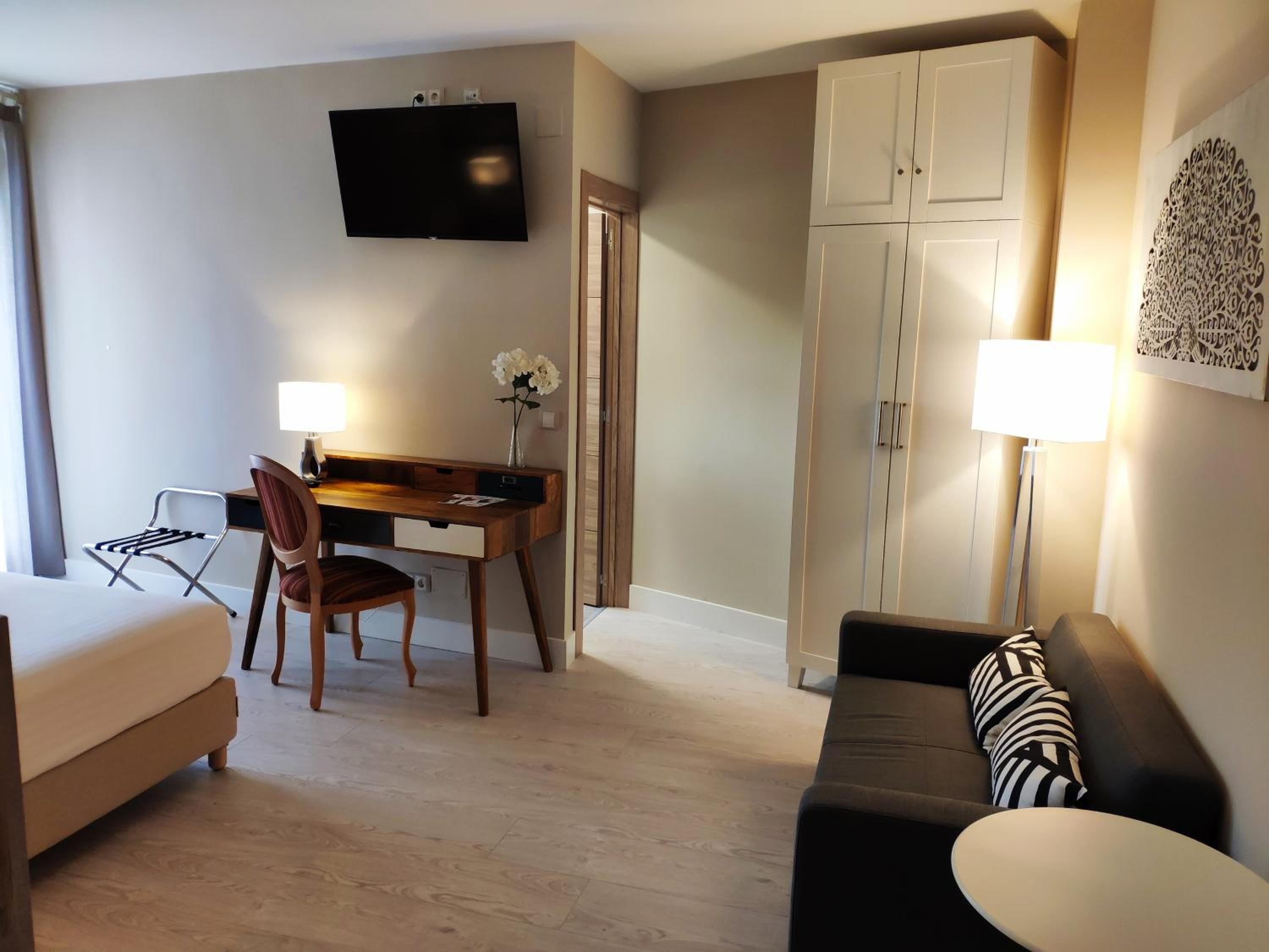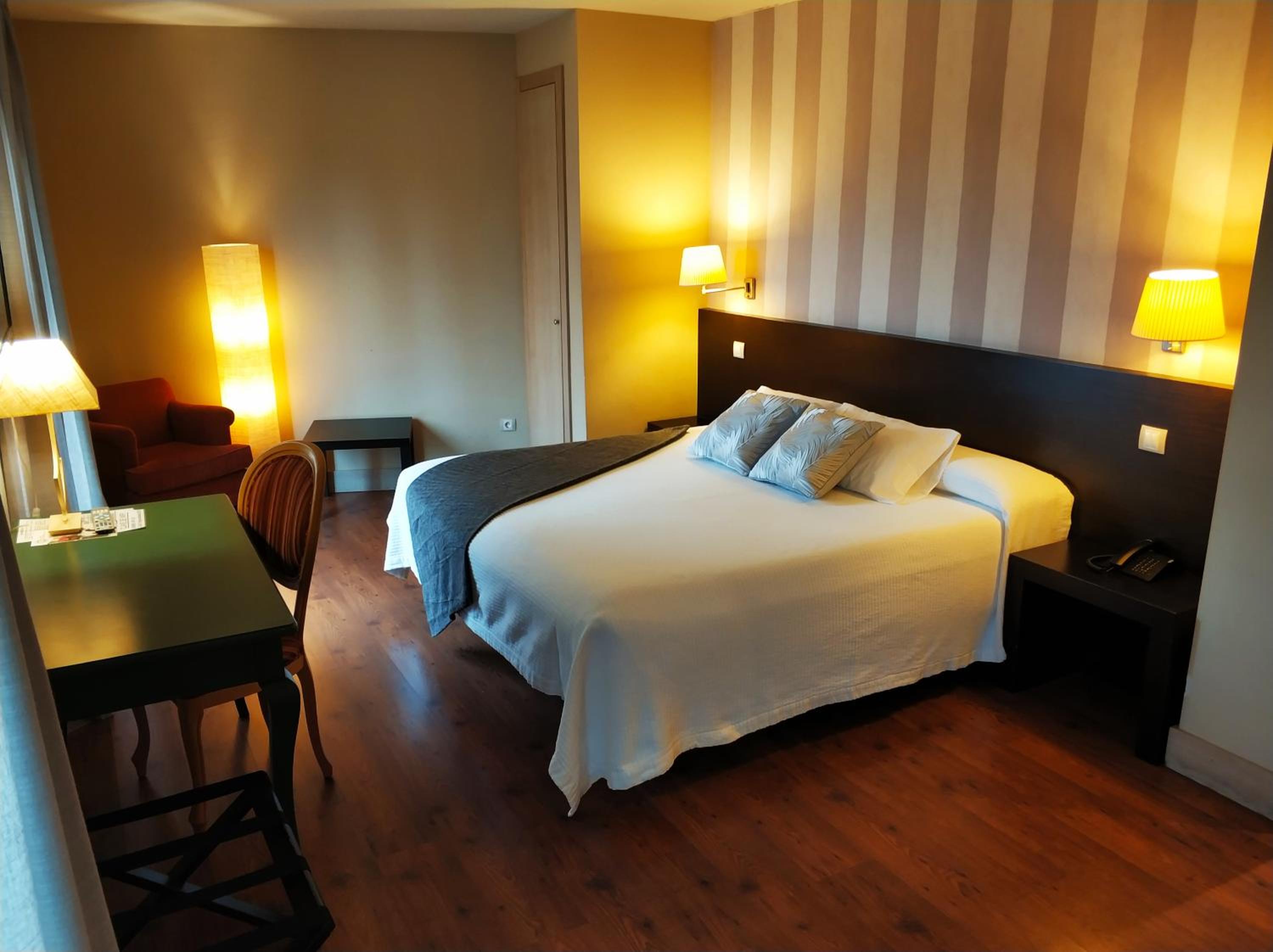 The Hotel Puerta del Arco features elegant rooms with hydromassage showers or baths, wooden floors, and dark wooden furniture. Guests can enjoy free Wi-Fi, flat-screen TVs, and some rooms even offer a terrace with views of the River Duero and surrounding countryside.