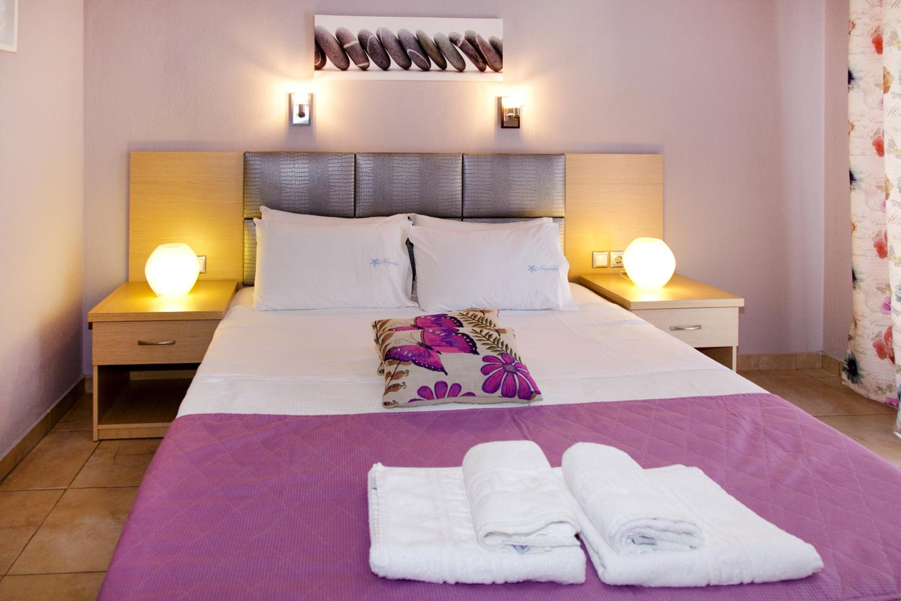 Хареса ни местоположението, близо да центъра със заведенията и магазинчетата. Горе долу по средата на двата плажа. Персонала беше много отзивчив и любезен. Хареса ни гледката