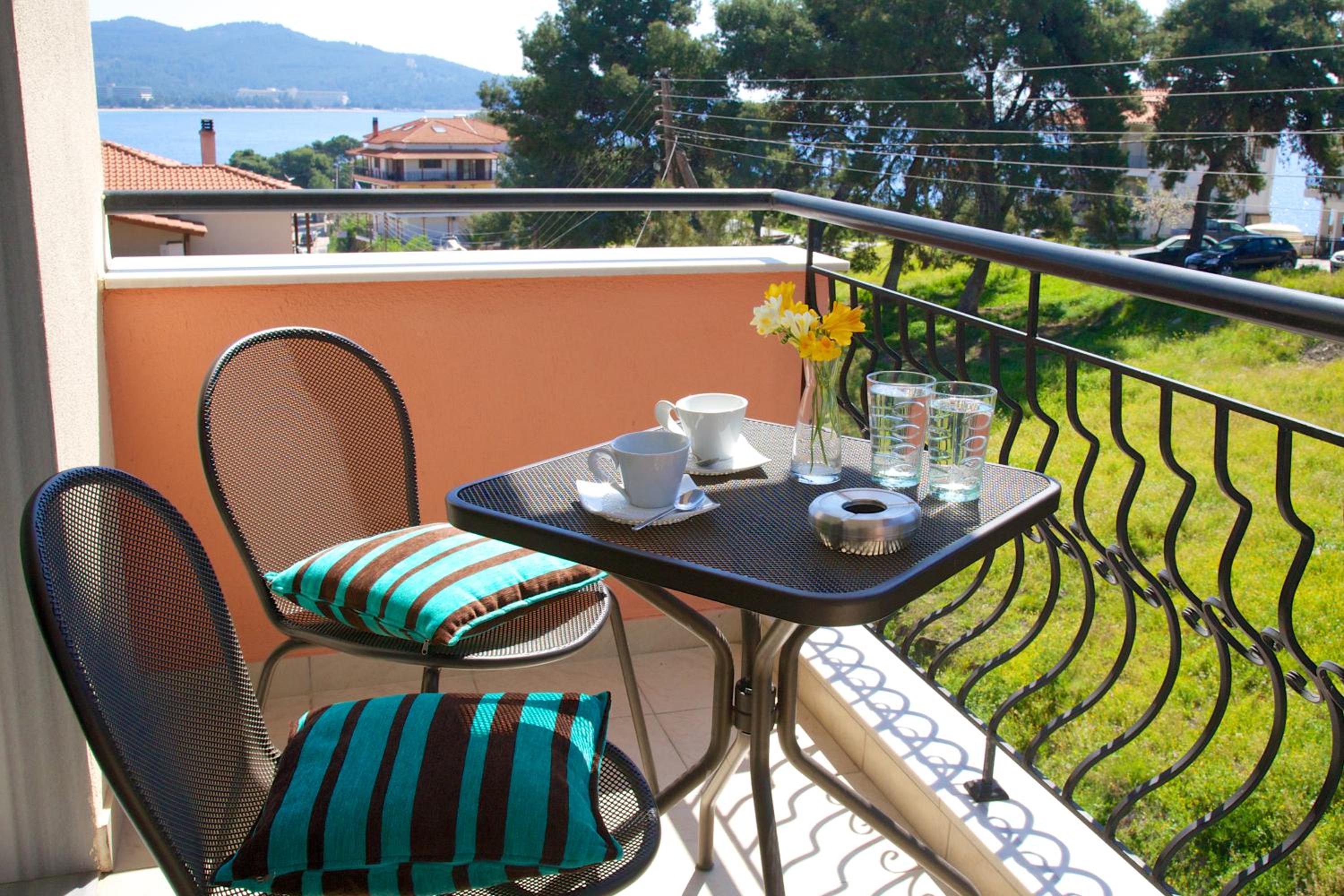 Kaplanis House in Neos Marmaras offers modern rooms equipped with a flat screen TV, DVD player, minibar, and air conditioning for a comfortable stay. The uniquely decorated rooms also feature a balcony with stunning views and a private bathroom with a hairdryer.