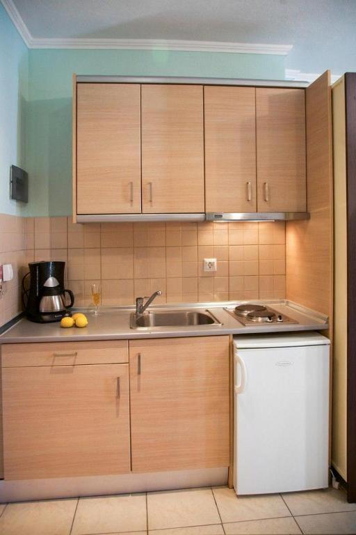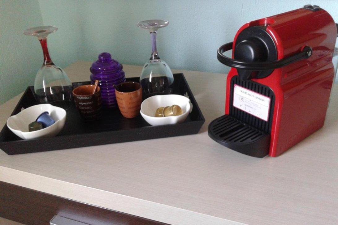 Не работает плита, поэтому приготовить еду мы не смогли. Чайника в номере нет. Капсулы для кофе за дополню плату.