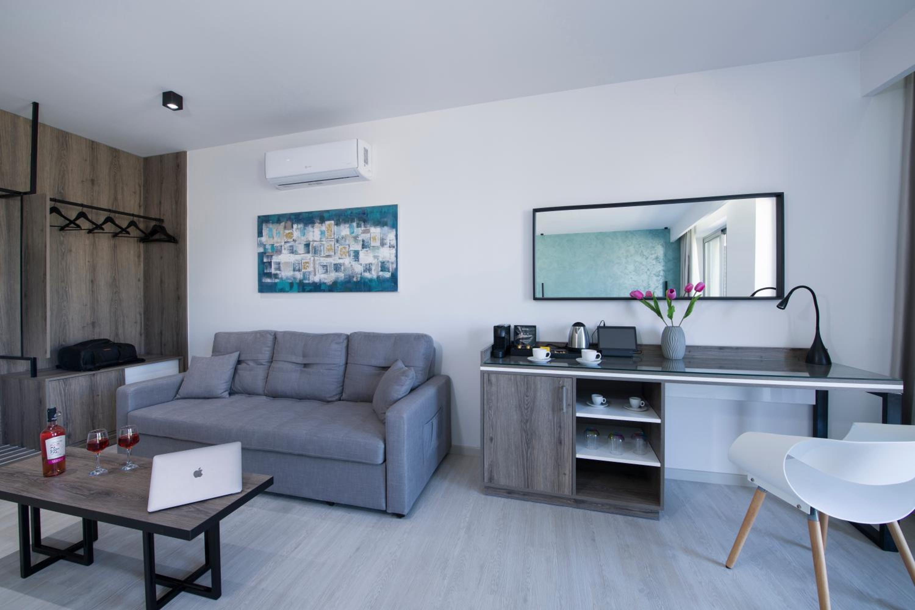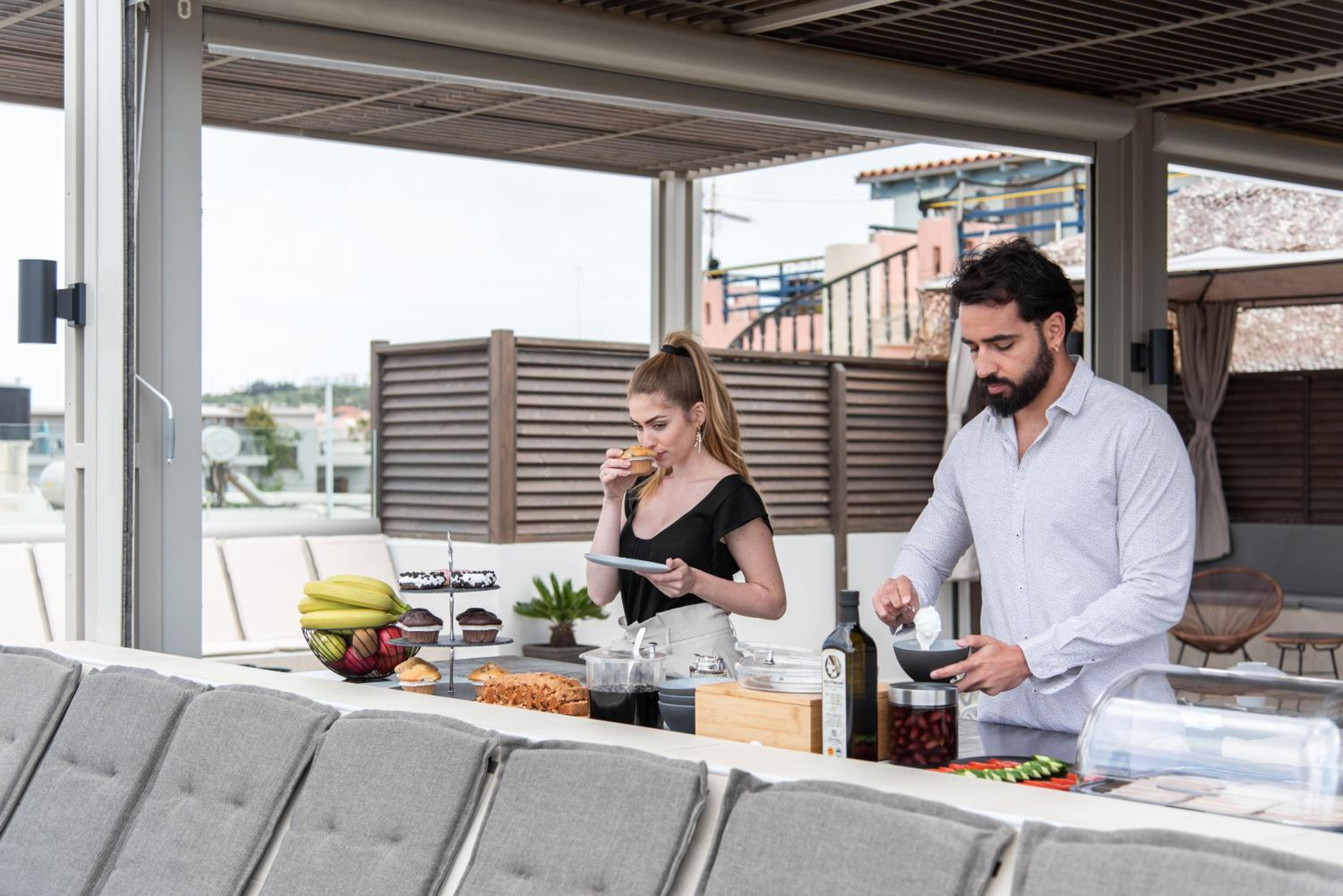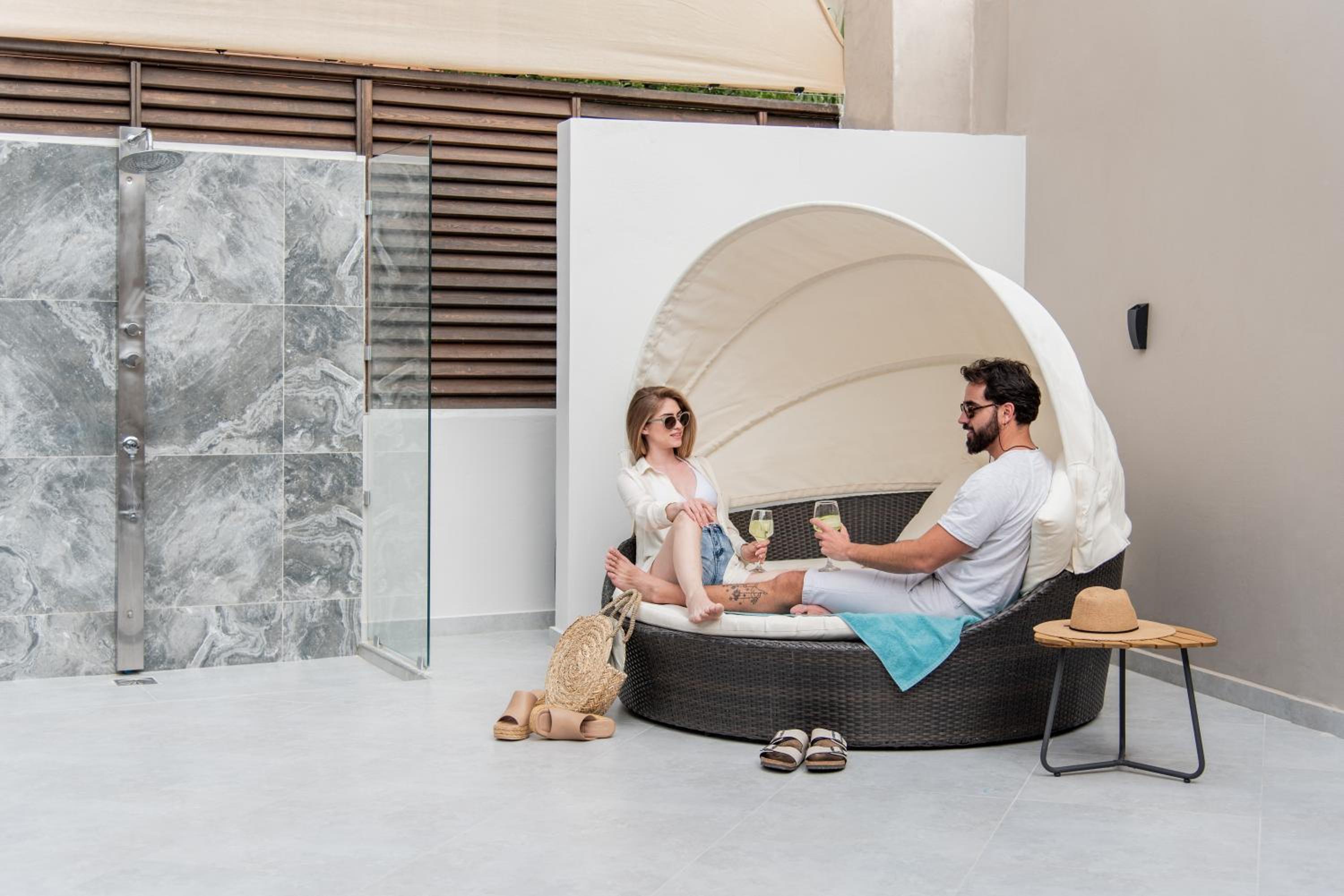 We spent 8 nights at X Suites in Agia Marina, Crete, staying in the Nefeli room—and it was a truly enjoyable experience. The room was immaculately clean, modern, and beautifully designed, with a spacious outdoor terrace facing the main road and a private jacuzzi that quickly became our favorite feature. Especially on windy days when swimming in the sea was prohibited by strict lifeguards, the jacuzzi was a perfect alternative for relaxation.
