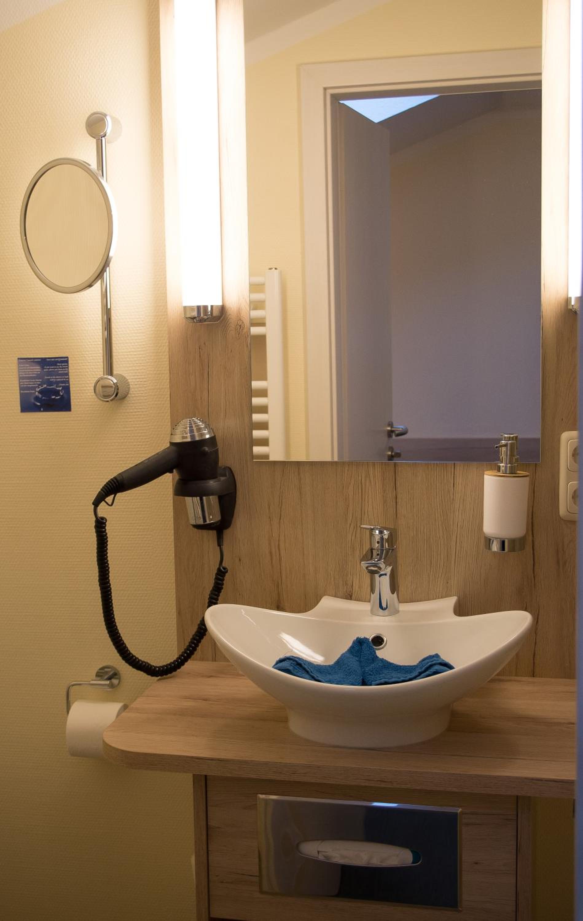 Das Personal ist sehr freundlich und aufmerksam. Unser Hund war auch willkommen. Der Frühstücksraum ist gemütlich und maritim eingerichtet. Am besten hat uns der kleine Wintergarten in unserem Zimmer gefallen.