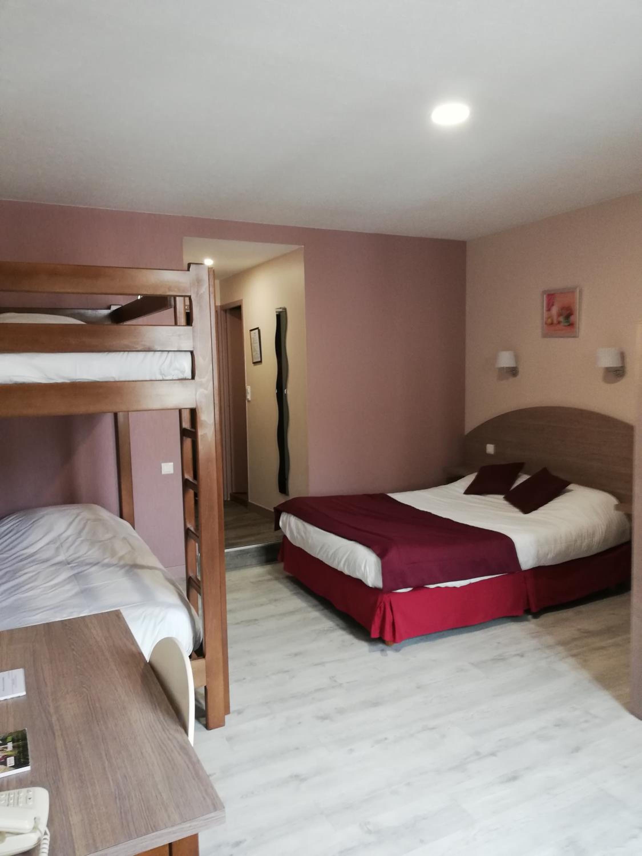 Nous avons séjourné dans une chambre familiale parfaitement aménagée pour 4 personnes. L’espace était bien pensé, confortable et fonctionnel, avec suffisamment de rangement pour tous. Les lits étaient très confortables et tout était impeccablement. Le personnel a été accueillant et professionnel. Le petit déjeuner était correcte avec des produite frais. Très bon rapport qualité-prix, nous reviendrons sans hésiter !