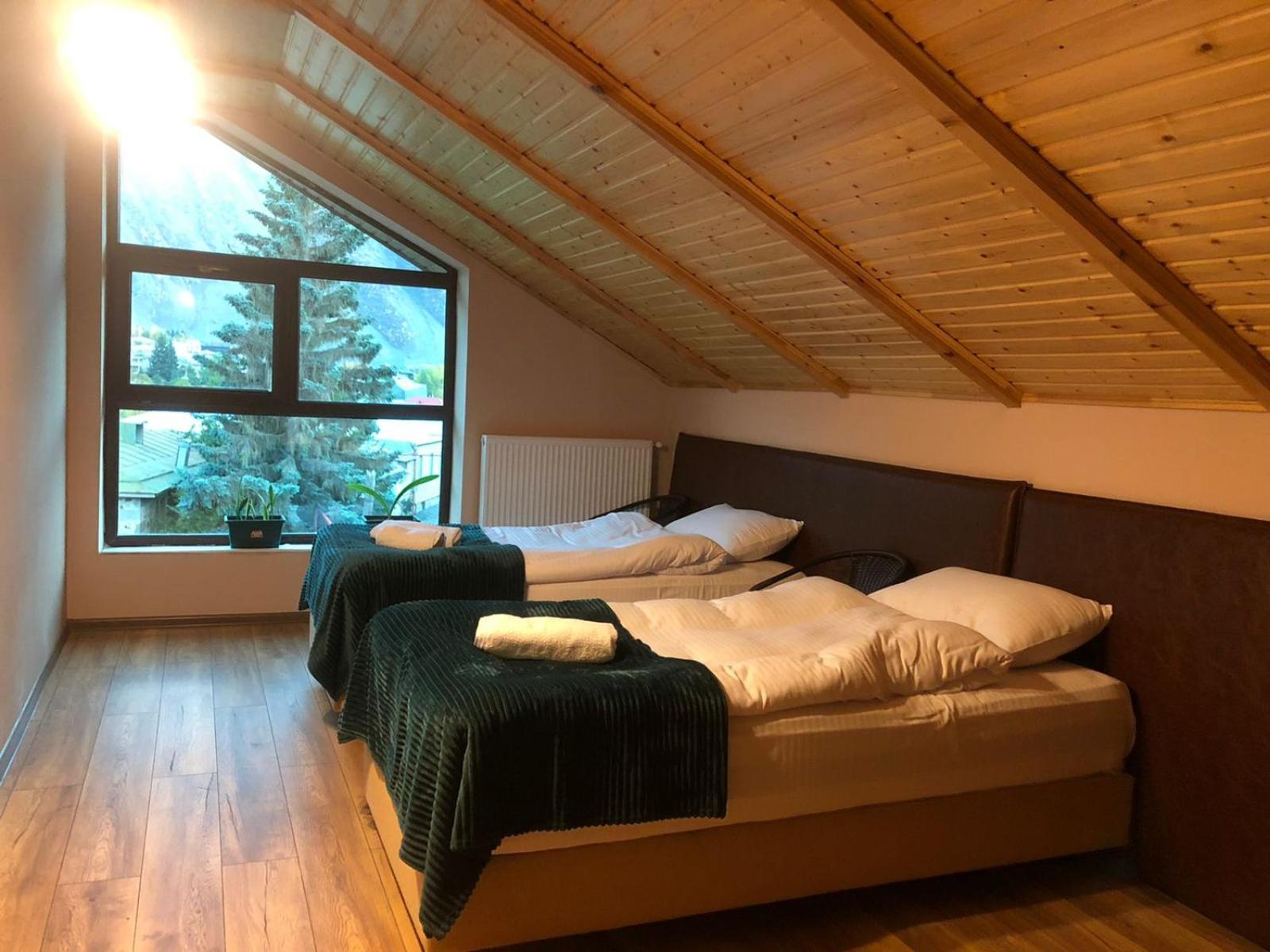 Хорошие номера. Для любителей отдыха: горы и кровать. Есть общая веранда с отличным видом на горы. Можно заказать завтрак - 25 лари. В общем доступе чай и кофе.