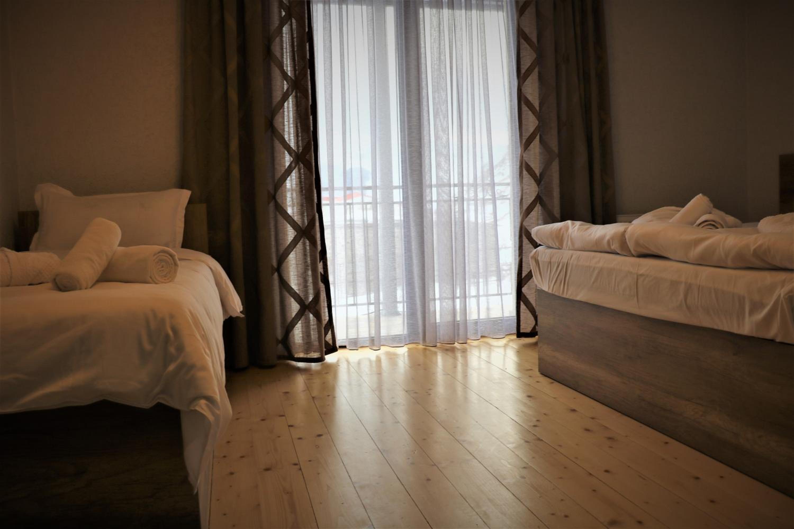 Super kind staff, and a clean and tidy room with great view of the mountains. We ate at the hotel, and couldn’t have asked for more! Massive amount of food which kept coming!! Really tasty home cooking. Well positioned for the walk or drive up to the church.