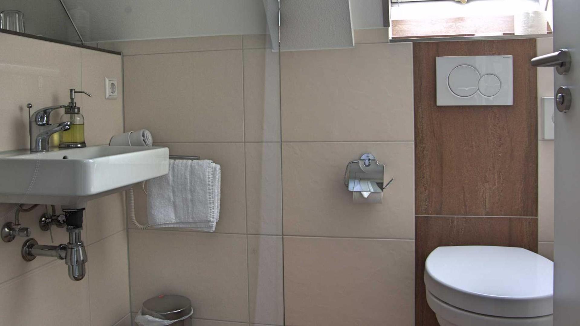 Der Handtuchhalter über dem WC hing etwas zu tief.
