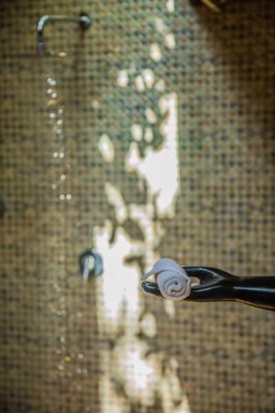 El baño daba asco, sucio y lleno de agua.