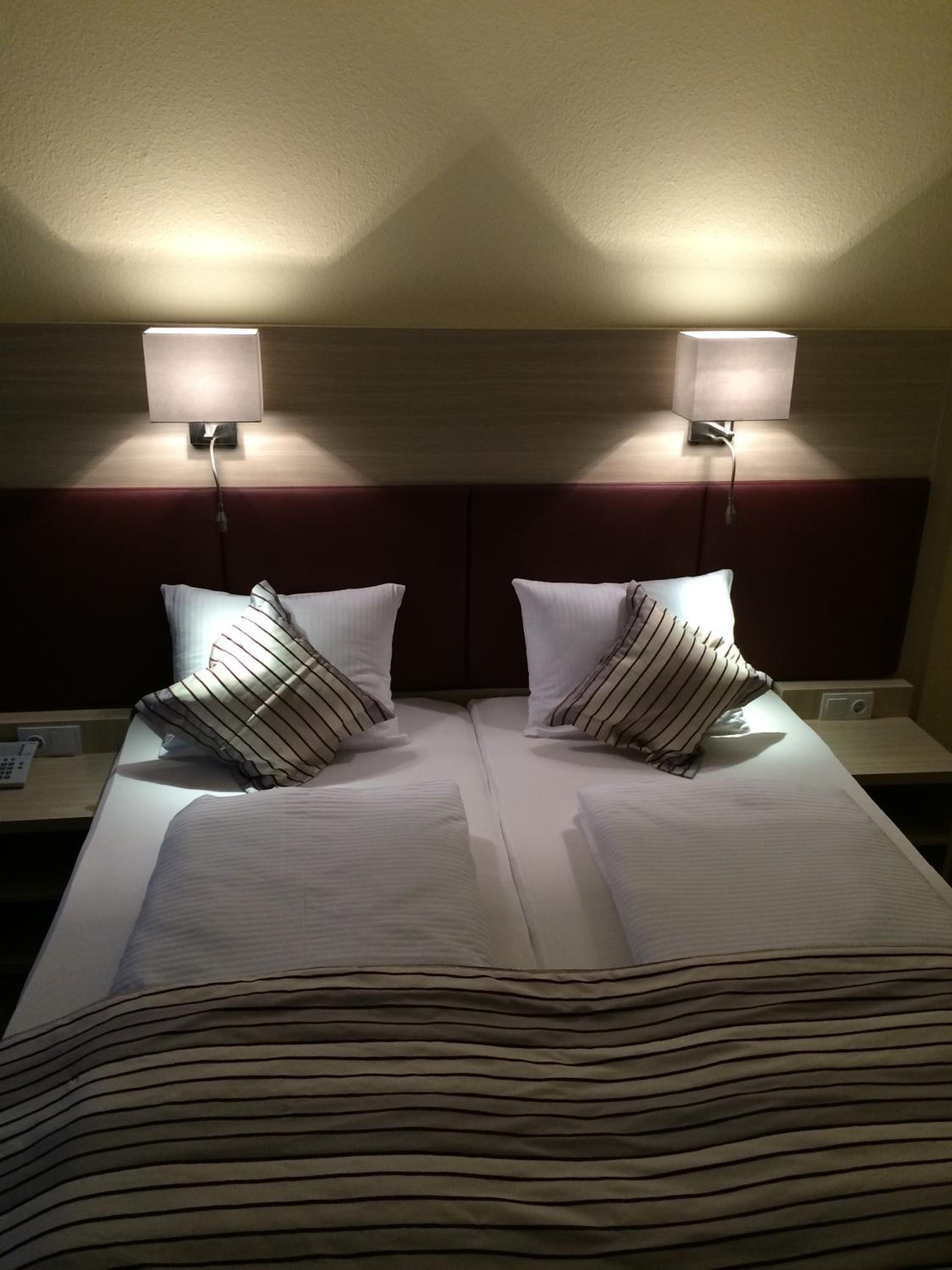 Ich hatte ein Einzelzimmer, klein, aber völlig ausreichend und gut ausgestattet. Das große Boxspringbett war super. Das Frühstück war sehr gut und sehr vielfältig, sehr viel frisches Obst. Die Schallschutzfenster sind wirklich gut, es war kein Ton von draußen zu hören. Insgesamt eine klare Empfehlung, ich komme gern wieder.