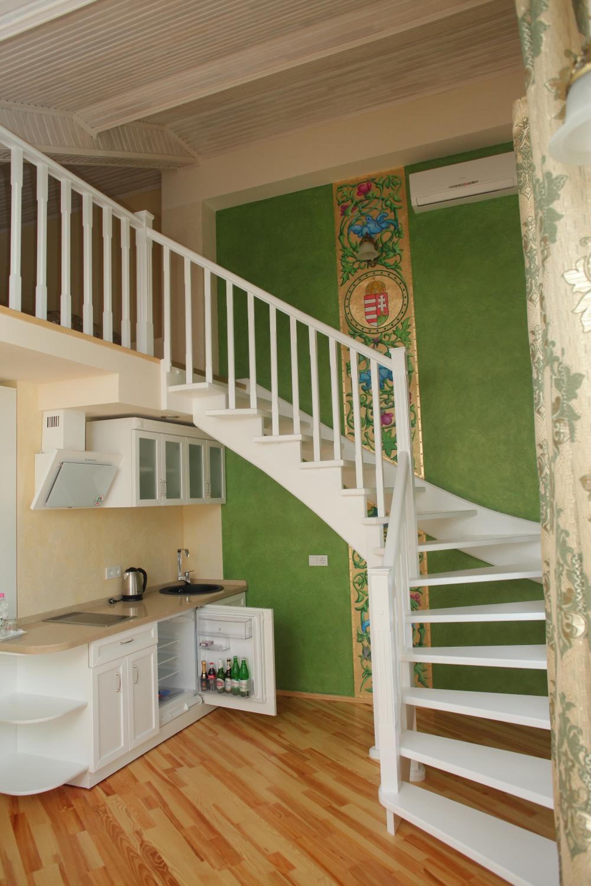 Незручно ,що рецепція на 3 поверсі,прийшлось побігати вверх- вниз,але розумію ,що будинок не новий і це ще можна прийняти,якби не прийшлось бігати то по чай ,то по воду,то ще по щось.Чомусь при доволі немаленькій ціні ( в нас напівлюкс),в номері не передбачено чай,кава,цукор і вода.