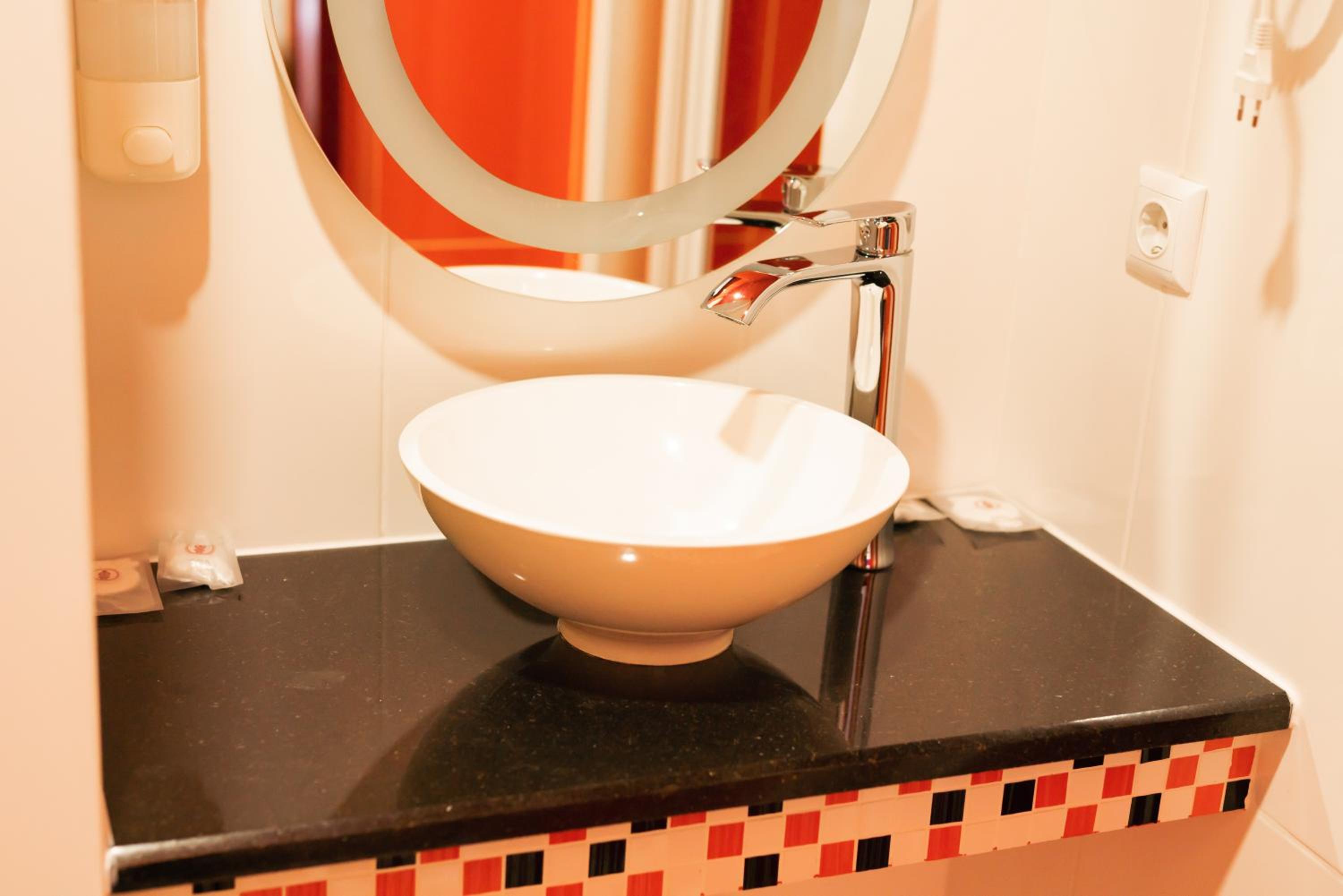 В душовій не було полички куди можна було б поставити мило/шампунь, не було мила помити руки я лише гель для душу.