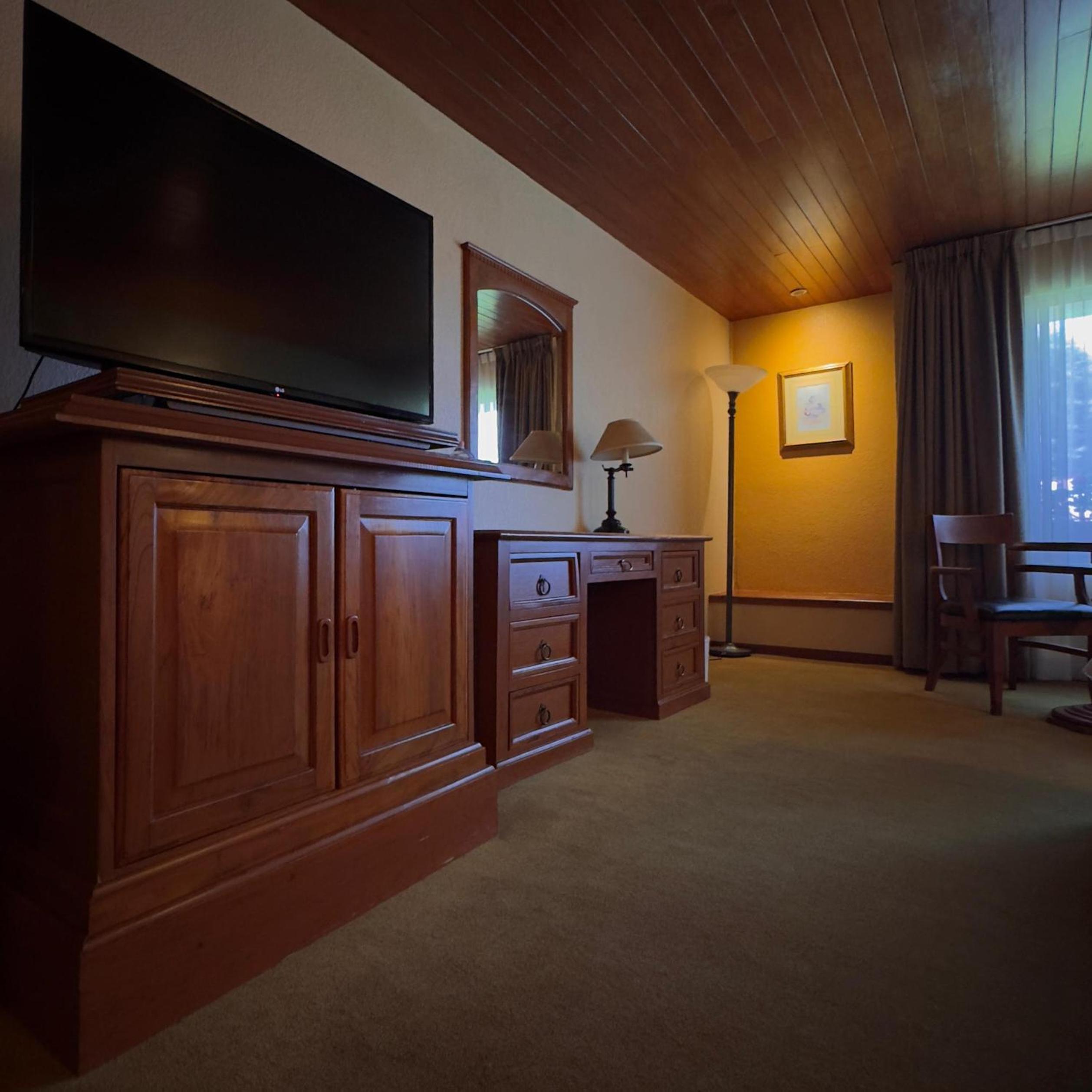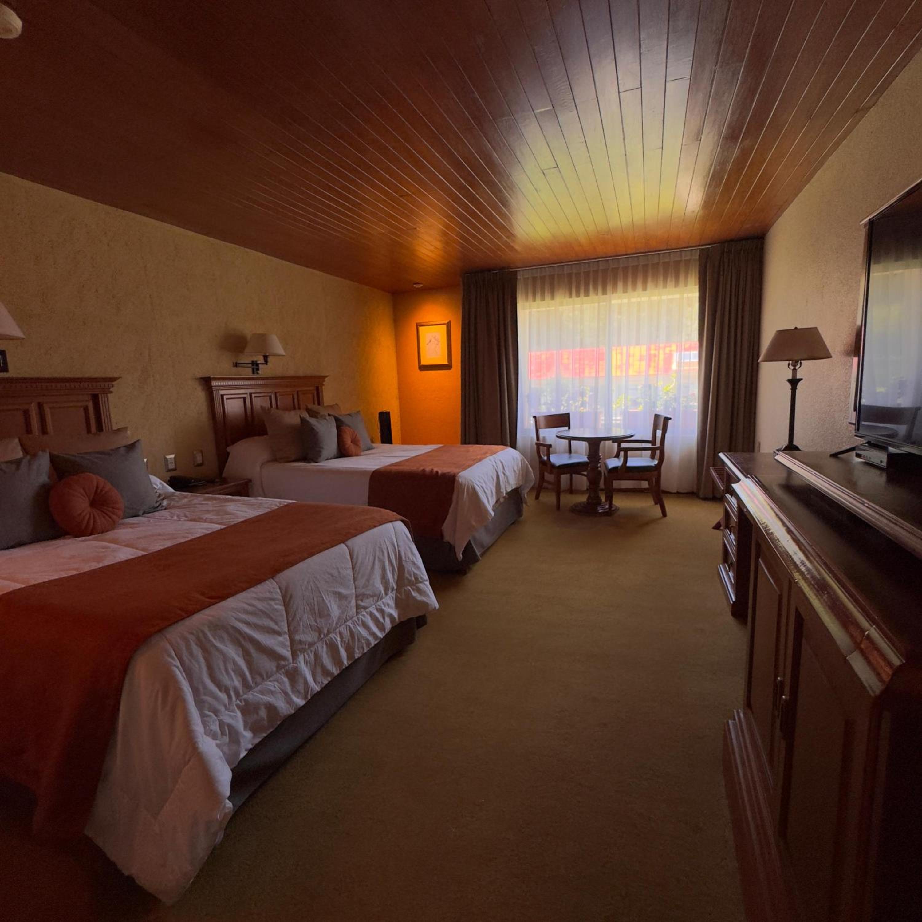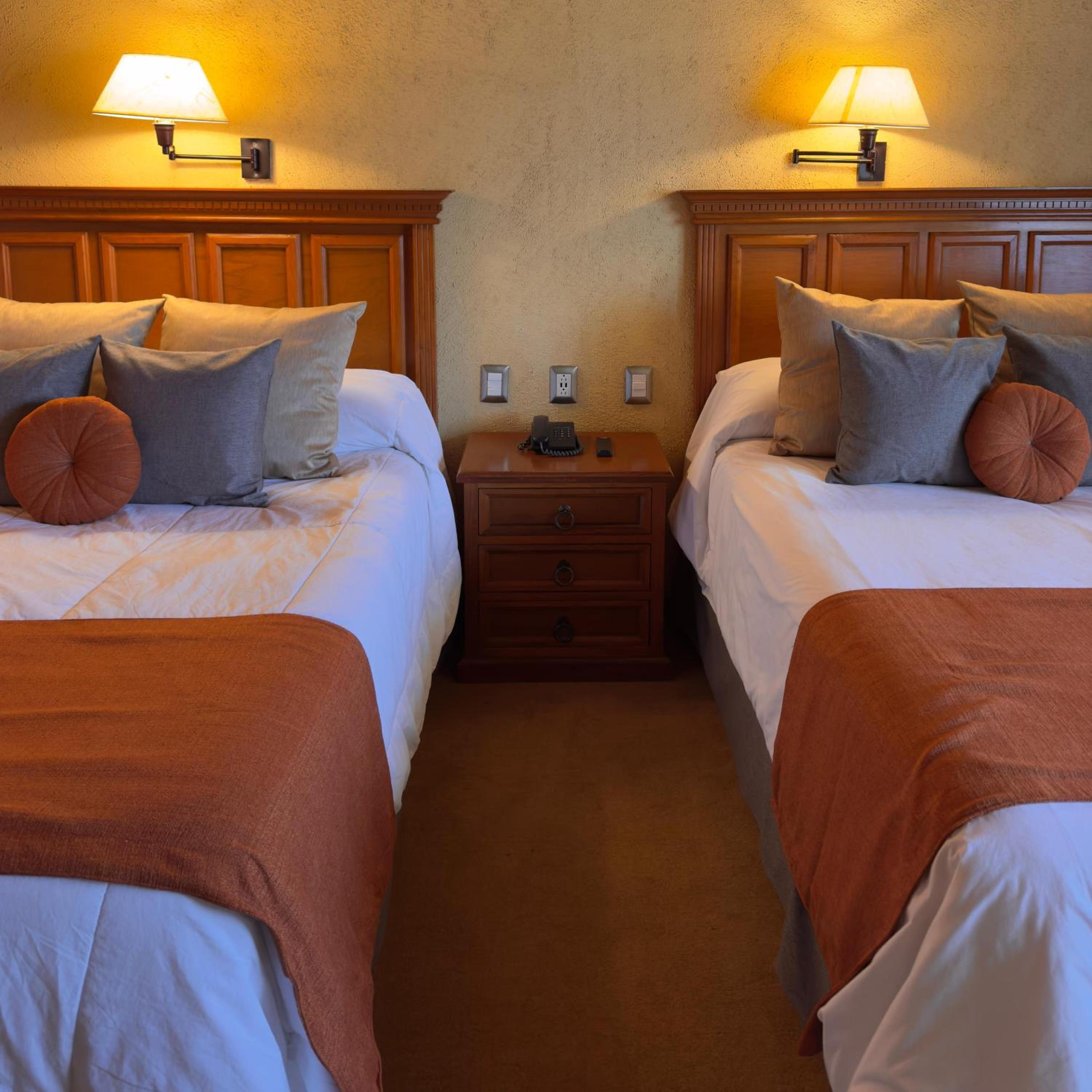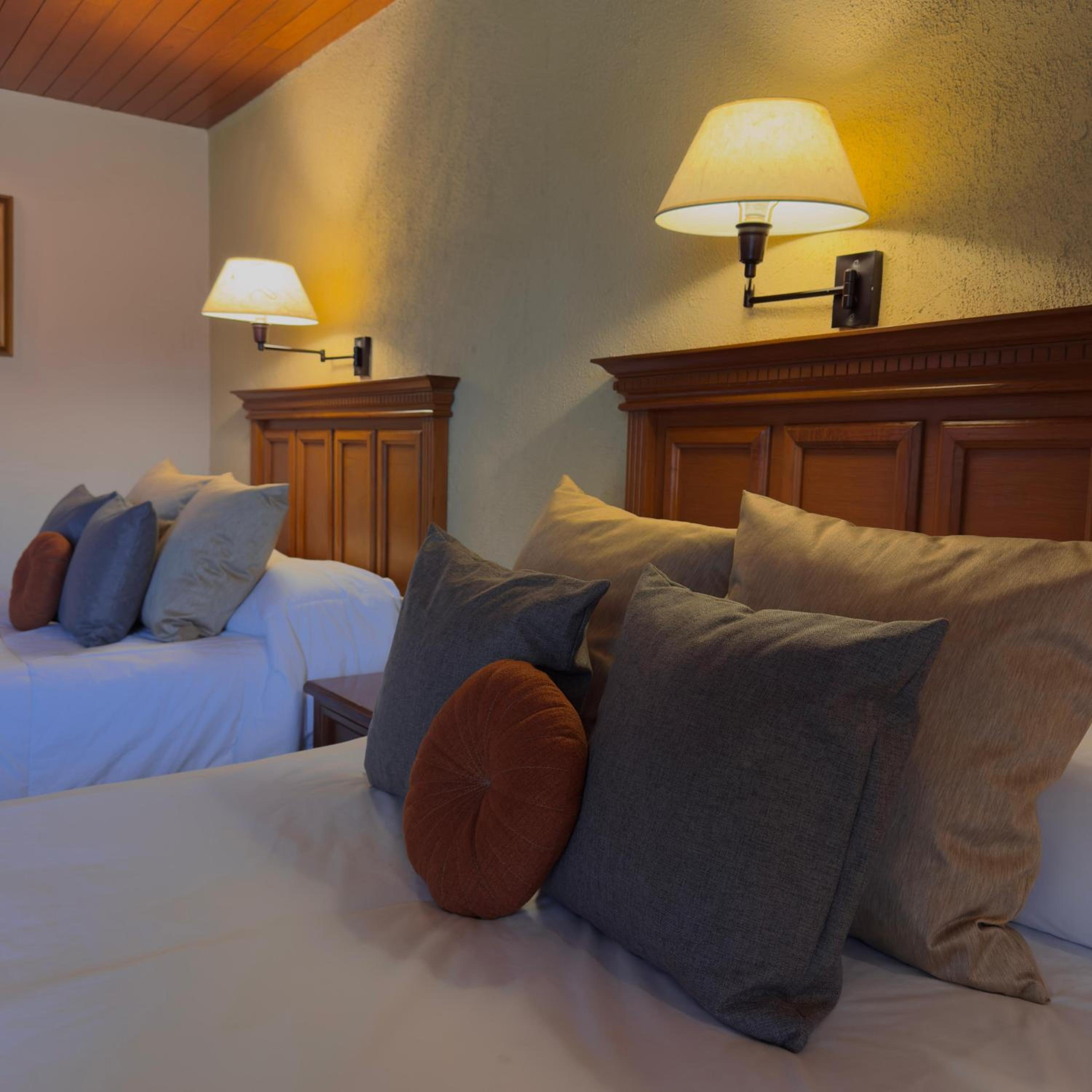 Each room at El Paraiso offers a classic and cozy ambiance with carpeted floors, wooden furniture, and modern amenities, ensuring a comfortable stay for all guests.