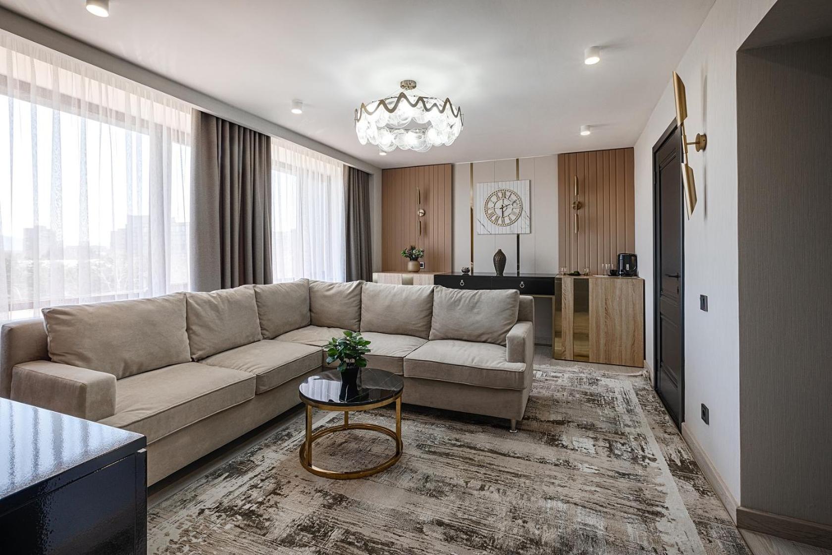 The hotel and surrounding areas corresponds to each other: you can name it Back to the USSR. Nothing shows that there is 21st Century on the calendar. Dark lobby, tiny elevator, poor breakfast, old furniture, scarce bathroom amenities,staff that don'd no how to smile. Even price is higher that for the same type hotel in Astana. So, average rating just for room service, who managed to clean room every day and change towels.