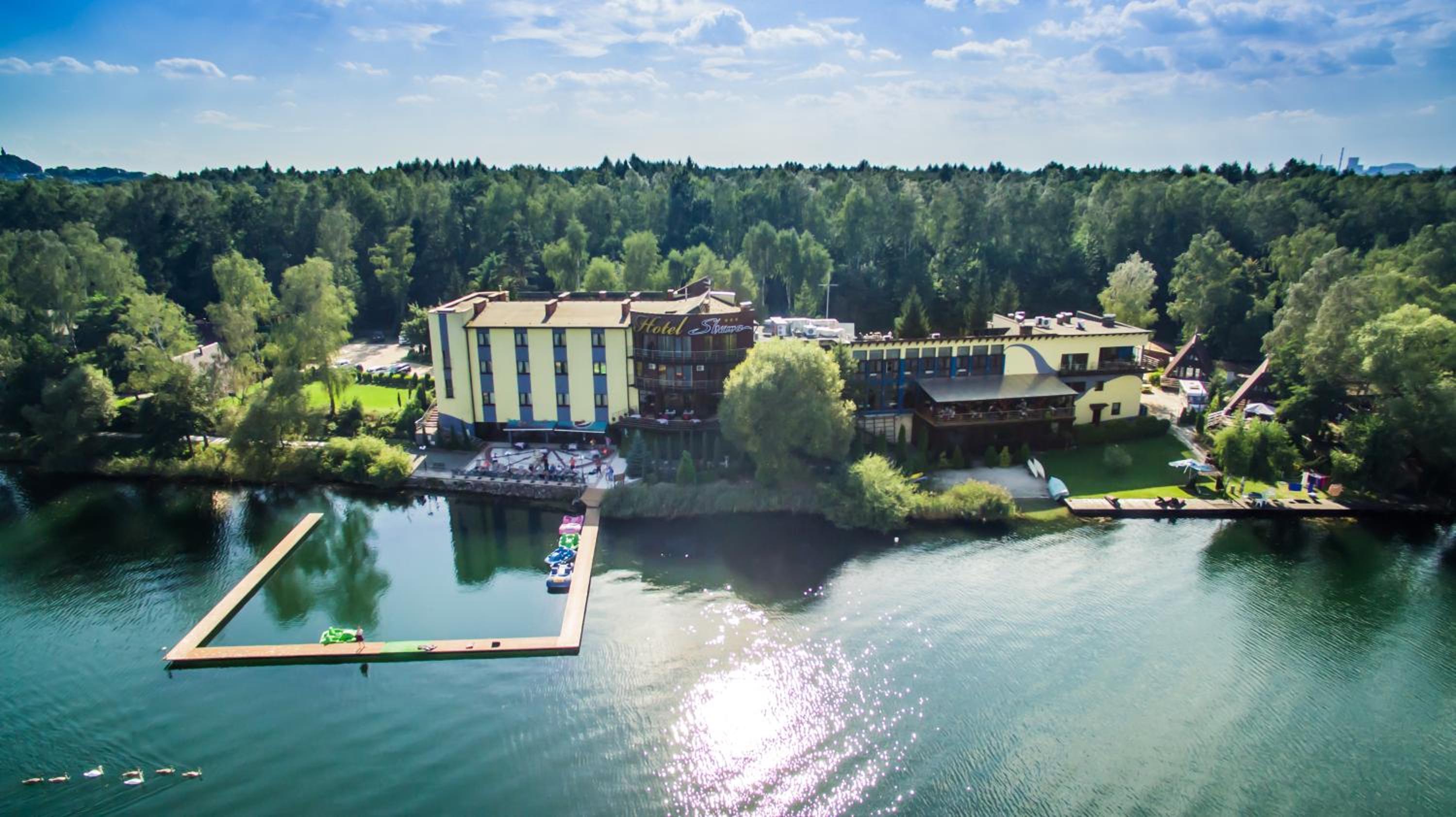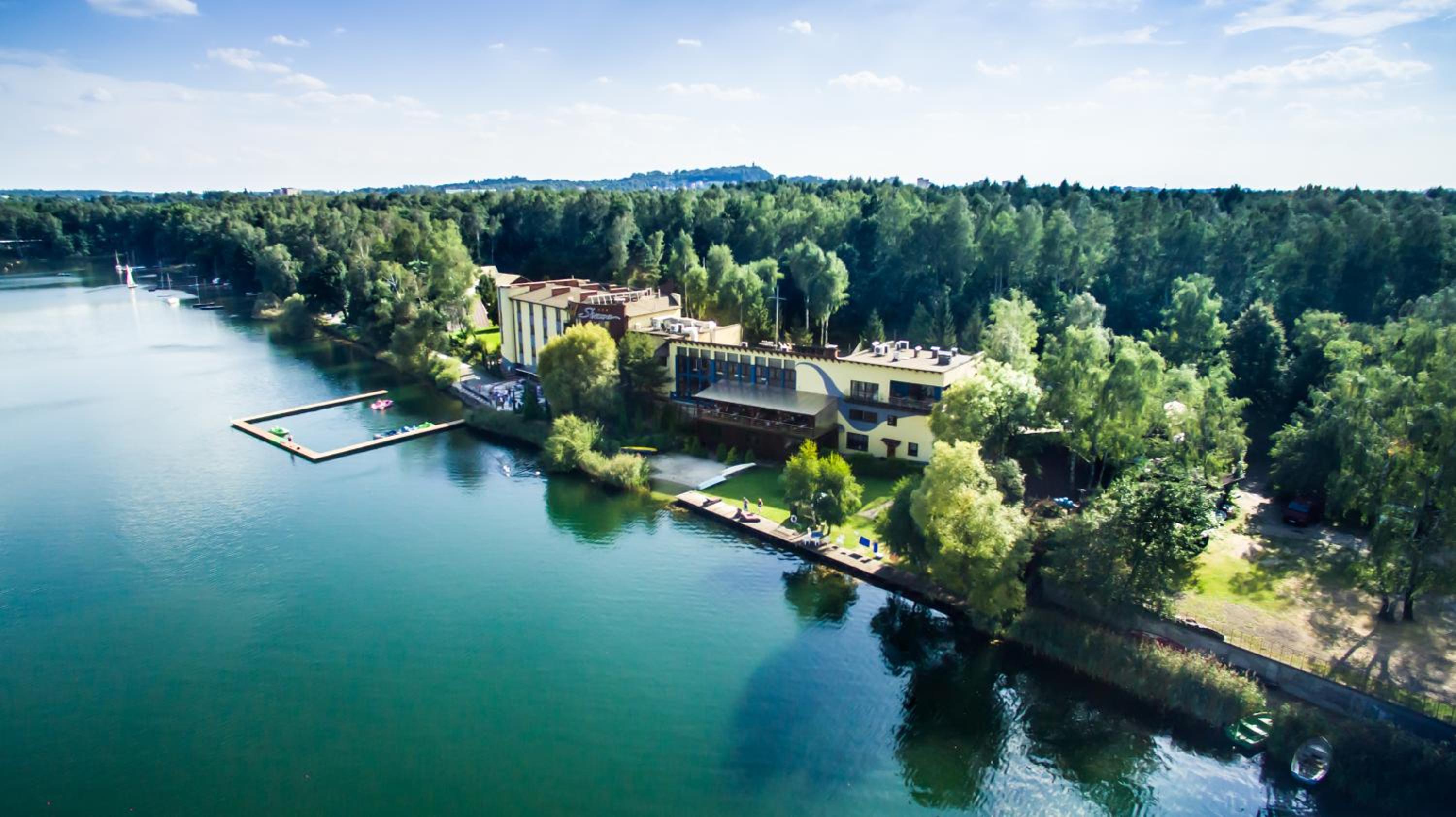 Urocza okolica. Obiekt położony w lesie nad jeziorem. Nawet w zimie są piękne widoki. Miły personel. Na miejscu restauracja. Mimo, ż przebywałem poza sezonem i menu było ograniczone to dania bardzo smaczne. Na śniadanie odpowiedni wybór składników i danie ciepłe serwowane indywidualnie na zamówienie (w moim przypadku jajaecznica).