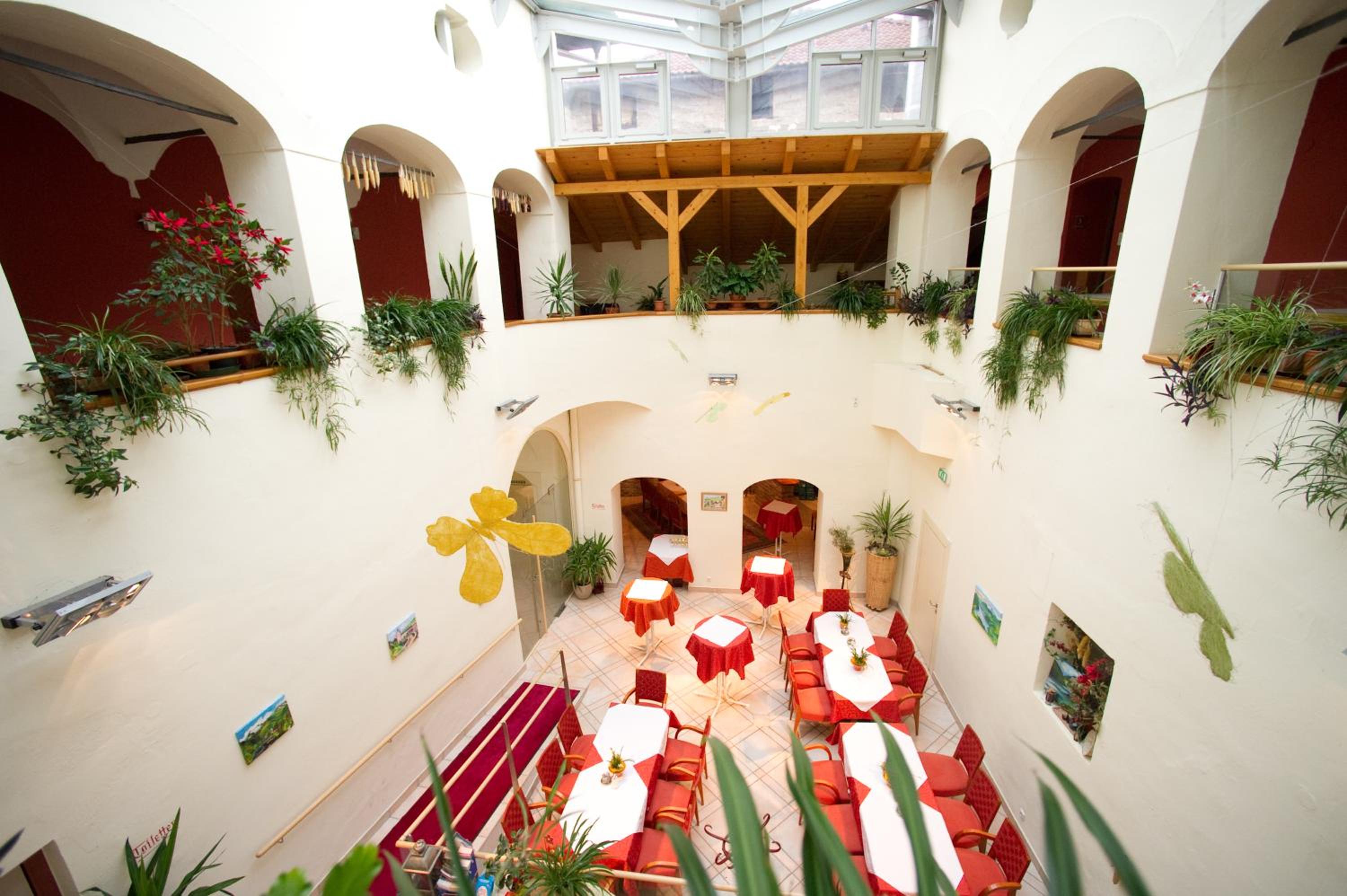 Schon beim Betreten des Hotels dient der überdachte Innenhof mit Arkadengängen im 1. Stock als Blickfang. So ein Ankommen vermittelt ein gutes Gefühl eines historischen Ambientes. Die Sitzecke beim alten Kamin vor dem Zimmer lädt auch zum Verweilen ein. Alles ist sehr sauber und das Zimmer nicht überladen. Somit ist die Bausubstanz sehr dekorativ. Genügend Ablage- und Hängemöglichkeiten sind im Zimmer vorhanden. Die schon oft erwähnte Freundlichkeit können auch wir bestätigen, ebenso die Bereitschaft und Freude, Auskunft zu geben.