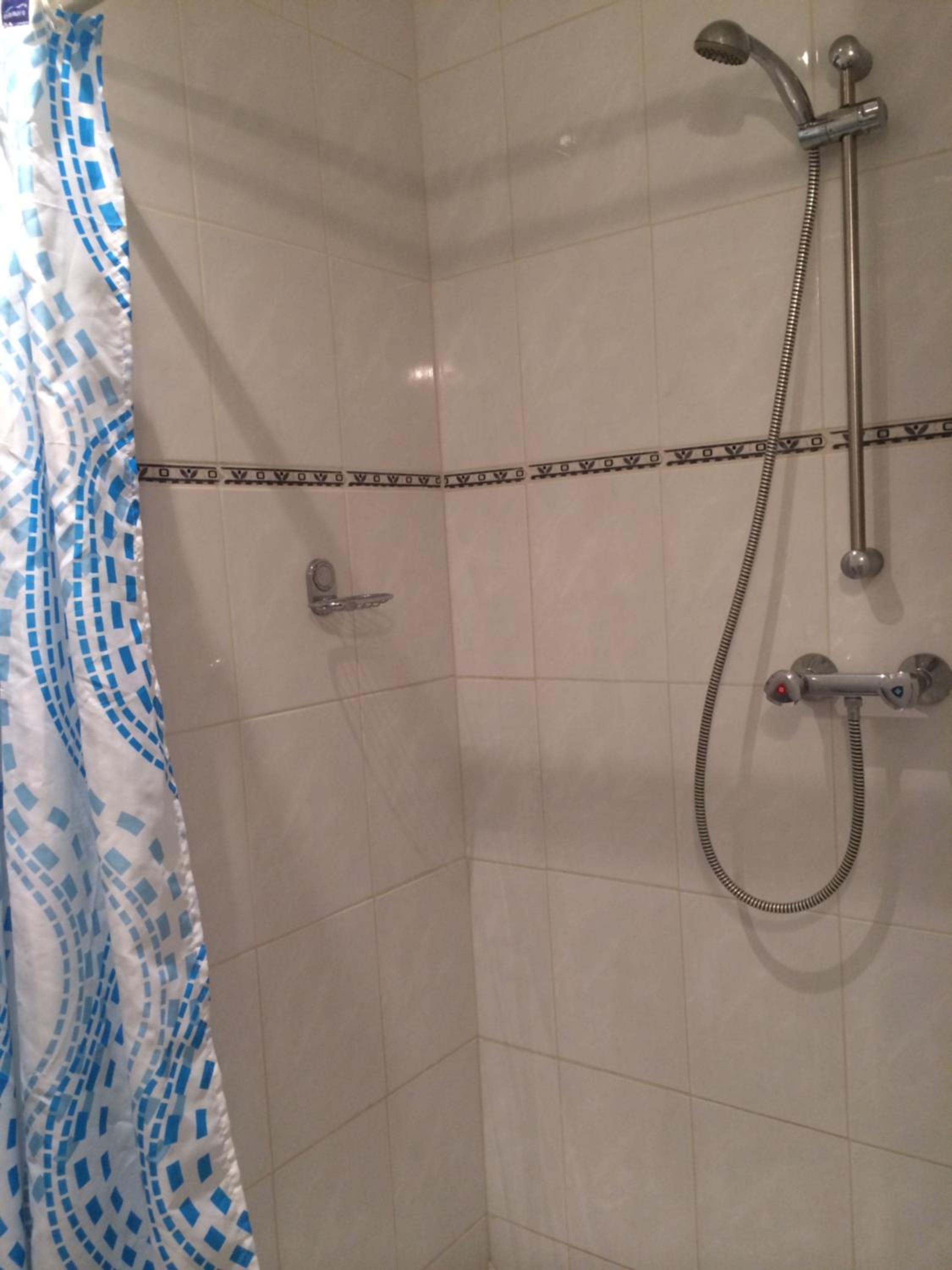 De kamer. Voor de prijs die we hebben betaald echt niet voldoende. De vloer veerde en kraakte onder onze voeten. De kast op onze kamer was scheef en wiebelde als je langs liep mee met de vloer. Bovenop de kast (op mijn ooghoogte) dikke laag stof en (gebruikte?) wattenstaafjes. Gordijnen hangen uit de rails en sluiten niet, in de winter niet zo'n probleem wellicht, maar in de zomer lig je dus vol in het licht.